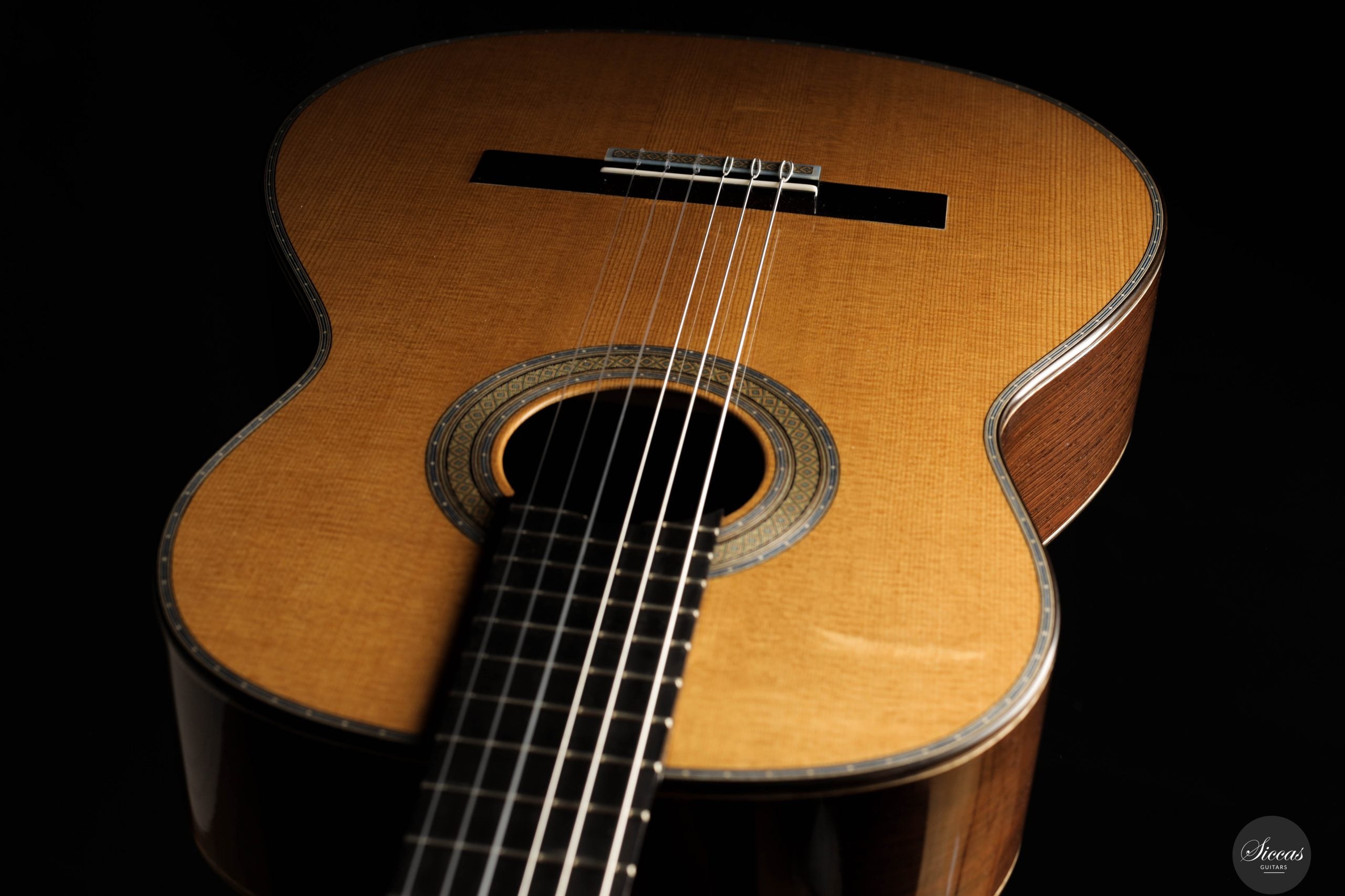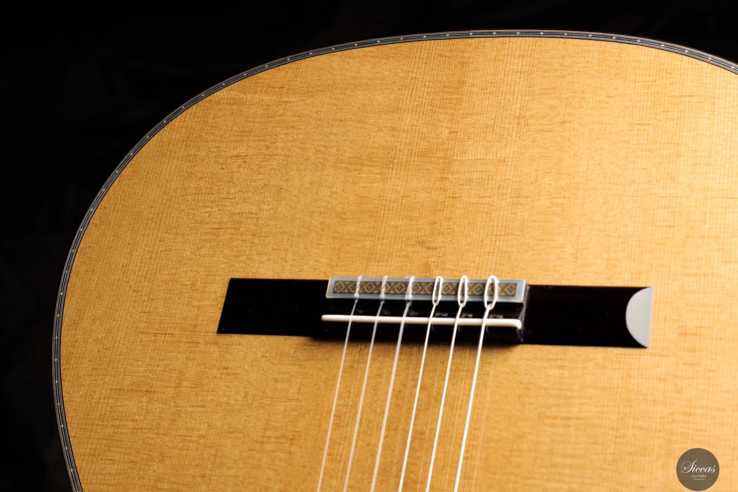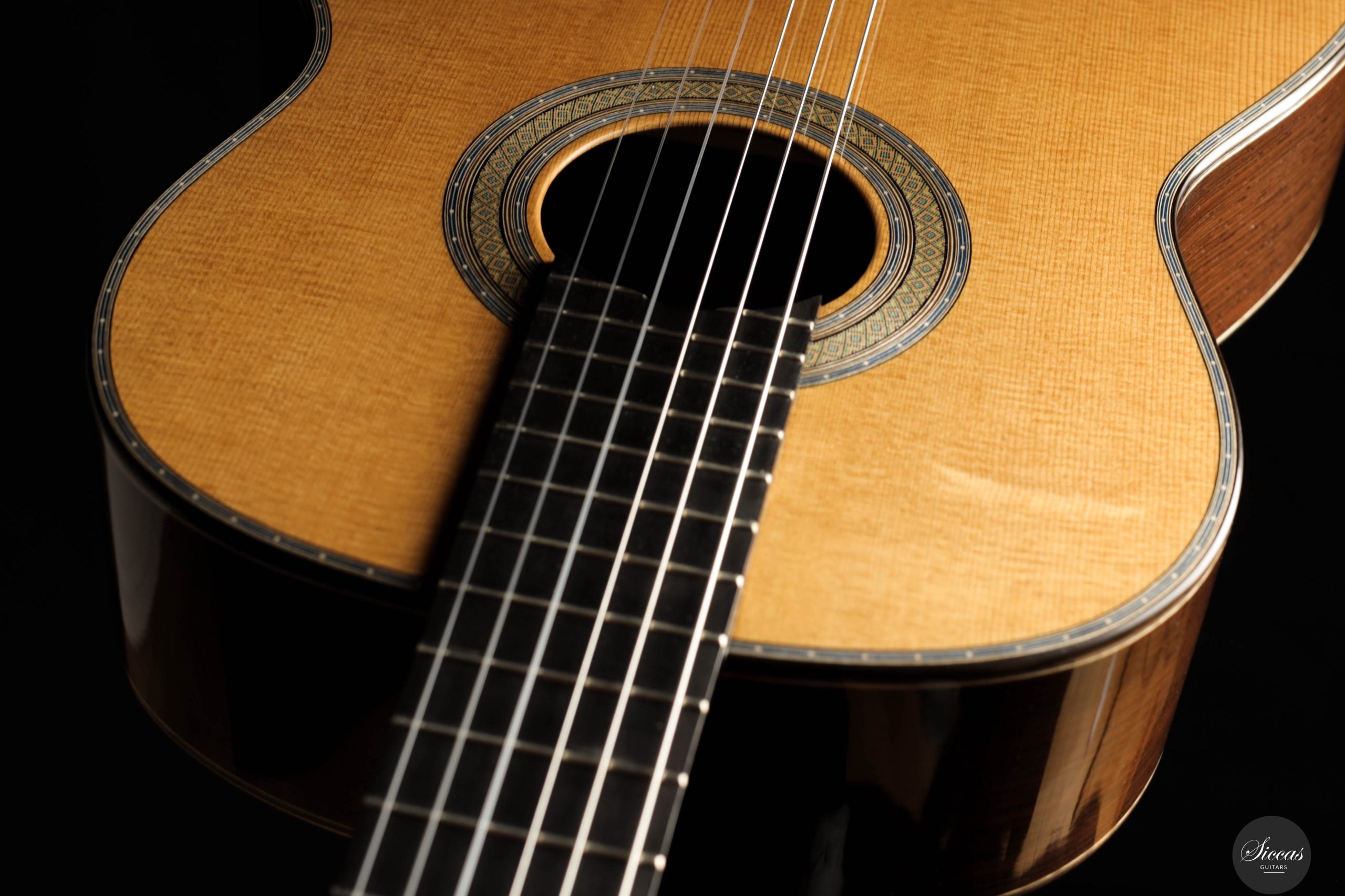 Die klassische Gitarre mit ihren weichen Nylonsaiten und ihrem charakteristischen Timbre ist zum Symbol der Kammermusik, der spanischen Tradition und des Konzertrepertoires geworden. Ihre moderne Form prägte Antonio de Torres im 19. Jahrhundert, indem er den Standard für Korpus, Fächerbeleistung und die 65-Zentimeter-Mensur setzte, die bis heute verwendet werden. Instrumente dieser Kategorie eröffnen eine reiche Palette von den feinen romantischen Miniaturen Tárregas bis zu den majestätischen Konzerten Rodrigos. Hier finden Sie Gitarren, die historische Kontinuität bewahren und zugleich zu neuen Interpretationen anregen.