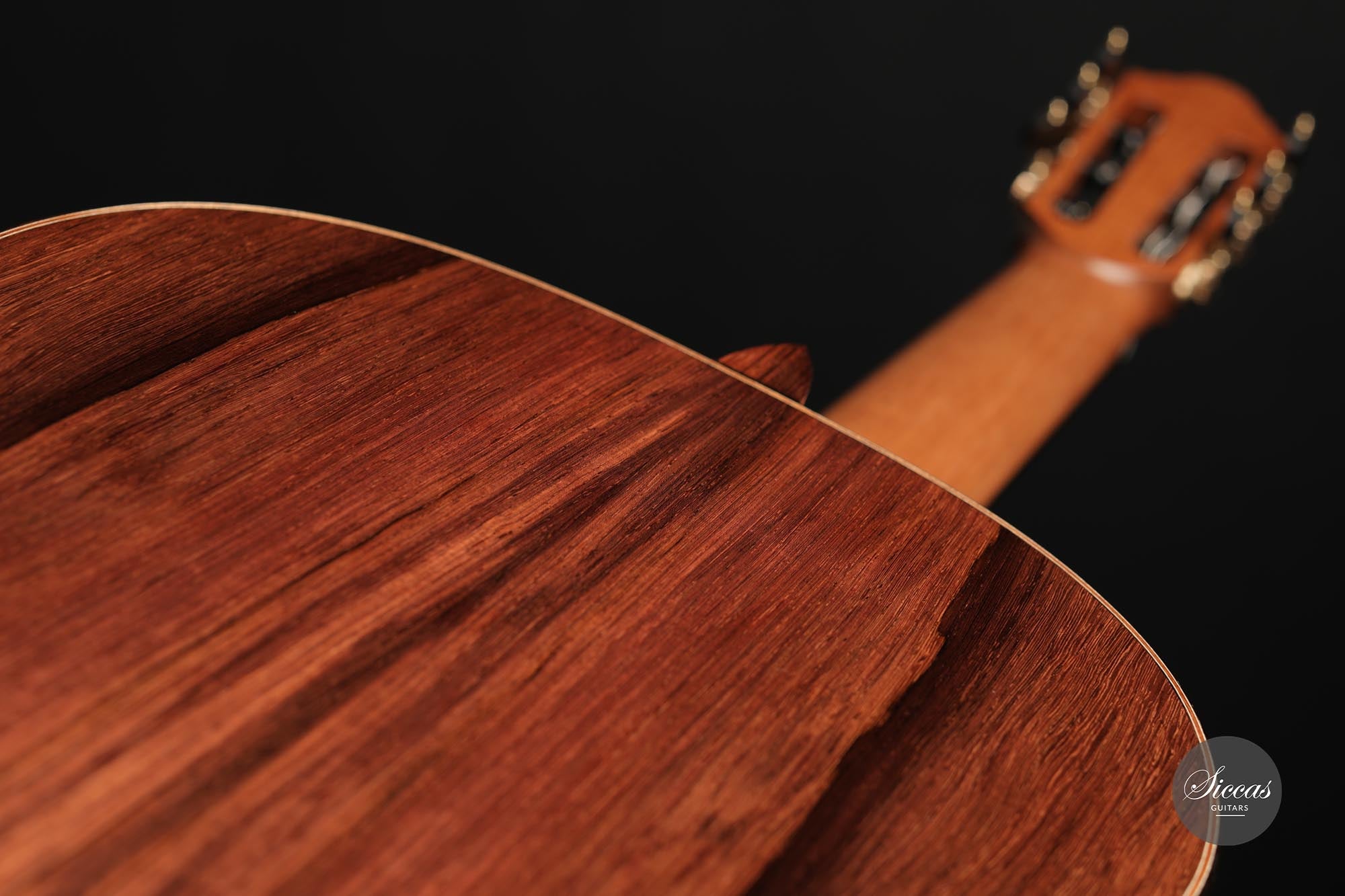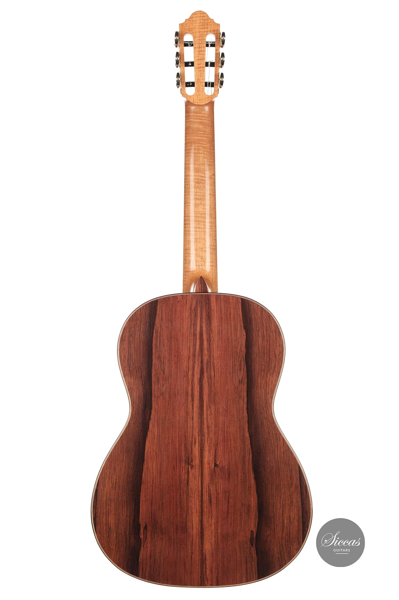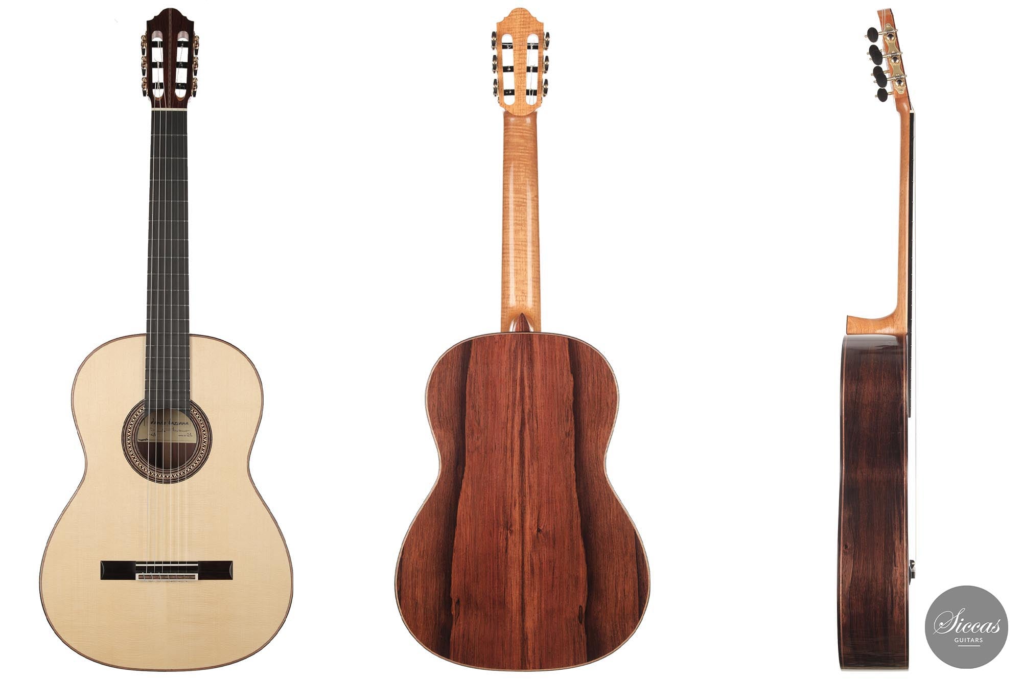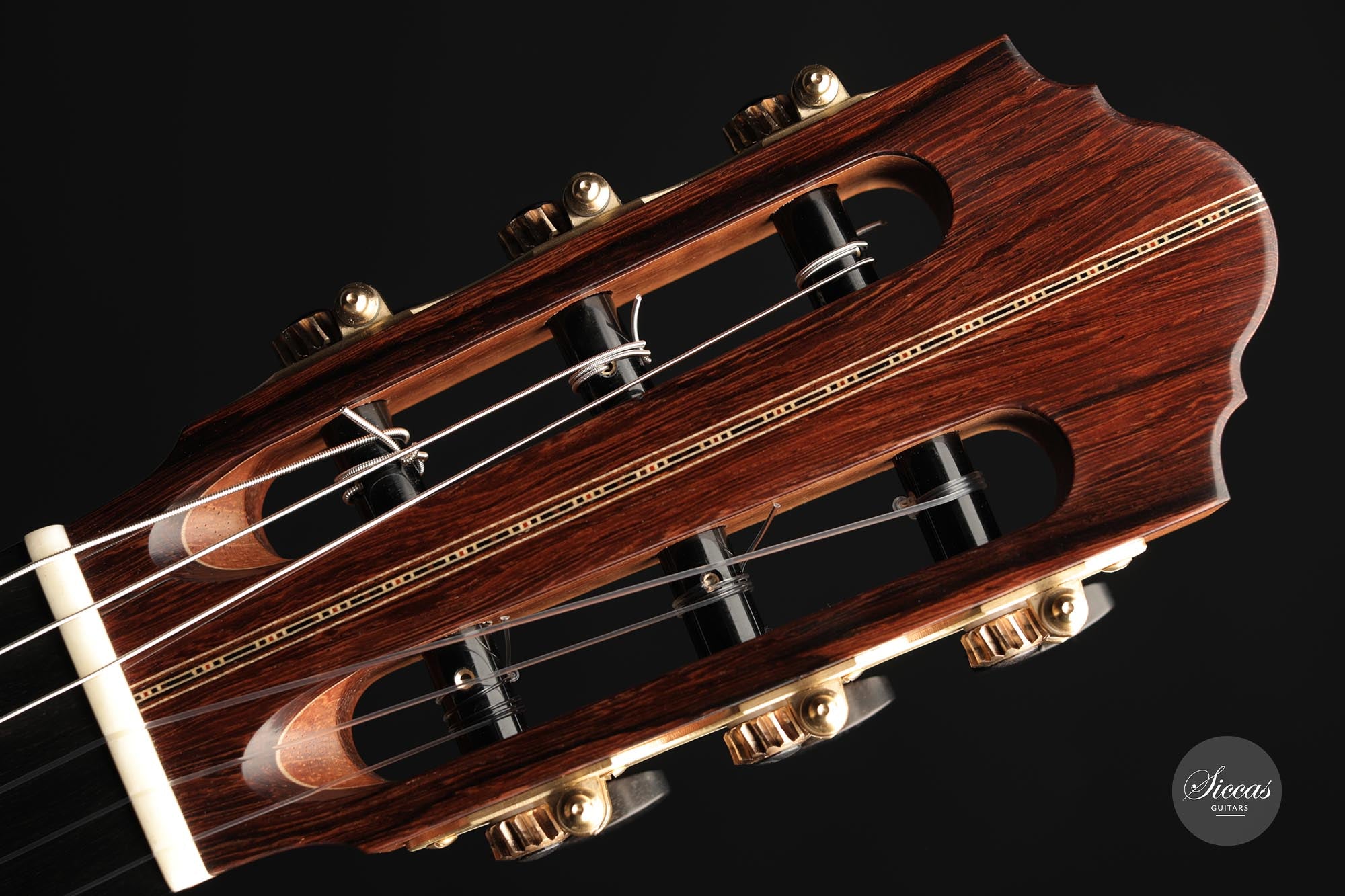 This guitar is a very special instrument and a true masterpiece. It is the model designed by Danilo Bazzana for the important meeting of Italian guitar makers, Roma Guitar Expo 2020. The inlays are both exquisitely crafted and richly detailed, the gorgeous Madagascar rosewood for the back and sides shows extraordinary purple reflections, and the flamed mahogany neck is just gorgeous. One gets caught up in both the wonderful beauty of the woods used and the immense charm of the sound. The first string sings almost beguilingly with a marvelous sustain. The balance and clarity of the sound are in ideal harmony, giving the guitarist a lot of freedom and possibilities. This very special model is an extremely accomplished instrument and will appeal to many guitarists looking for a master grade guitar.