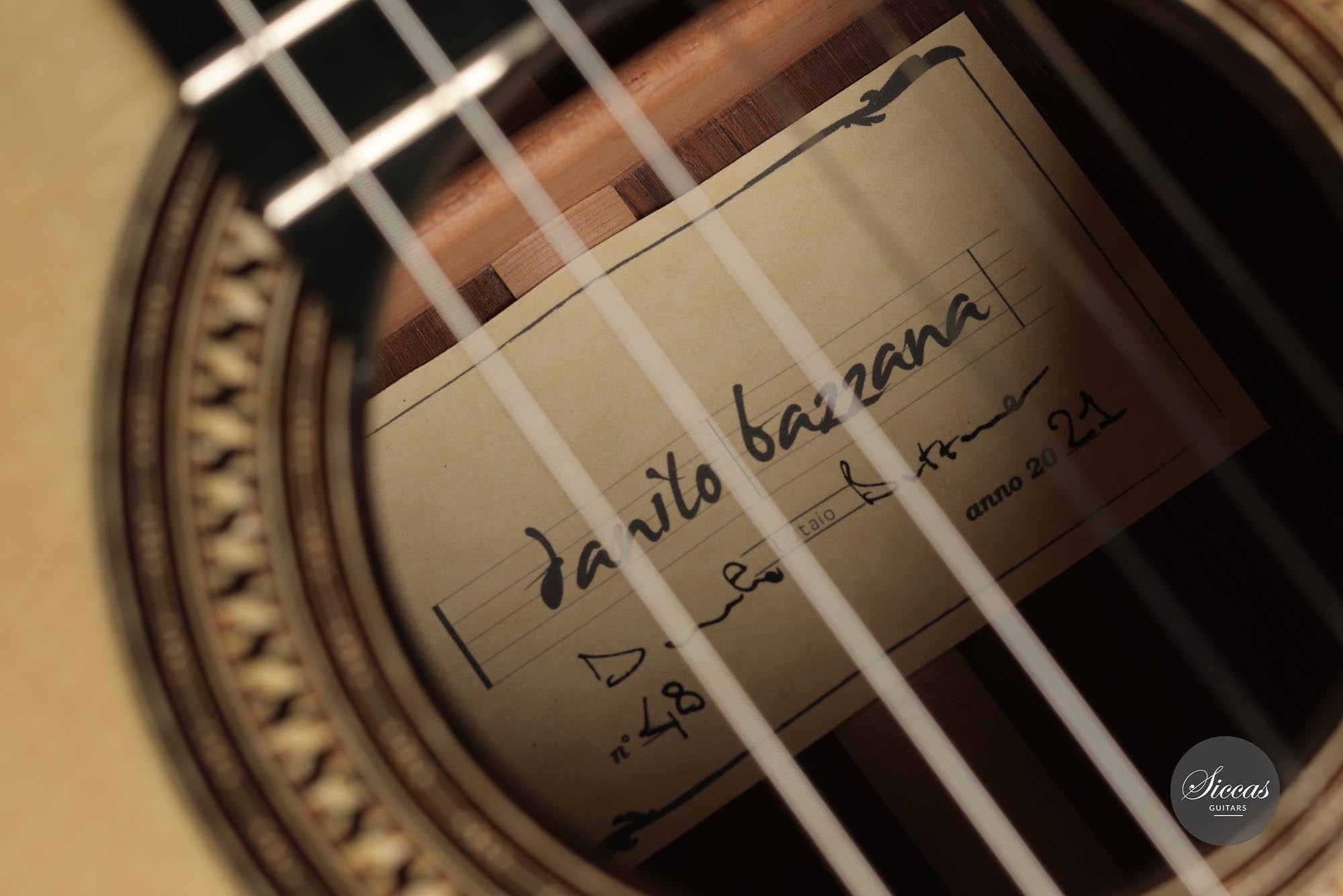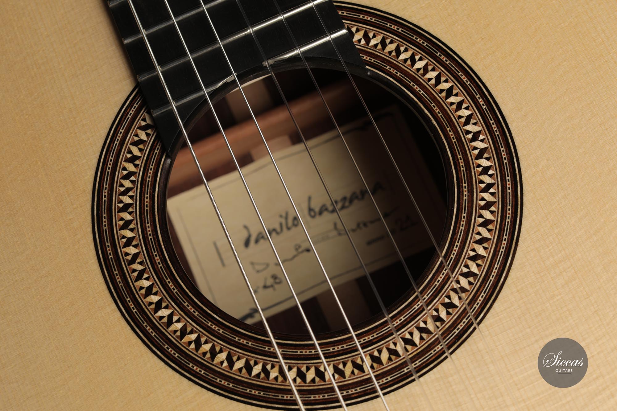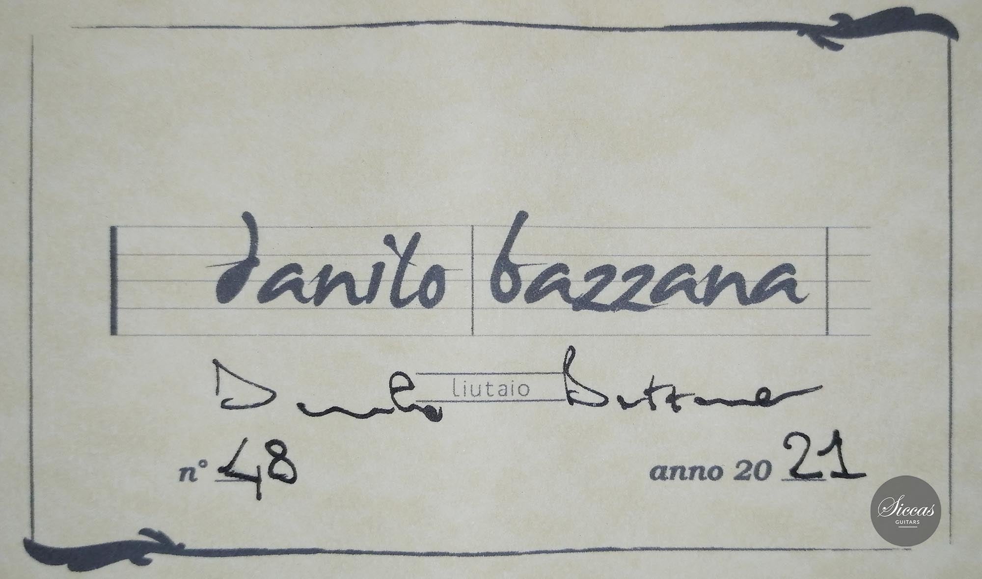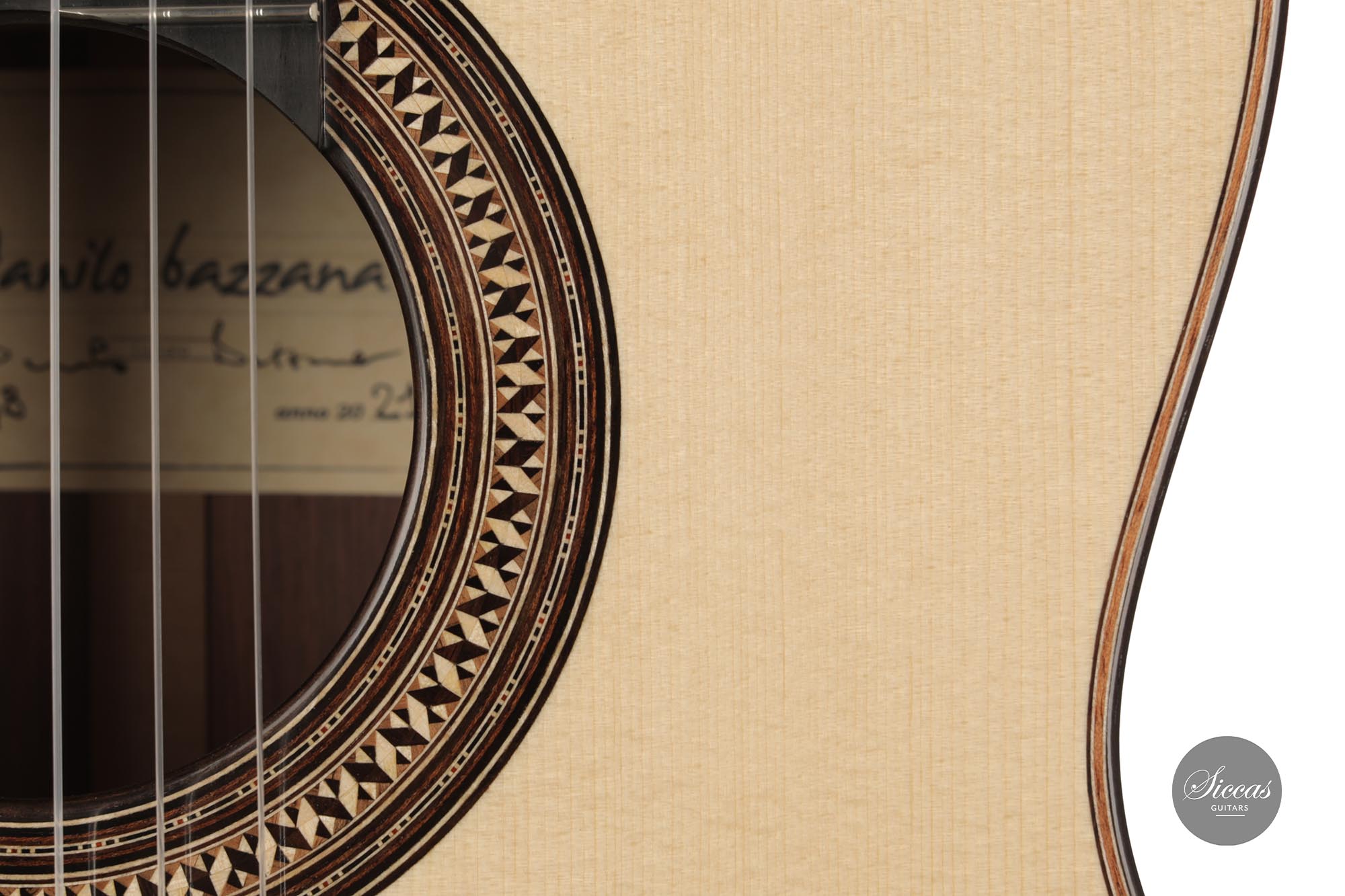 Not only are his guitars very sensitive to the touch but also rich in tonal nuances. Danilo pays great attention to the design of the fingerboard to achieve the right level of comfort and playability. Bazzana is very fascinated by the intimate aspect of playing the guitar, where the guitarist is in direct contact with the string, unlike the piano or violin, where a bow or a key would otherwise interfere. The construction is purely traditional, which is why he puts great care in the choice of materials for each component of the instrument, which "must vibrate in its entirety”.