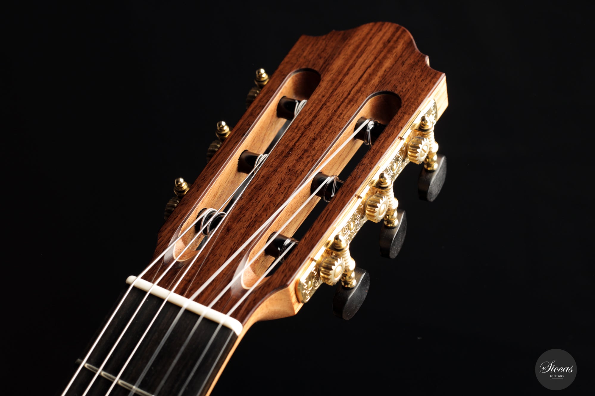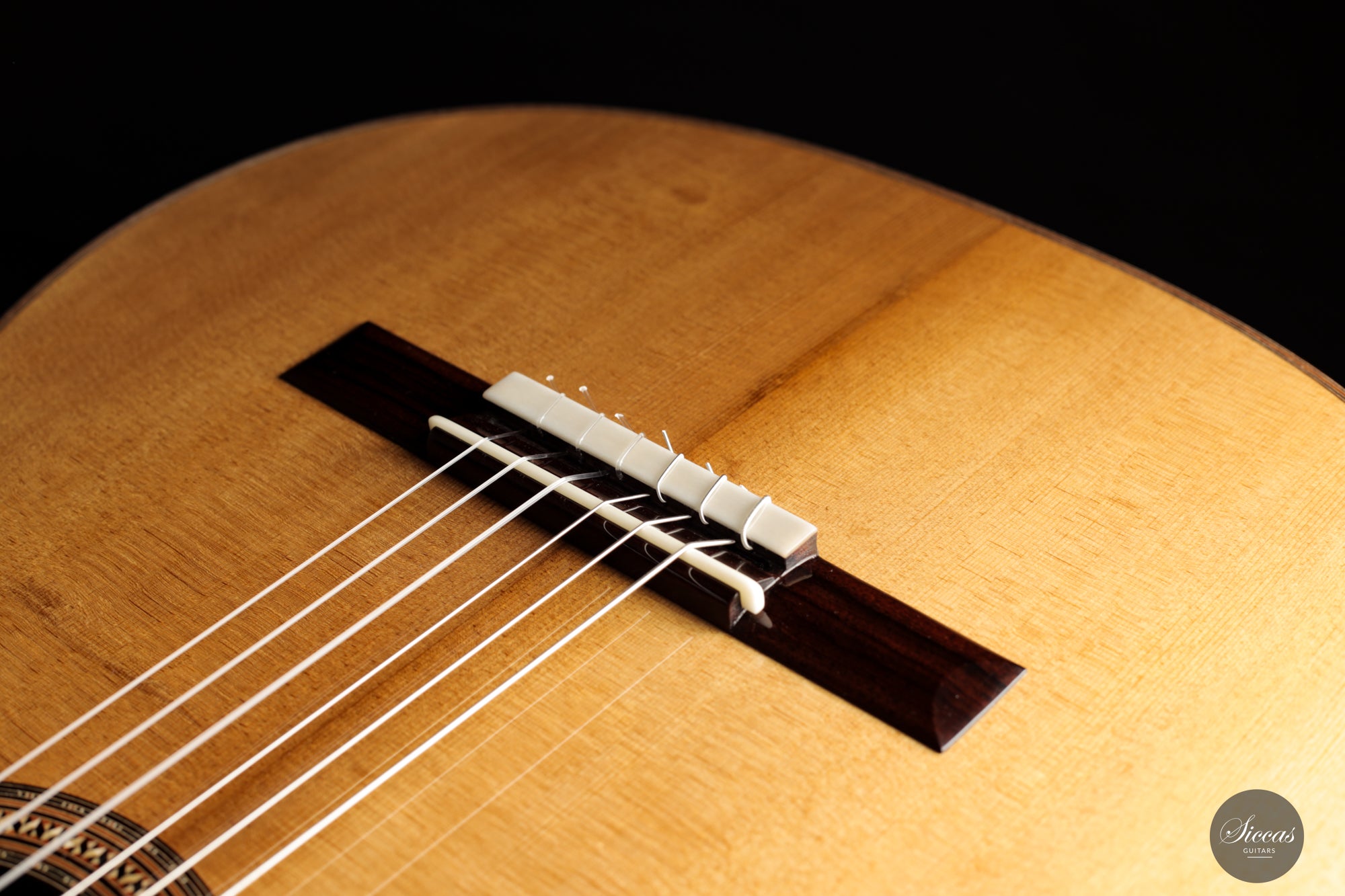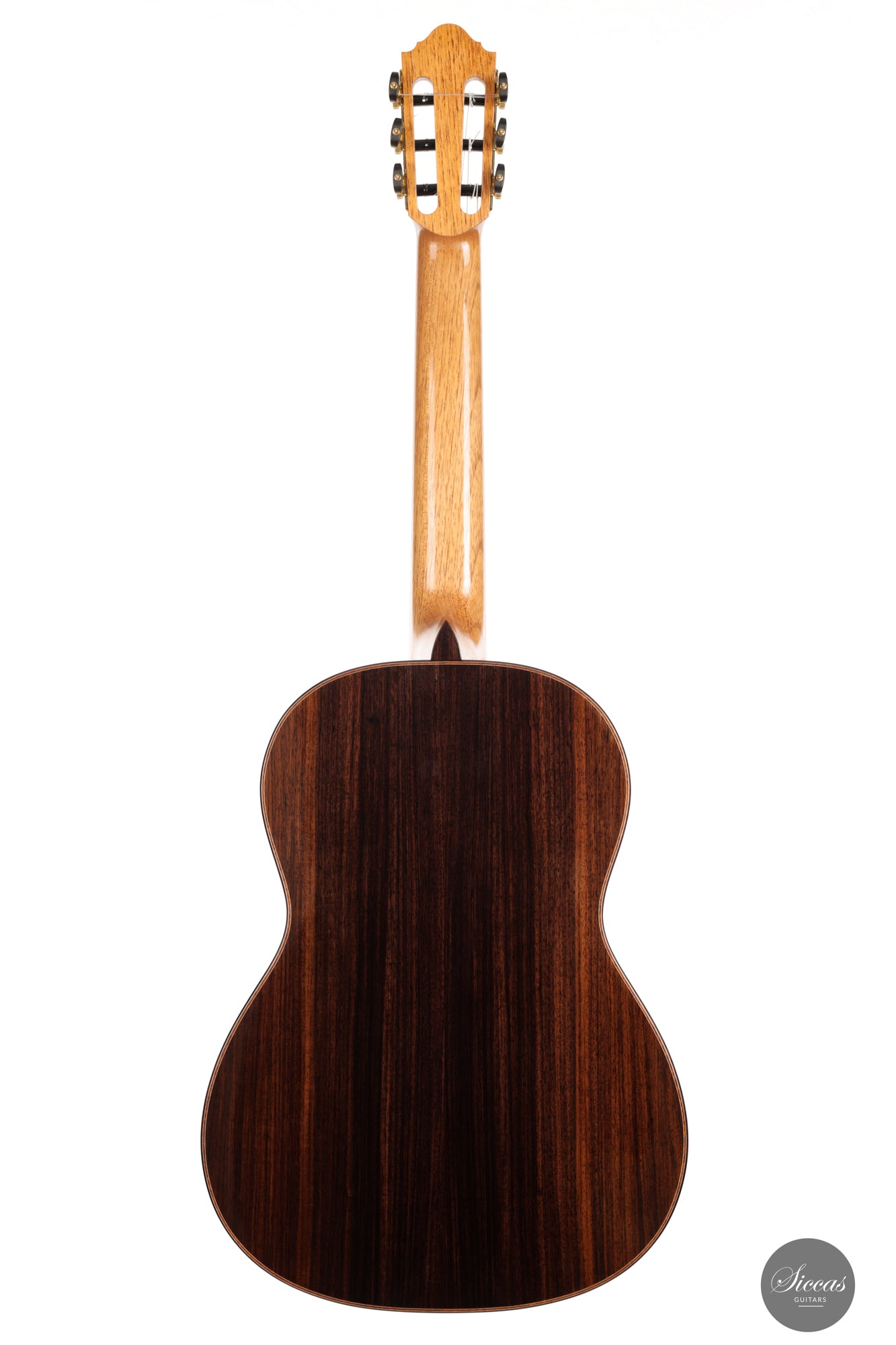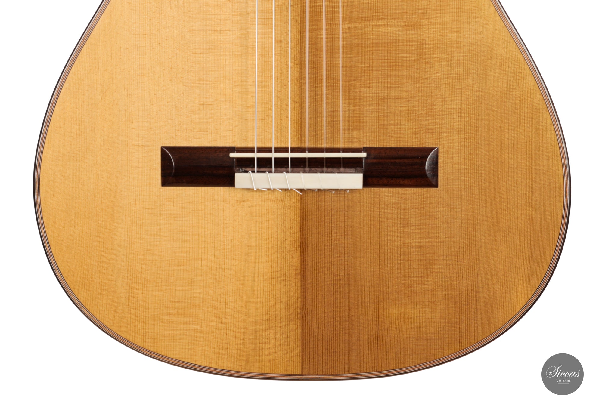 In Reflexion seiner unerschütterlichen Verpflichtung zur Qualität verkörpert dieses spezielle Stück Bazzanas charakteristische Handwerkskunst. Mit einer Fichtendecke, die eloquent mit klassischem indischem Rosenholz für den Boden und die Zargen gepaart ist, sind seine Ästhetik genauso überzeugend wie sein Klang. Seine Abstammung ist unverkennbar von der verehrten französischen Schule des Gitarrenbaus beeinflusst und hallt die Meisterschaft wider, die in den Kreationen von Größen wie Robert Bouchet und Daniel Friederich zu finden ist.