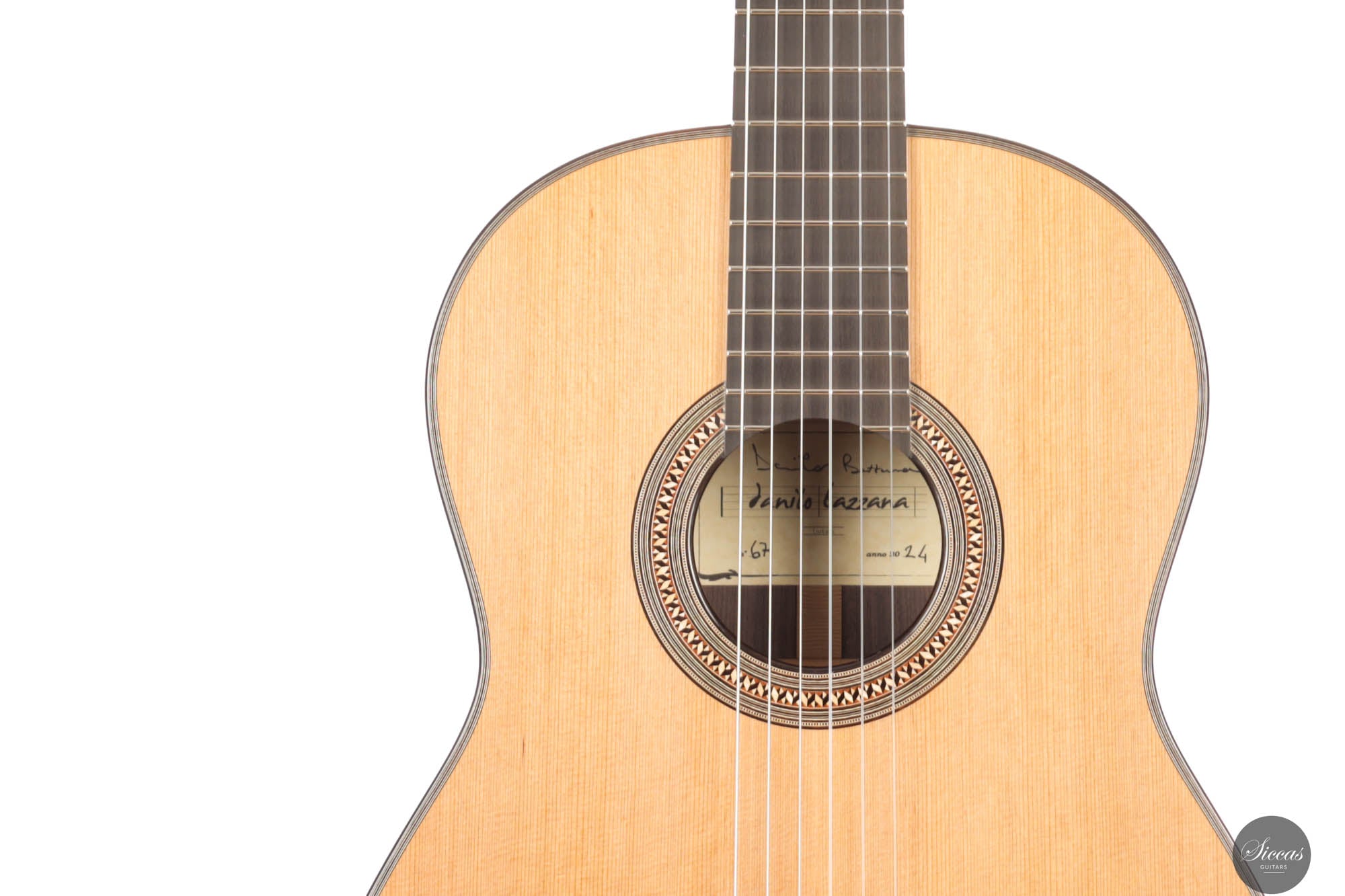 Danilo Bazzana wurde 1985 in Mailand geboren. Im Alter von dreizehn Jahren begann er, Gitarre zu spielen, eine Leidenschaft, die ihn bis heute begleitet. Im April 2015 eröffnete er seine Werkstatt im Zentrum von Paderno Dugnano, wo er den Bau klassischer Gitarren mit der Feineinstellung, Restaurierung und Reparatur von Zupfinstrumenten aller Art verbindet. Er fertigt Gitarren nach traditionellem Vorbild, inspiriert von den großen Meistern, und legt größten Wert auf die sorgfältige Auswahl der Materialien für jede einzelne Komponente des Instruments.