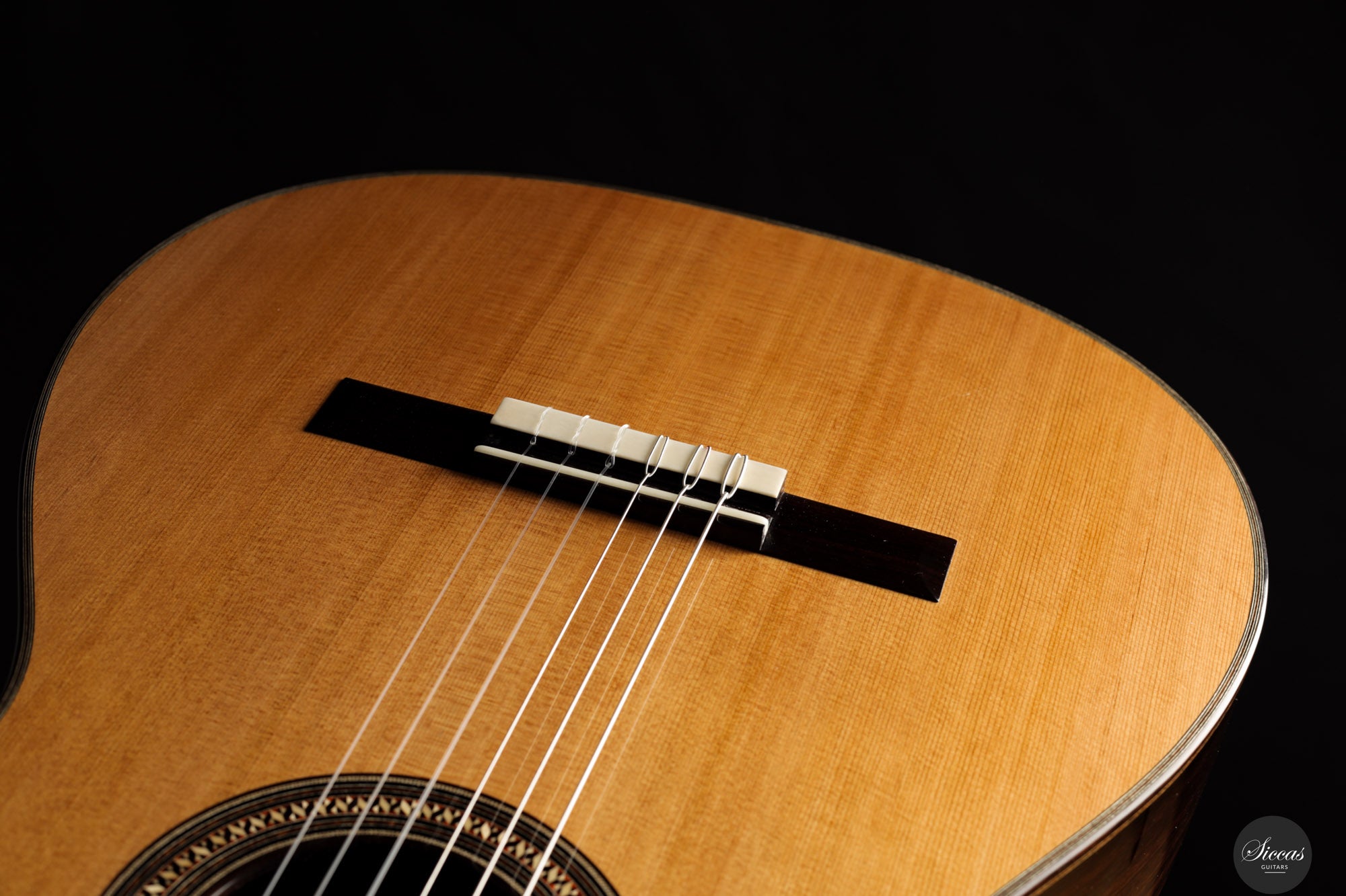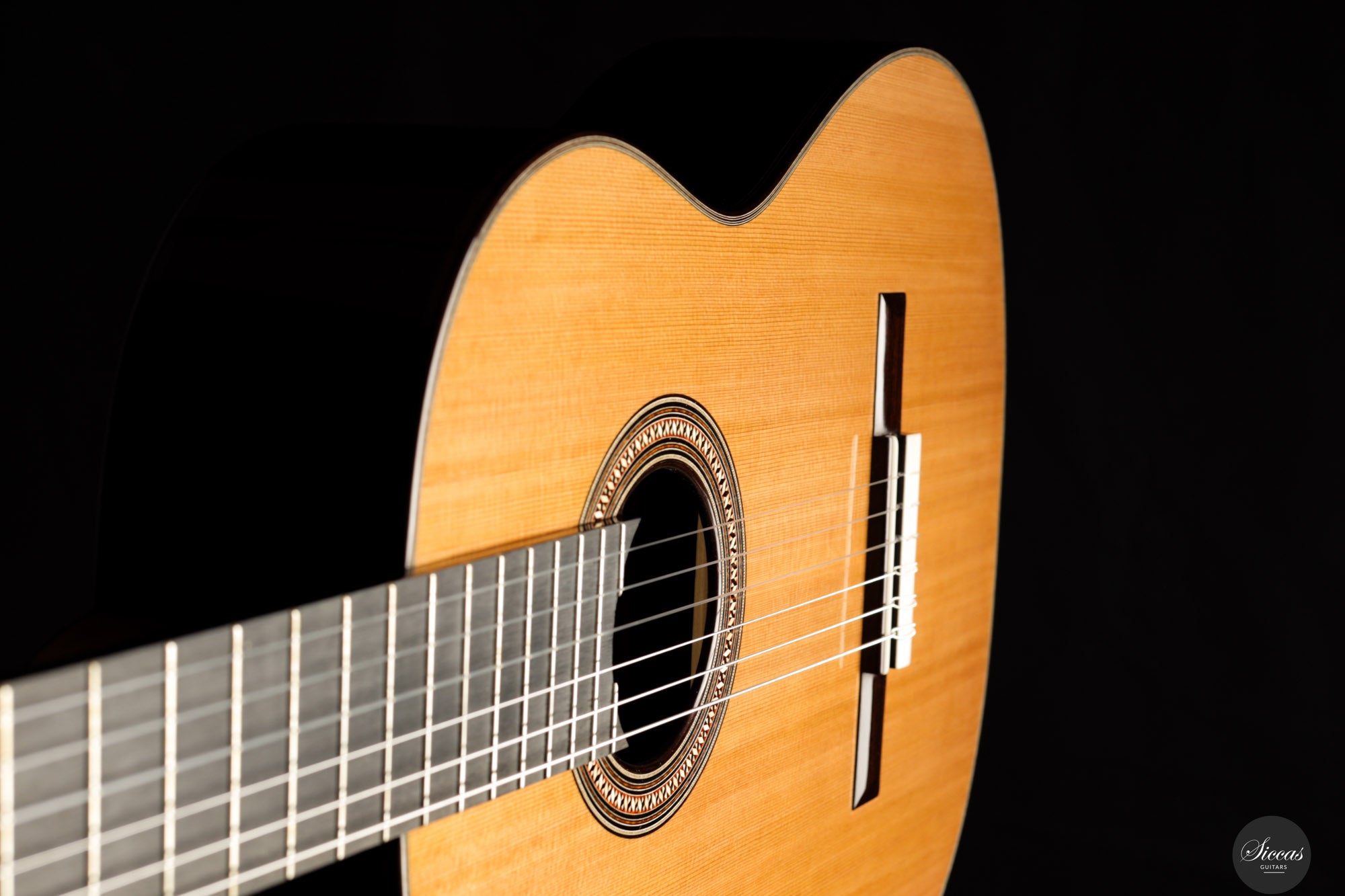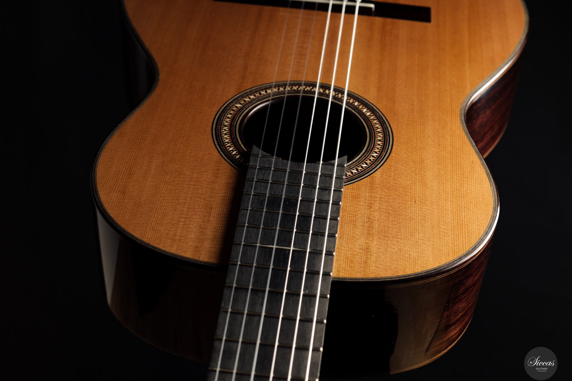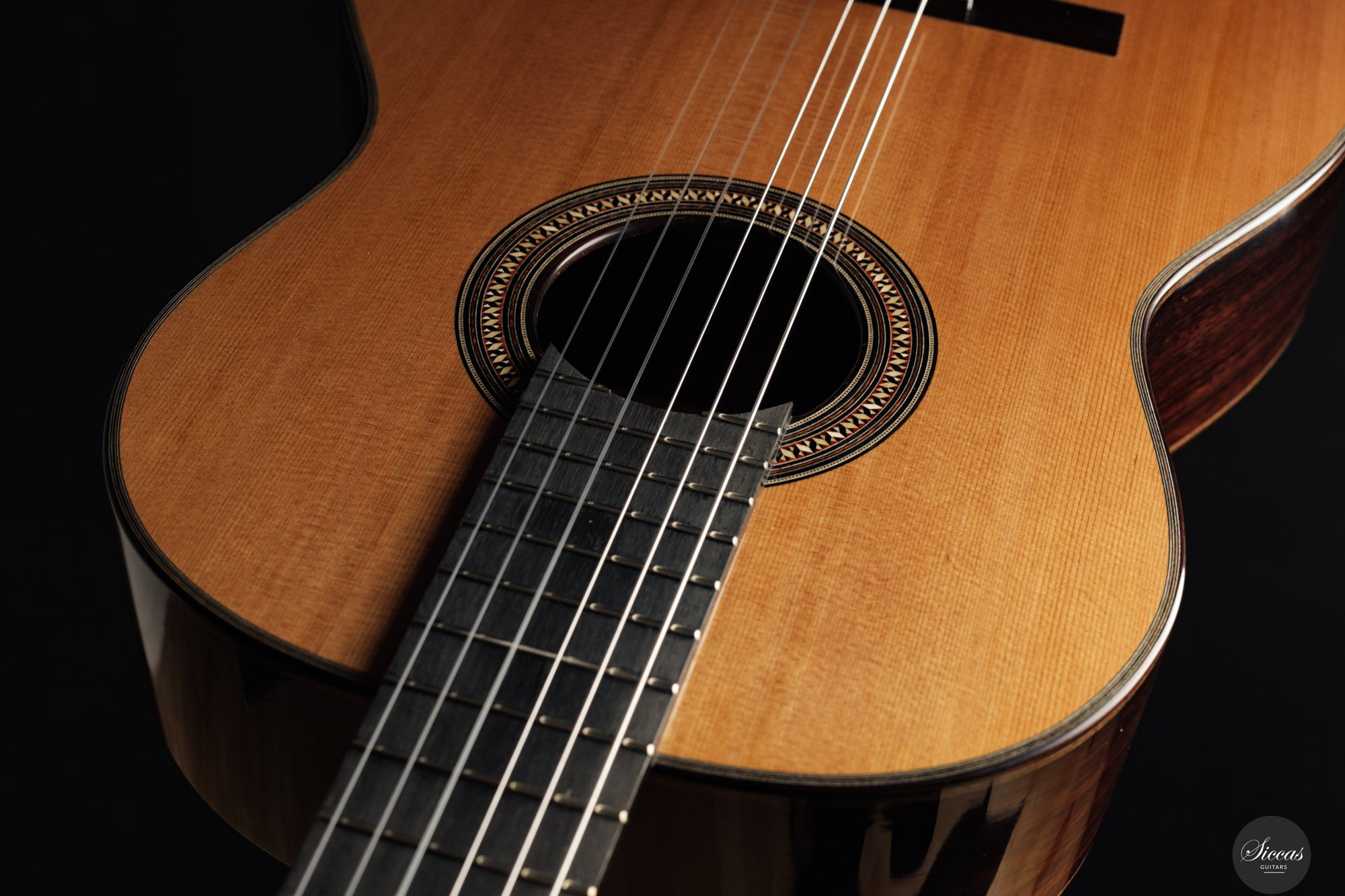 Diese Gitarre aus dem Jahr 2025 mit der Nummer 73 ist traditionell gebaut und verfügt über eine Zederndecke sowie Boden und Zargen aus indischem Palisander, mit einer Schellackpolitur veredelt. Die Zargen sind zusätzlich mit Zypresse gedoppelt, was Projektion und Ansprache verbessert. Die Mensur von 640 mm bei einer Sattelbreite von 51,5 mm sorgt für hohen Spielkomfort, ohne die gewohnten Proportionen der Saitenabstände zu verändern. Mit einem Gewicht von nur 1395 Gramm ist sie ausgesprochen leicht, was die Ansprache und Projektion unterstützt. Ausgestattet ist sie mit Mechaniken von Alessi und sie wird in einem Hartschalenkoffer geliefert. Die Beleistung, inspiriert von französischen Vorbildern, verleiht dem Instrument sowohl Kraft als auch Klarheit. Die klangliche Palette ist breit und farbenreich, mit klarer Stimmtrennung und kristalliner Projektion, wobei die typische Wärme einer Zederndecke erhalten bleibt. Die Diskanttöne sind leuchtend und klar, die Bässe resonant und kraftvoll, während die Mitten voll und präsent wirken. Die Ansprache ist schnell und elastisch, wodurch das Instrument unmittelbar auf feinste Veränderungen im Anschlag reagiert und den Eindruck eines „atmenden“ Klangs vermittelt. Auch in den höheren Lagen bleibt der Ton voll und intensiv, während polyphone Strukturen differenziert und ausgewogen wiedergegeben werden. Aufgrund ihrer hohen Sensibilität erfordert die Gitarre eine sorgfältige Gestaltung der rechten Hand, belohnt dies jedoch mit einem breiten Spektrum an klanglichen Möglichkeiten. Mit ihrer französisch inspirierten Bauweise, edlen Materialien und der komfortablen Spielbarkeit bietet diese Gitarre klangliche Tiefe und Ausdruckskraft für den Konzertgebrauch.Regelmäßige Pflege verlängert die Lebensdauer des Instruments