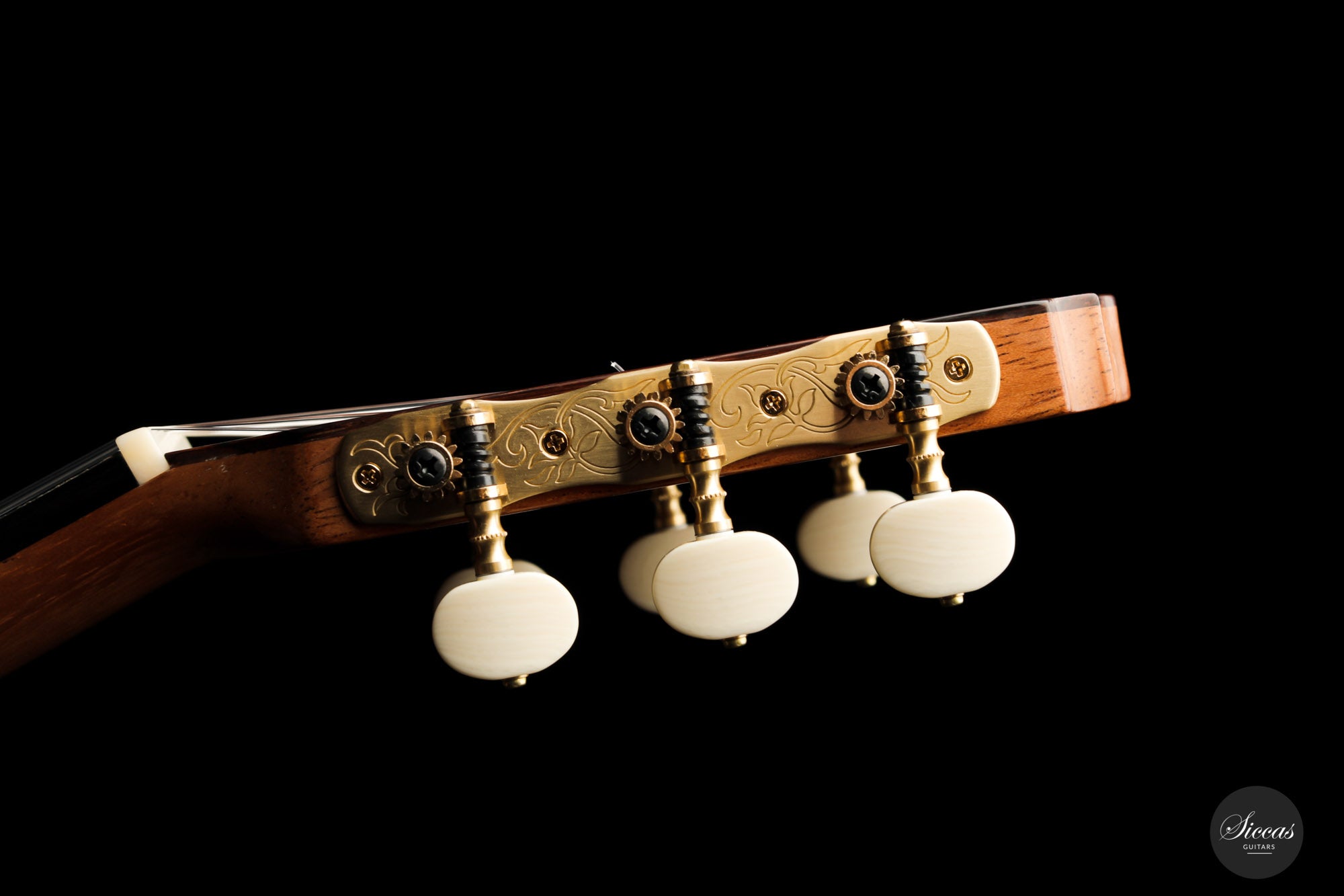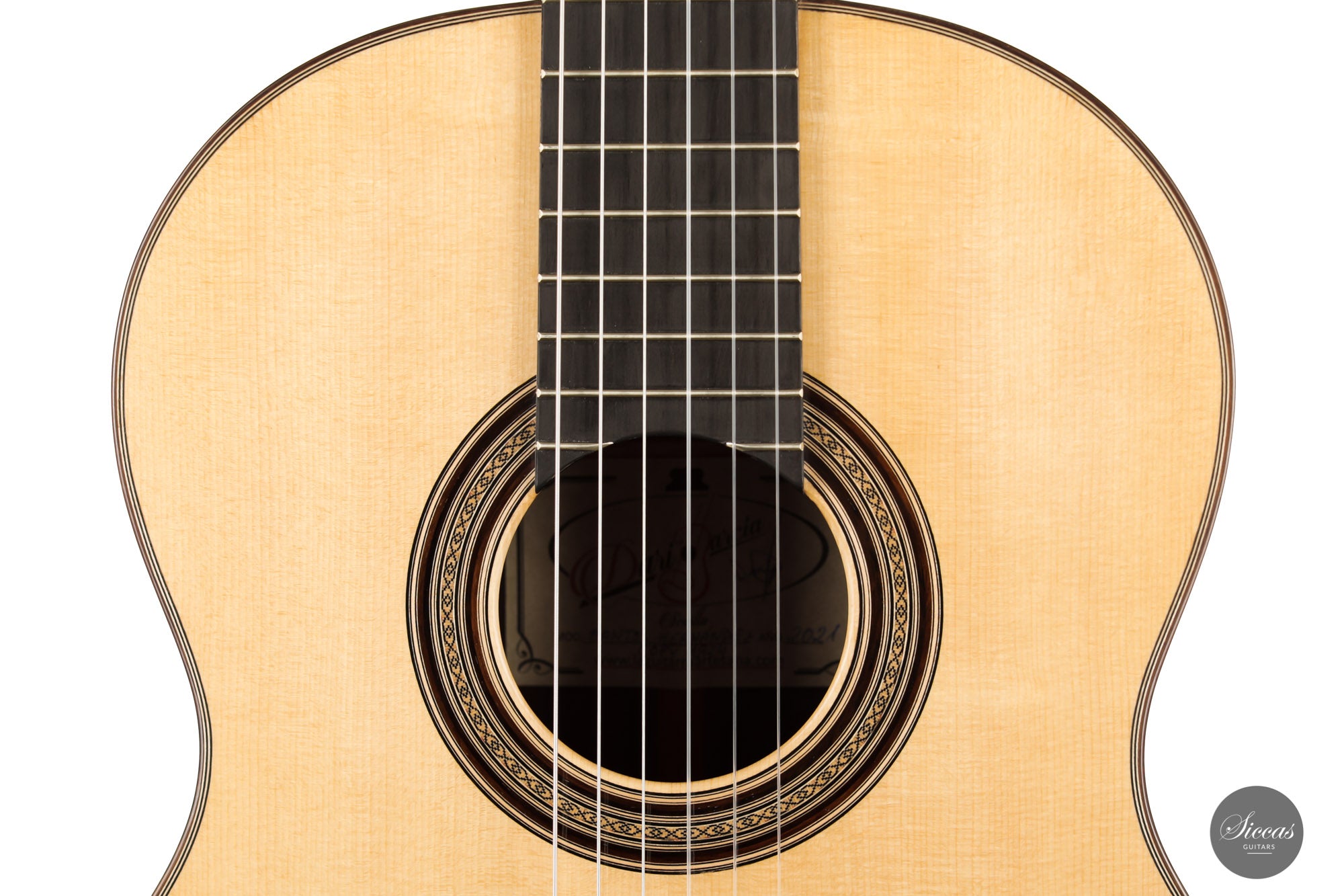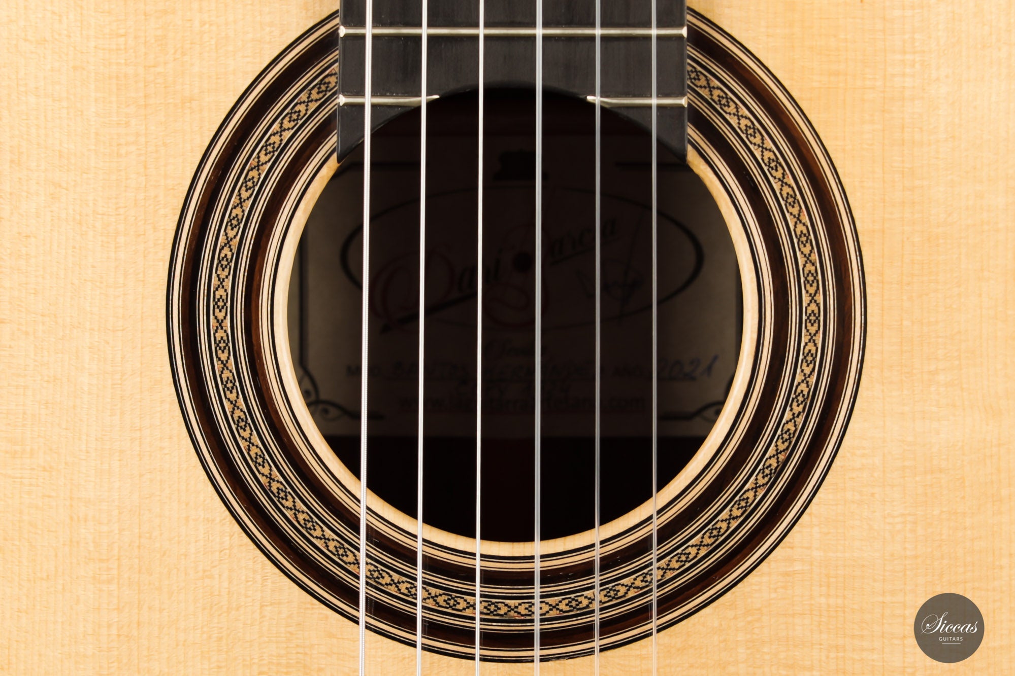 The guitars coming from his workshop all have a classical design that follows the Spanish tradition of the 20th century. Nevertheless, Dario García occasionally integrates modern features such as double sides to improve the projection and bearing capacity of the tone.