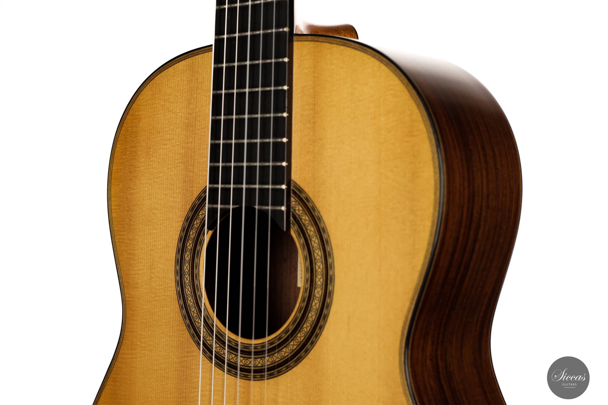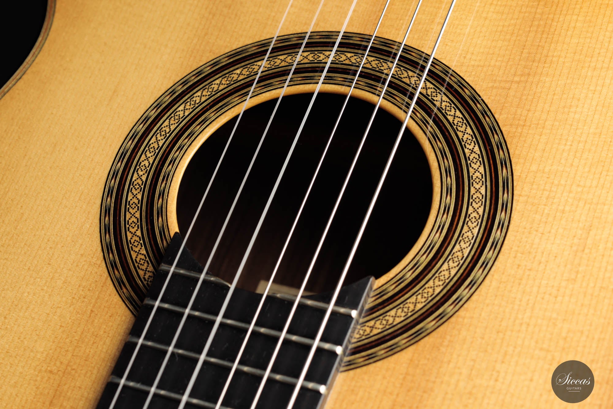 Die klassische Gitarre mit ihren weichen Nylonsaiten und ihrem charakteristischen Timbre ist zum Symbol der Kammermusik, der spanischen Tradition und des Konzertrepertoires geworden. Ihre moderne Form prägte Antonio de Torres im 19. Jahrhundert, indem er den Standard für Korpus, Fächerbeleistung und die 65-Zentimeter-Mensur setzte, die bis heute verwendet werden. Instrumente dieser Kategorie eröffnen eine reiche Palette von den feinen romantischen Miniaturen Tárregas bis zu den majestätischen Konzerten Rodrigos. Hier finden Sie Gitarren, die historische Kontinuität bewahren und zugleich zu neuen Interpretationen anregen.