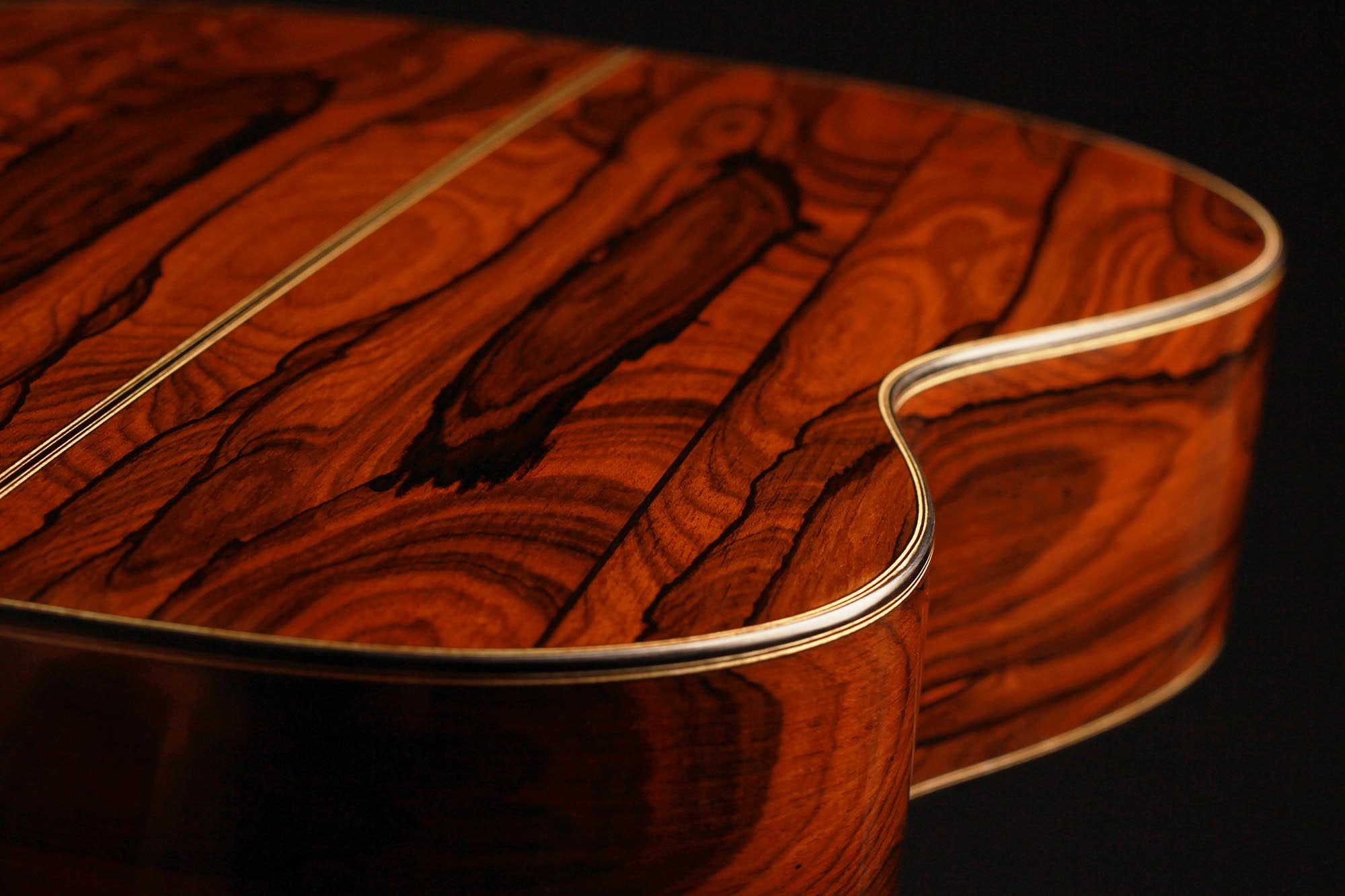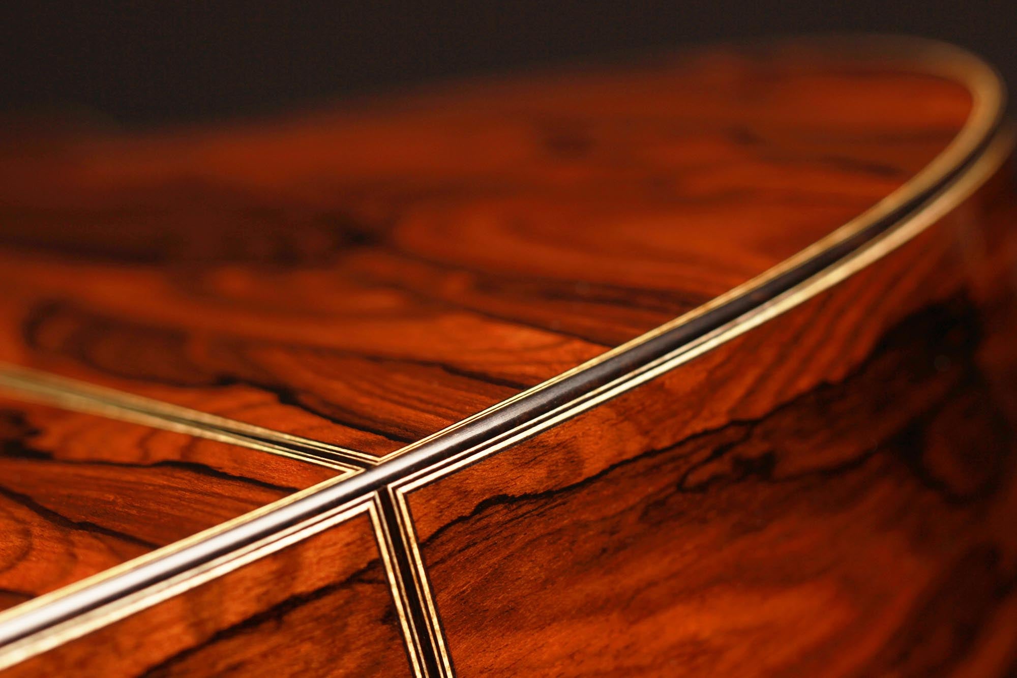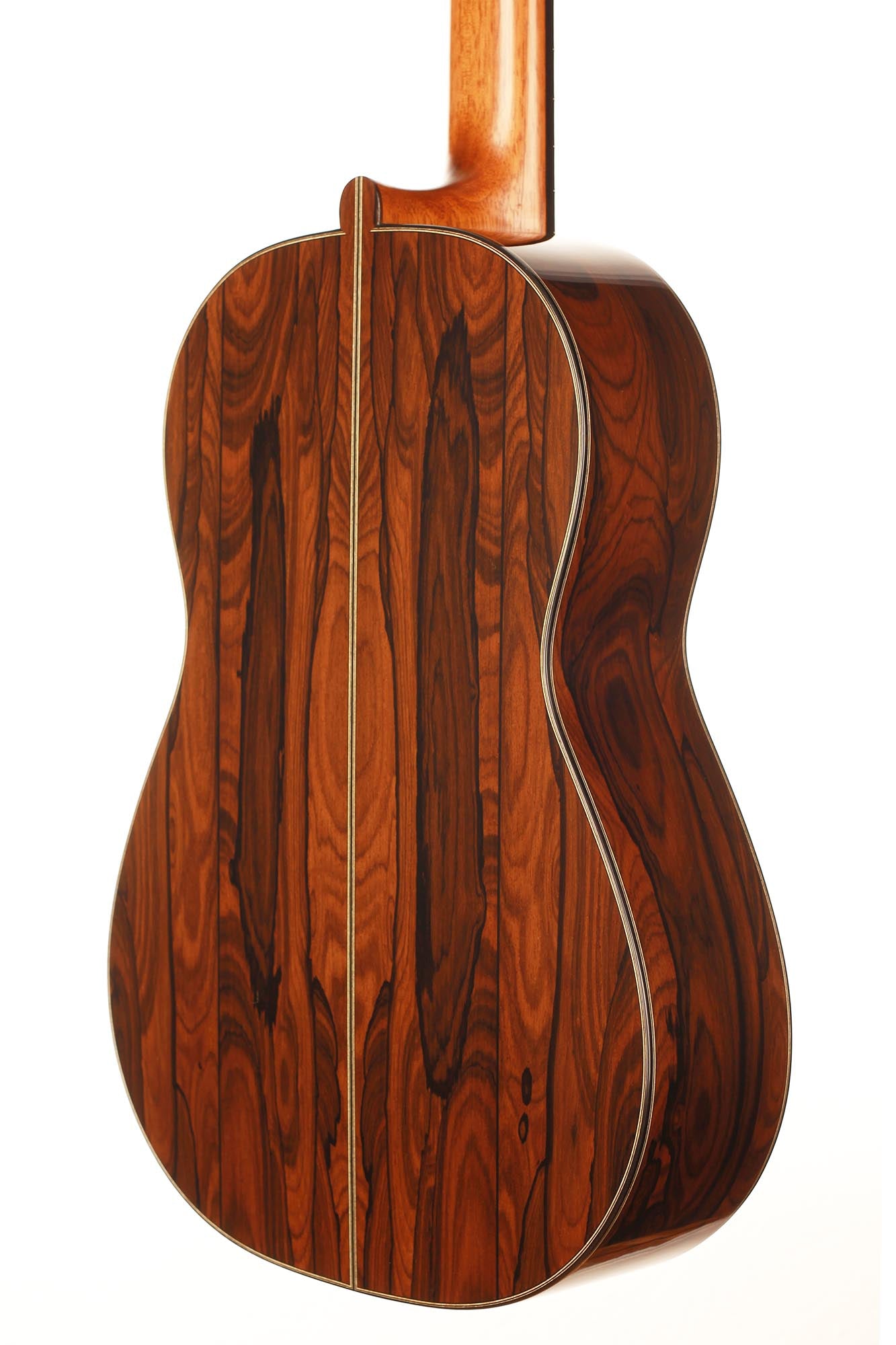 Diese prächtige Gitarre zeigt fantastische handwerkliche Fähigkeiten und wurde mit einer hervorragenden Holzauswahl gebaut. Boden und Zargen bestehen aus einem sehr figurativen und besonders symmetrischen Ziricote. Da alle Hölzer auf diesem Instrument ungeschützte Arten sind, ist diese Gitarre Cites free. Die traditionelle Fichtendecke mit 8 Fächerverstrebungen hat eine schöne Honigfarbe und harmoniert perfekt mit dem Rest des Instruments. Inspiriert von Enrique Garcia und Antonio de Torres, ist diese Gitarre eine schöne Interpretation der Ästhetik und des Charmes der alten Welt.