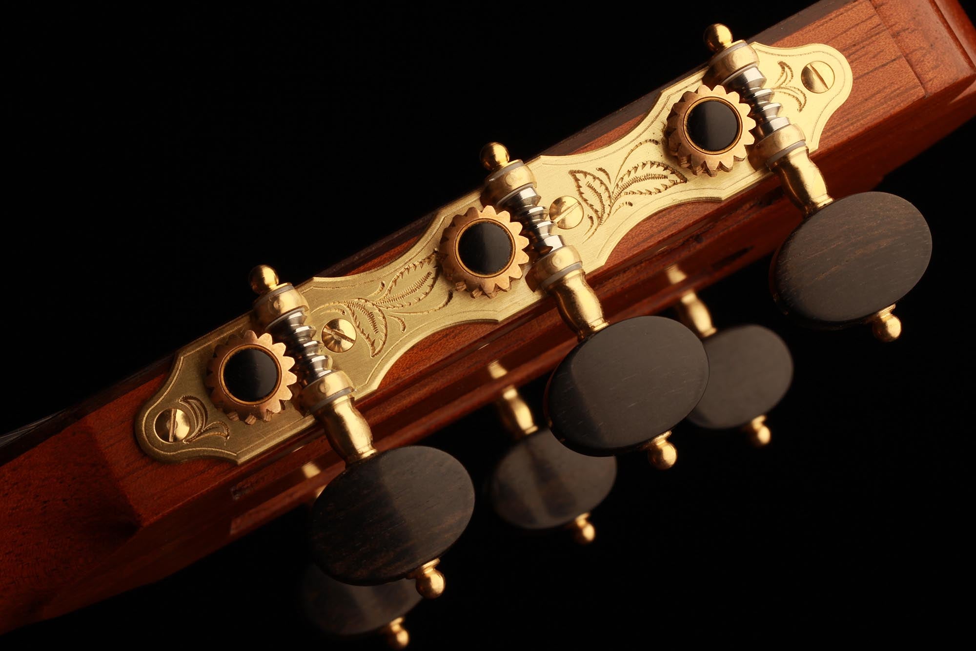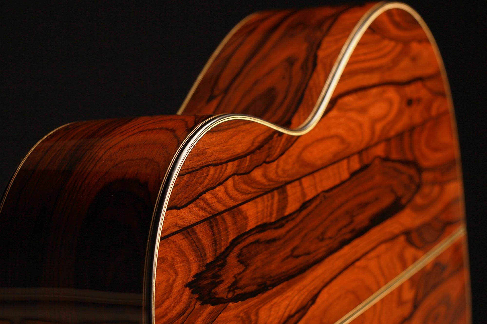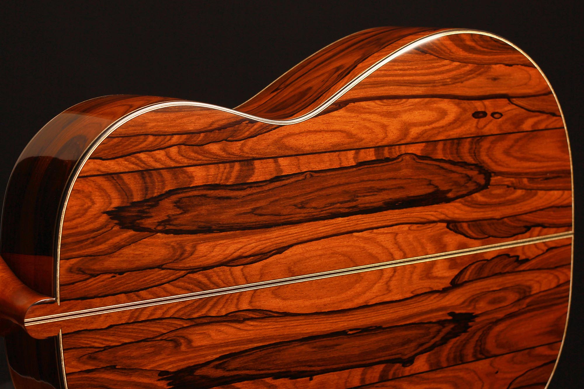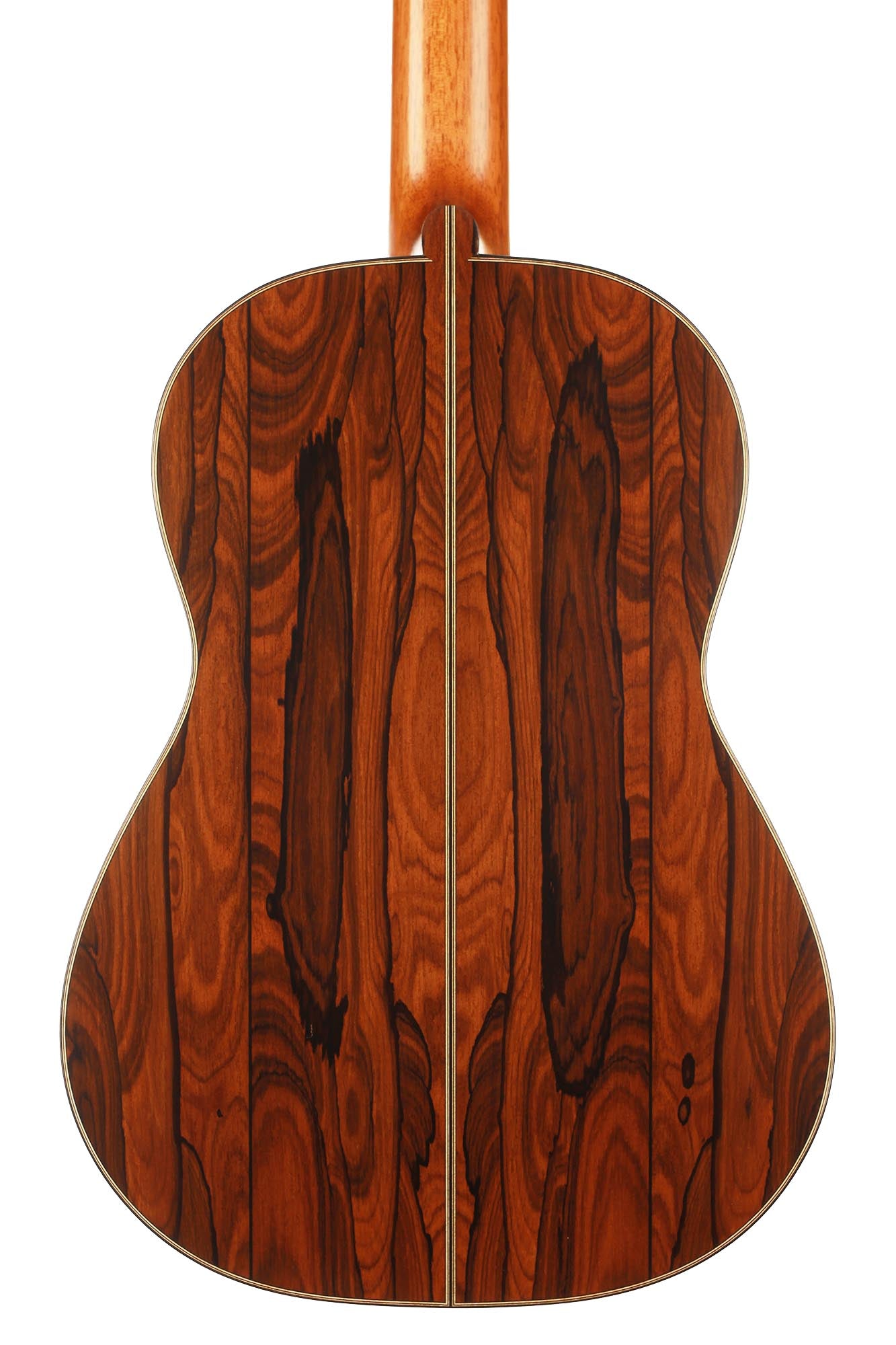 Diese prächtige Gitarre zeigt fantastische handwerkliche Fähigkeiten und wurde mit einer hervorragenden Holzauswahl gebaut. Boden und Zargen bestehen aus einem sehr figurativen und besonders symmetrischen Ziricote. Da alle Hölzer auf diesem Instrument ungeschützte Arten sind, ist diese Gitarre Cites free. Die traditionelle Fichtendecke mit 8 Fächerverstrebungen hat eine schöne Honigfarbe und harmoniert perfekt mit dem Rest des Instruments. Inspiriert von Enrique Garcia und Antonio de Torres, ist diese Gitarre eine schöne Interpretation der Ästhetik und des Charmes der alten Welt.