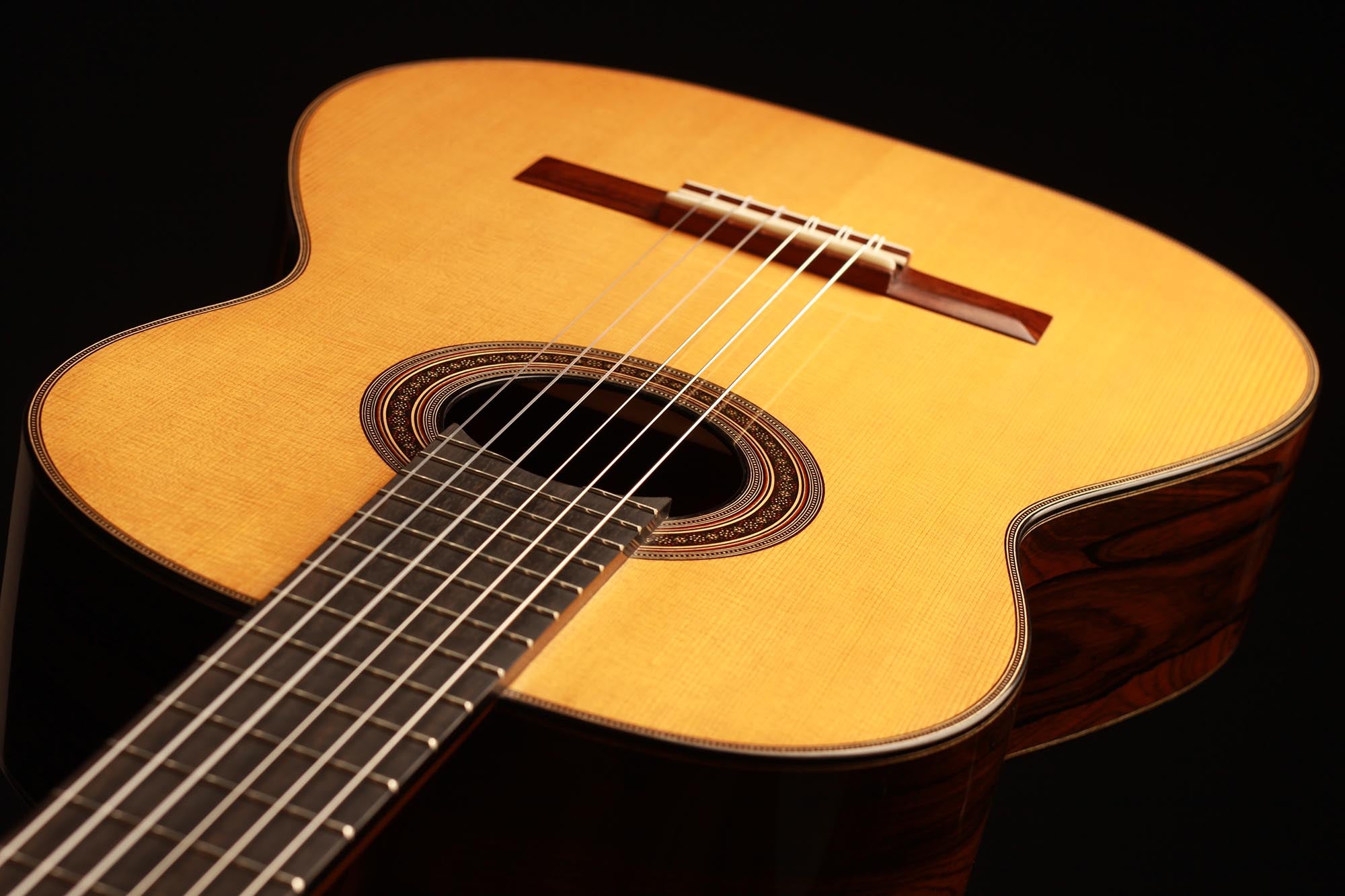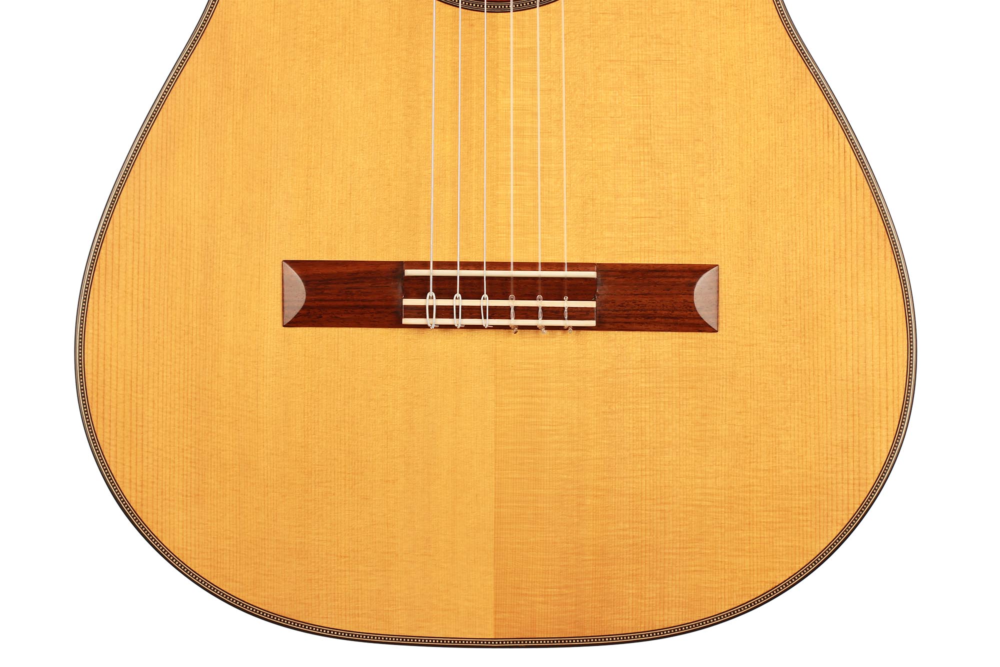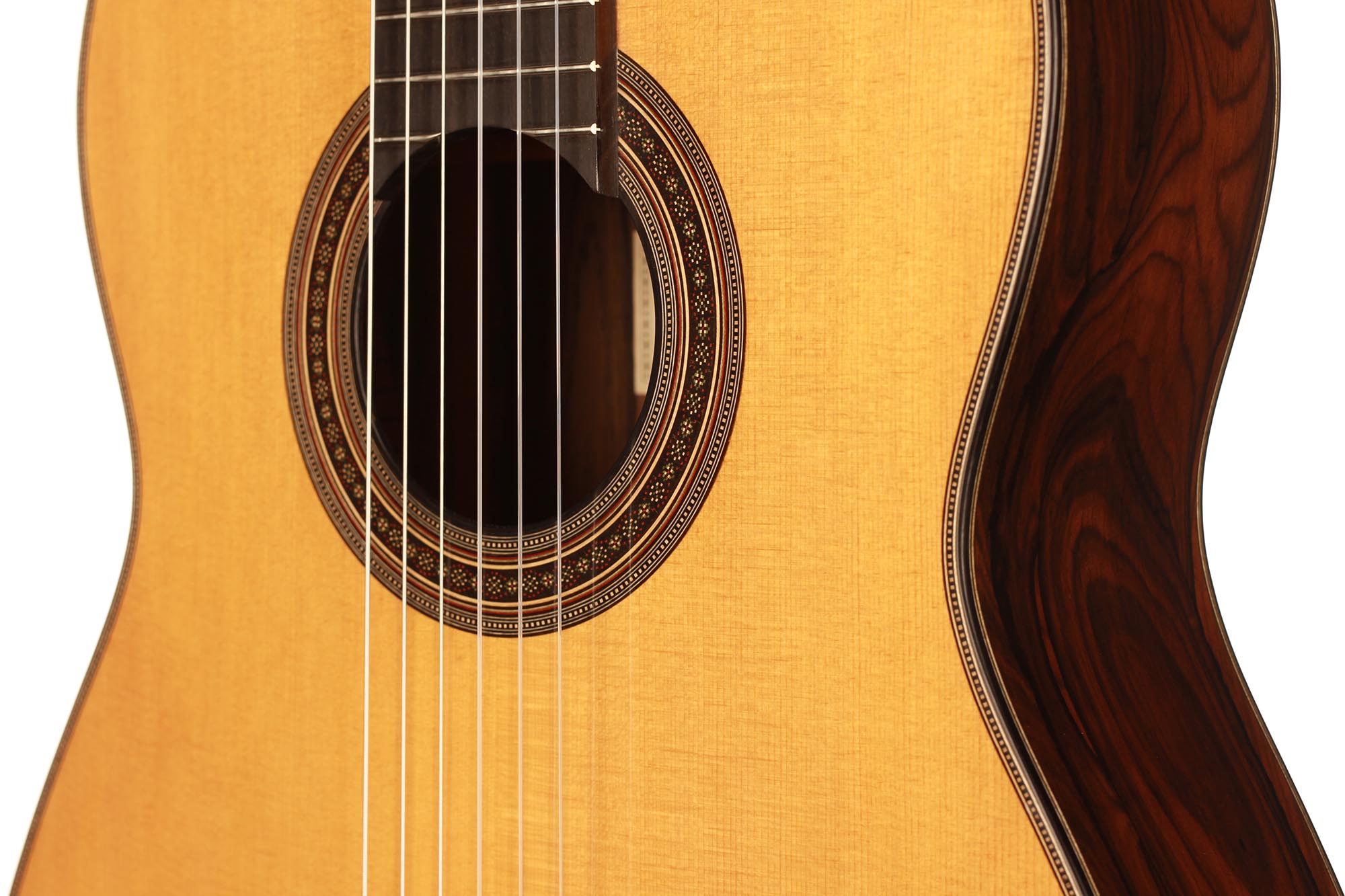 Was für ein satter und vielschichtiger Ton, den diese ohnehin schon sehr offene neue Gitarre zeigt. Das Sustain auf der ersten E-Saite ist sehr konstant und beeindruckend lang. Die Balance und die Obertöne sind perfekt aufeinander abgestimmt und machen sie zu einer geeigneten Konzertgitarre für alle Arten von Repertoire. Dieses sehr sensible und anmutige Instrument ist definitiv eine großartige Gelegenheit, in die Tiefe der klassischen Gitarre einzutauchen und ein Instrument zu genießen, das von den alten Meistern inspiriert, aber für den modernen Gitarristen gemacht ist.