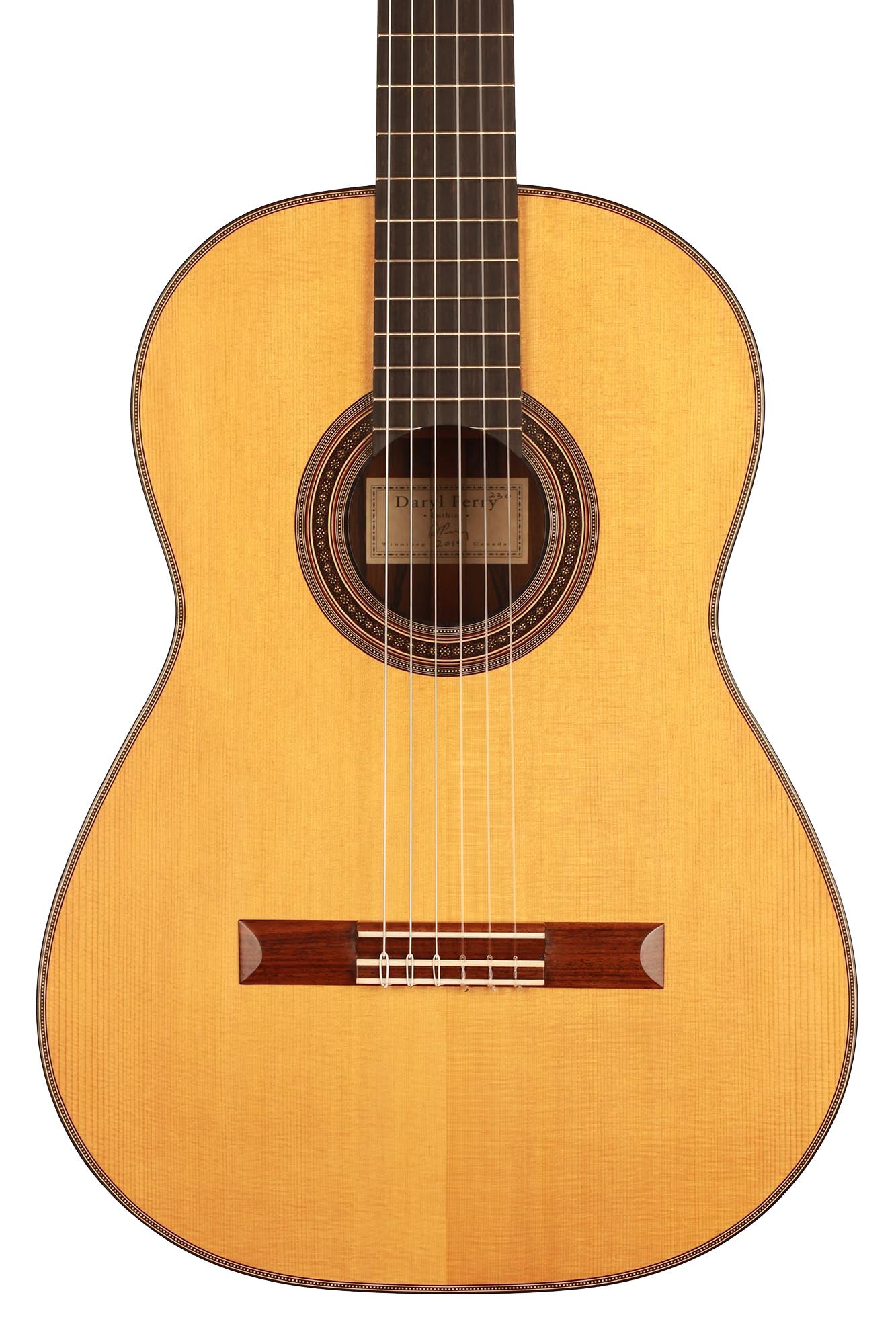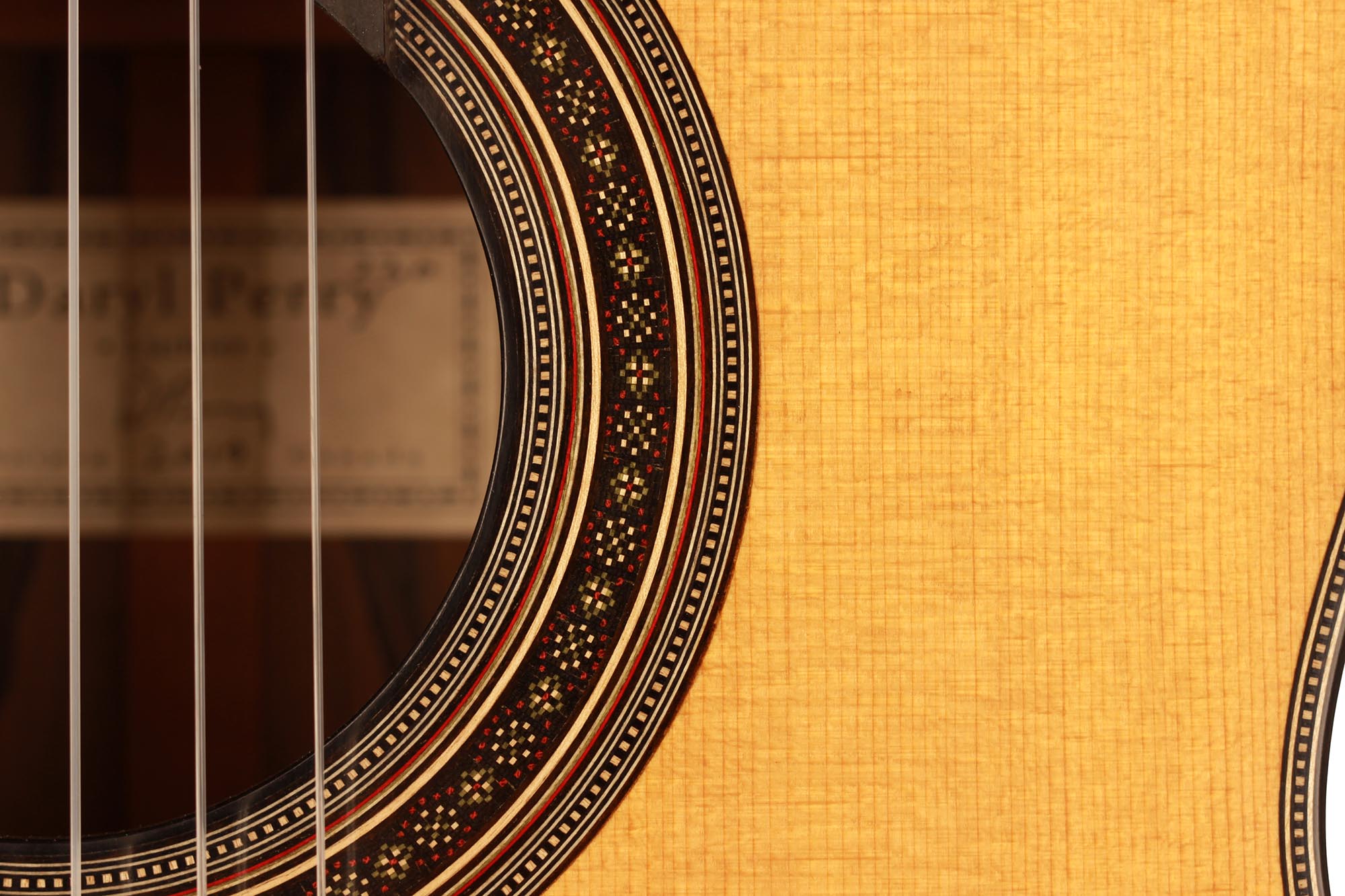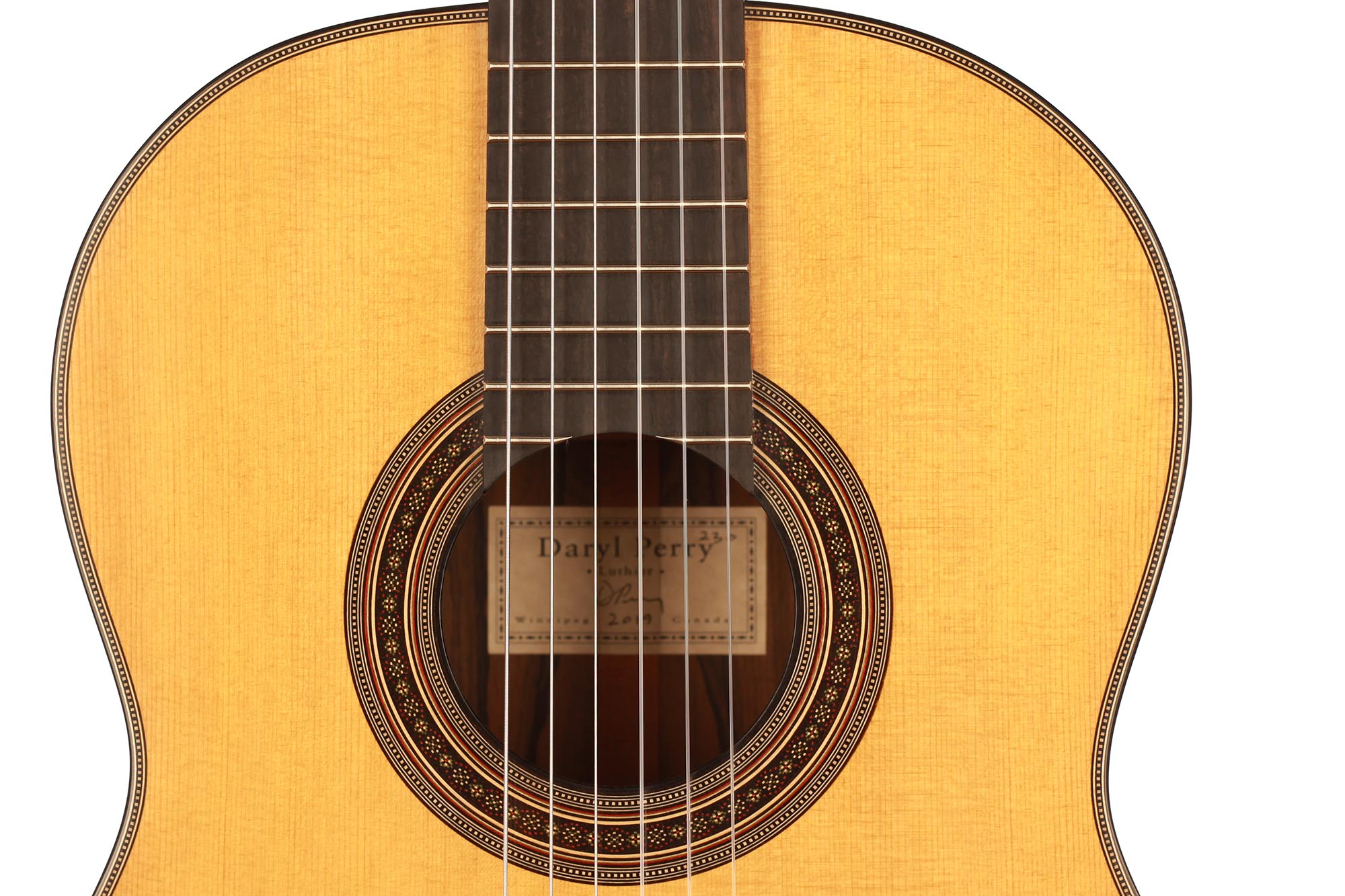 Hier ist eine schöne Gitarre aus Winnipeg, Kanada, hergestellt vom Gitarrenbauer Daryl Perry. Seit 1982 konzentrierte sich Daryl auf den Bau von Streichinstrumenten und ist heute einer der besten kanadischen Gitarrenbauer für klassische Gitarren. Er arbeitet in der Tradition der großen Meister des 19. und 20. Jahrhunderts, wobei er hauptsächlich mit Handwerkzeugen und unter besonderer Berücksichtigung der Eigenschaften jedes einzelnen Holzstücks arbeitet. Großartige Gitarristen wie Marcin Dylla spielen auf Daryls Gitarren und seine Instrumente sind heute selten und sehr gefragt.