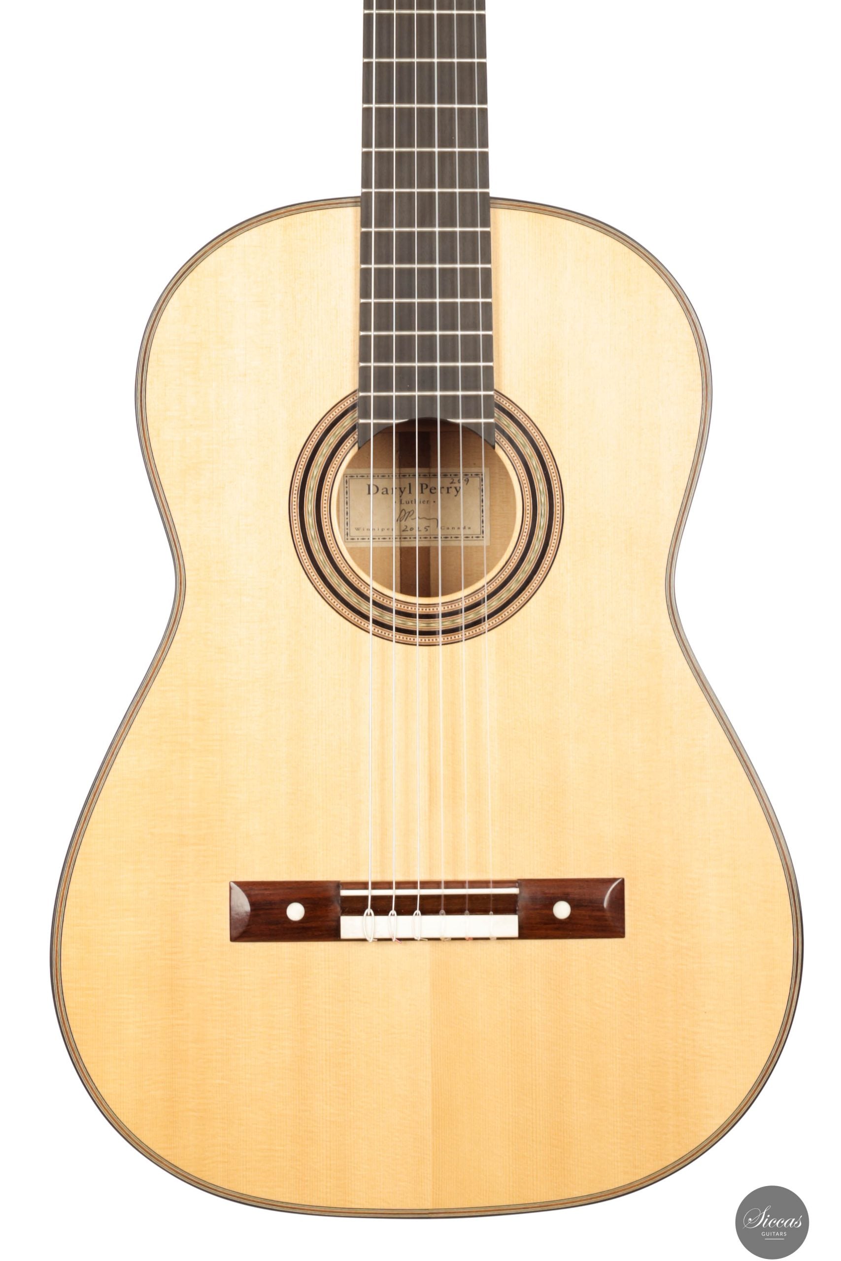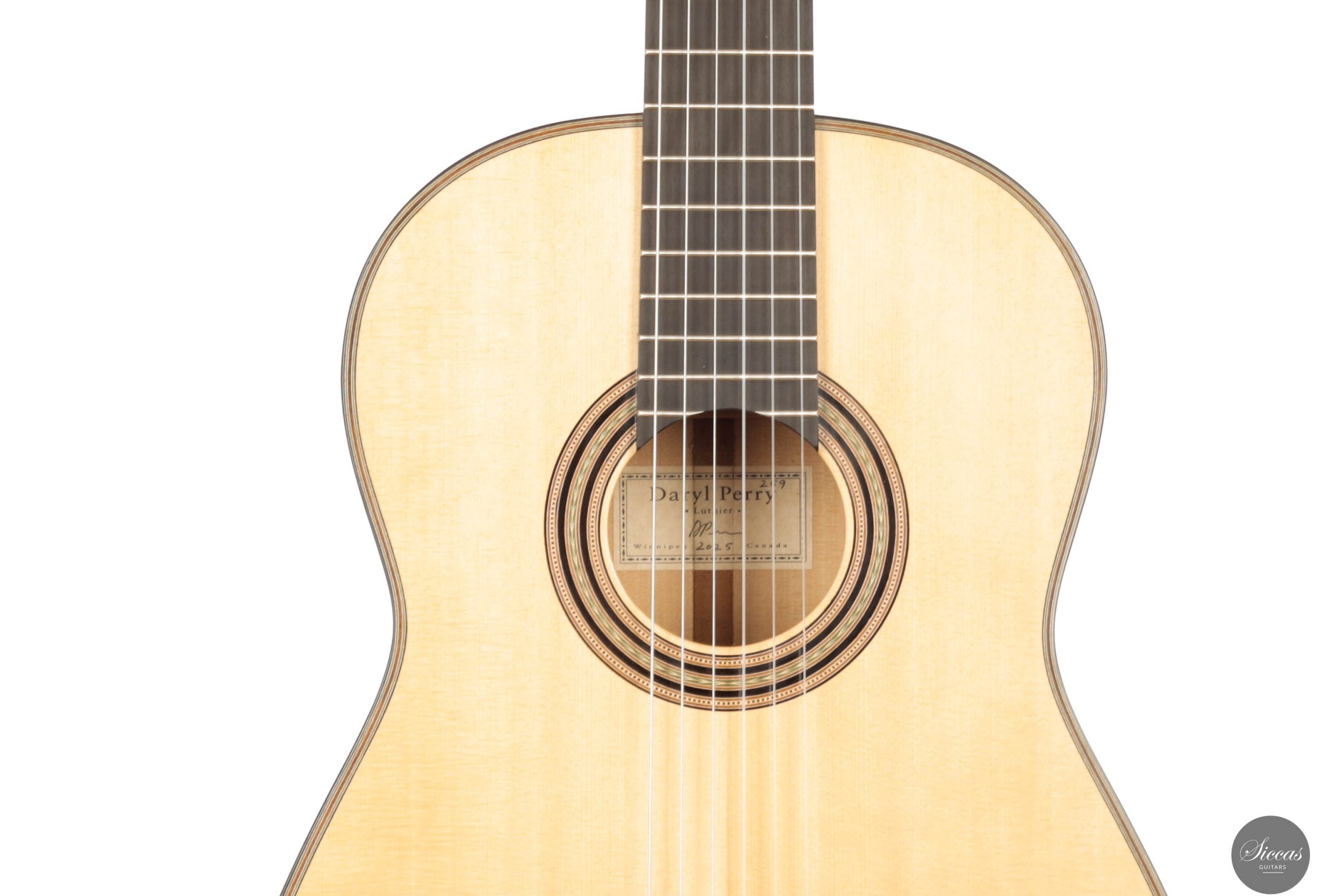 Dieses Meisterwerk, geschaffen von dem renommierten Gitarrenbauer Daryl Perry aus Winnipeg, Kanada, verkörpert seine Hingabe an die Kunst des Gitarrenbaus. Seit den frühen 1980er Jahren hat Perry sein Handwerk verfeinert und sich zu einem der führenden klassischen Gitarrenbauer Kanadas entwickelt. Seine akribische Liebe zum Detail, inspiriert von den legendären Gitarrenbauern des 19. und 20. Jahrhunderts, spiegelt sich in jedem Aspekt dieses Instruments wider, insbesondere in der Verwendung traditioneller Handwerkzeuge und seiner tiefen Wertschätzung für die einzigartigen Eigenschaften jedes Holzstücks. Das Ergebnis ist eine Gitarre, die mit derselben künstlerischen Brillanz erklingt, die gefeierte Musiker wie Marcin Dylla überzeugt hat.