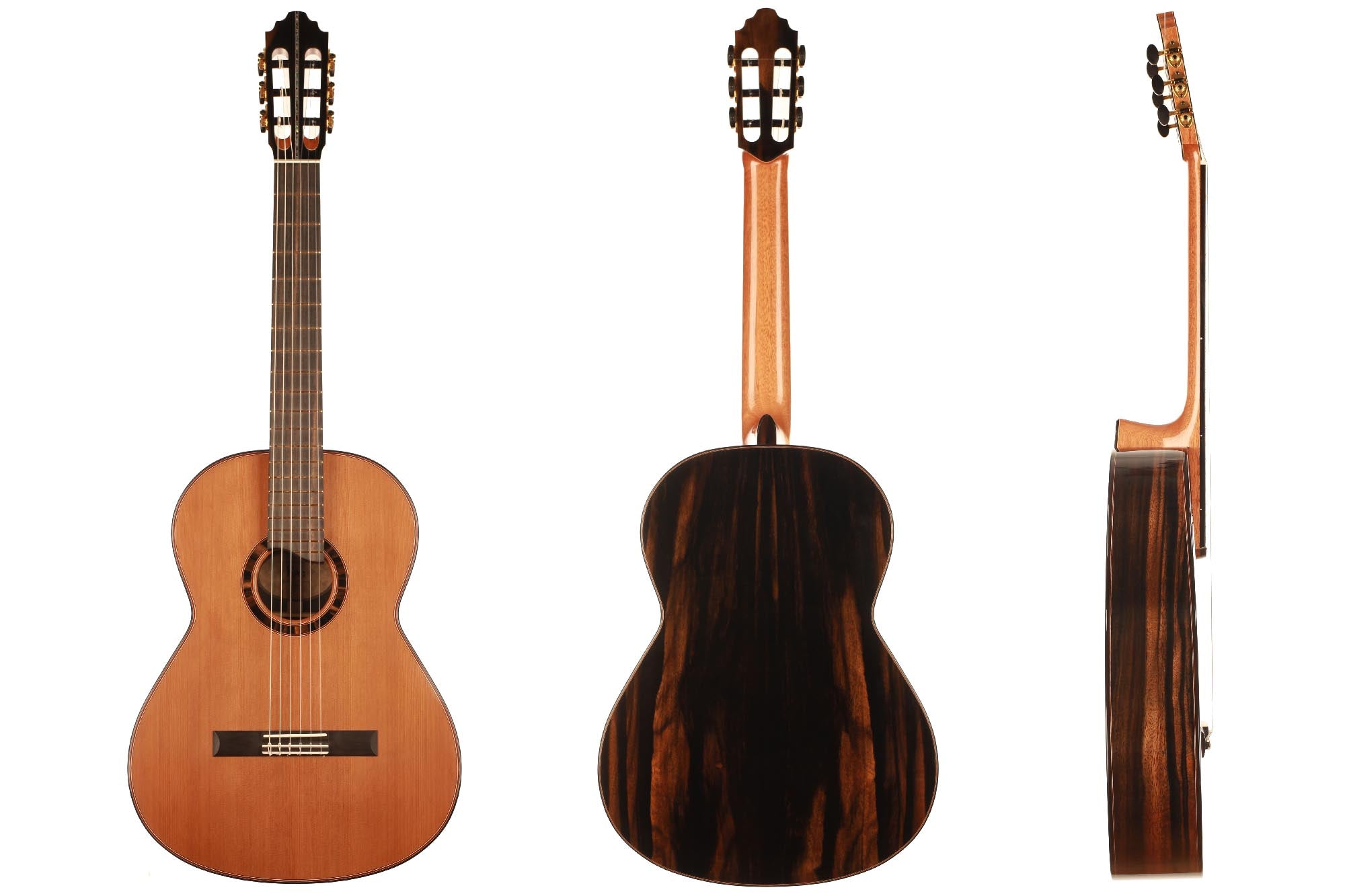 Diese sehr schöne 2019 Cedar Doubletop Gitarre ist eine der am einfachsten zu spielenden klassischen Gitarren, die man sich vorstellen kann. Dank seines dünnen Halses, des erhöhten Griffbretts und der sehr sensiblen Decke eignet sich dieses Instrument für Gitarristen, die eine komfortable Gitarre besonders schätzen oder für Spieler mit kleineren Händen, die auf eine echte Konzertgitarre setzen. Der innere Kern der Doppel-Decke besteht aus federleichtem Paulownia Holz, im Gegensatz zum üblichen Nomex-Verbund. Dies verleiht dem Klang ein „holziges“ Timbre mit einem warmen Ton und einer großen Projektion. Der Dynamikumfang, die klangliche Vielseitigkeit und die erstaunliche Spielbarkeit dieses Instruments machen es zu einer wunderbaren Konzertgitarre.