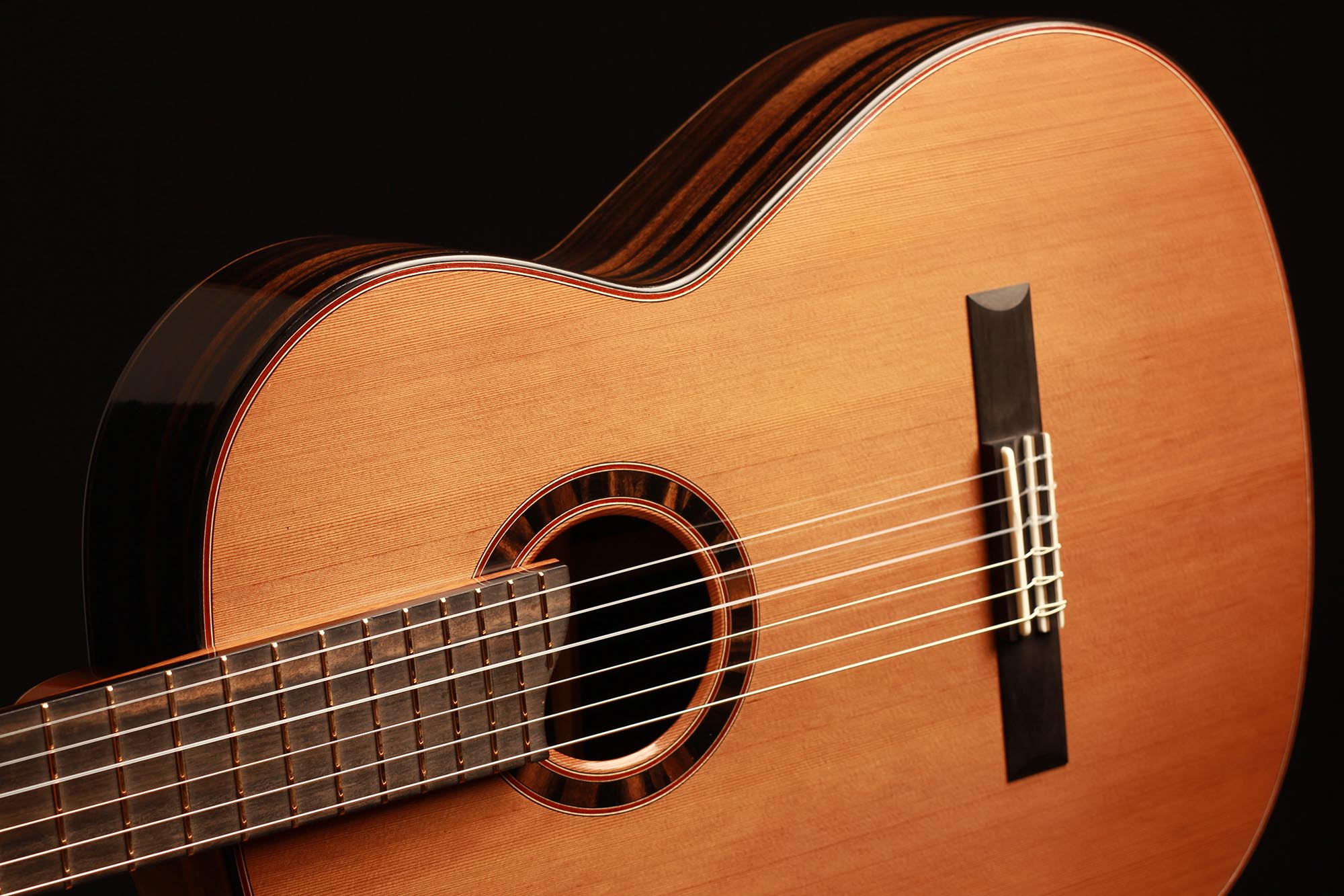 Die klassische Gitarre mit ihren weichen Nylonsaiten und ihrem charakteristischen Timbre ist zum Symbol der Kammermusik, der spanischen Tradition und des Konzertrepertoires geworden. Ihre moderne Form prägte Antonio de Torres im 19. Jahrhundert, indem er den Standard für Korpus, Fächerbeleistung und die 65-Zentimeter-Mensur setzte, die bis heute verwendet werden. Instrumente dieser Kategorie eröffnen eine reiche Palette von den feinen romantischen Miniaturen Tárregas bis zu den majestätischen Konzerten Rodrigos. Hier finden Sie Gitarren, die historische Kontinuität bewahren und zugleich zu neuen Interpretationen anregen.