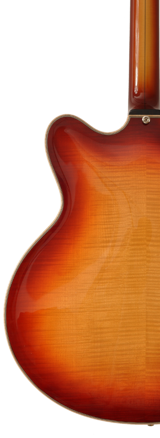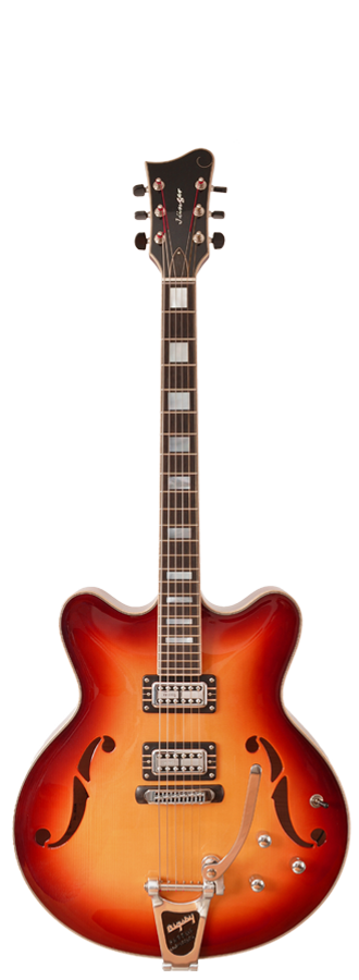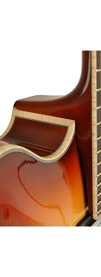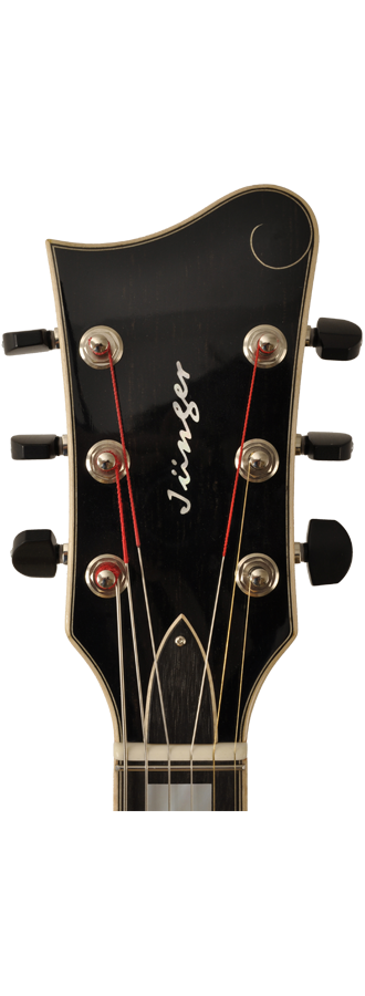 David Jünger ist ein junger und ambitionierter Gitarrenbauer, der sich auf den Bau von Archtop Jazzgitarren sowie Steelstring Gitarren spezialisiert hat. Bereits während seiner Schulzeit begann er, sich mit dem Gitarrenbau zu beschäftigen. Bald folgten viele Monate Praktikum, unter anderem bei Andreas Cuntz, Stefan Hahl und Jürgen Volkert. Dieses Jazzgitarrenmodell ist speziell für das Spielen mit dem Verstärker entwickelt worden. Es verfügt über eine steife Decke sowie steife Beleistung, um Rückkopplungen bei der elektrischen Verstärkung zu vermeiden. Boden sowie Zargen sind aus Riegelahorn gefertigt, die Decke besteht aus feiner Alpenfichte. Das Ebenholzgriffbrett verfügt über 24 Bünde, was in Verbindung mit dem Cutaway und dem Halsübergang am 16. Bund das Spielen in den hohen Lagen erleichtert. Die TV Jones Tonabnehmer bringen das Instrument am Verstärker gut zur Geltung. Durch die Schaller Rollerbridge ist die Stimmstabilität auch nach Benutzung des Bigsby Tremolosystems garantiert. Die dünne Nitrolackierung verleiht dem Instrument einen edlen Glanz.