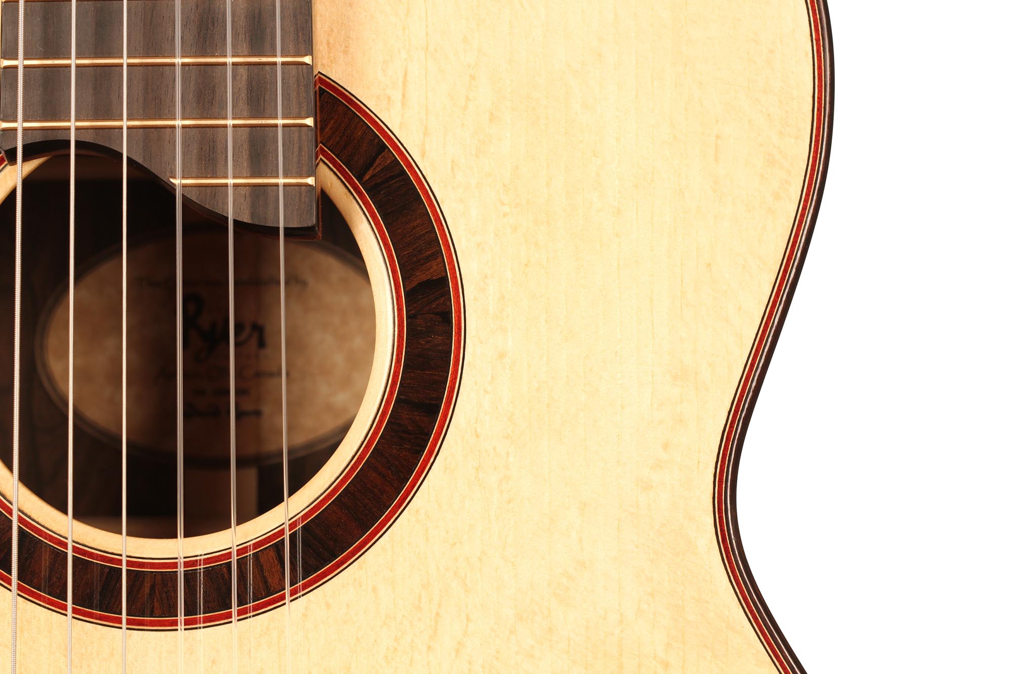 David Ryer is a Canada based guitar maker. He started repairing guitars for local guitar shops in the 1980s. Later he crafted mainly high quality acoustic guitars. In 2000 he did an initial training in classical guitar building with Sergei de Jonge which he completed in an extensive apprenticeship some years later. He became a good friend of Sergei and now builds high-end handcrafted acoustic and classical guitars in Ashton, Canada.