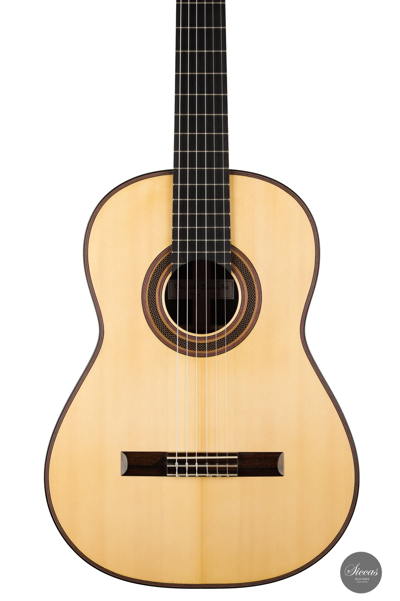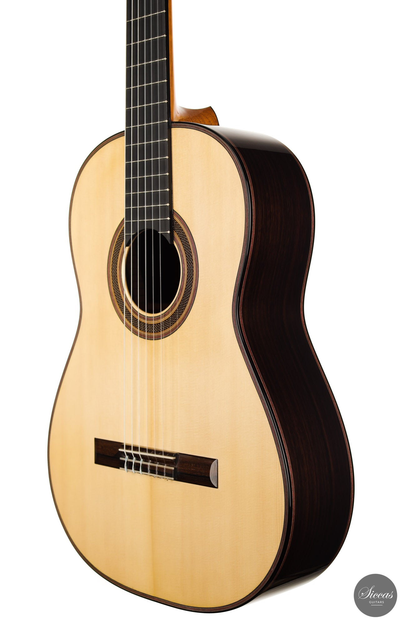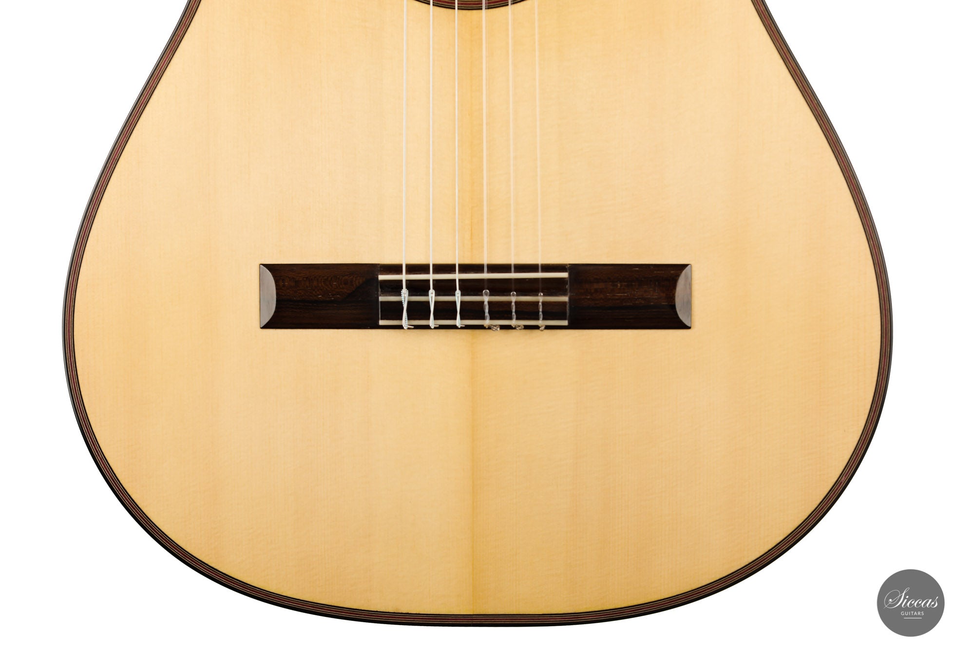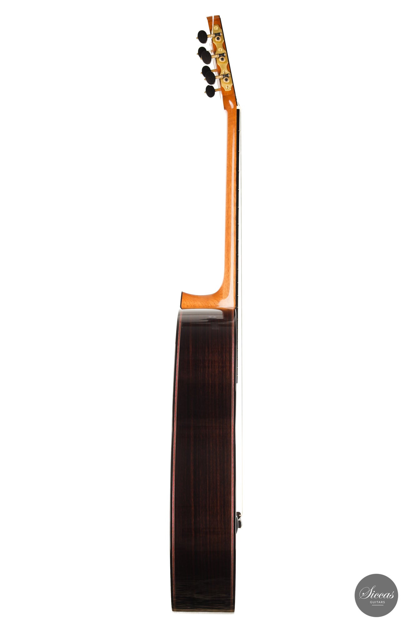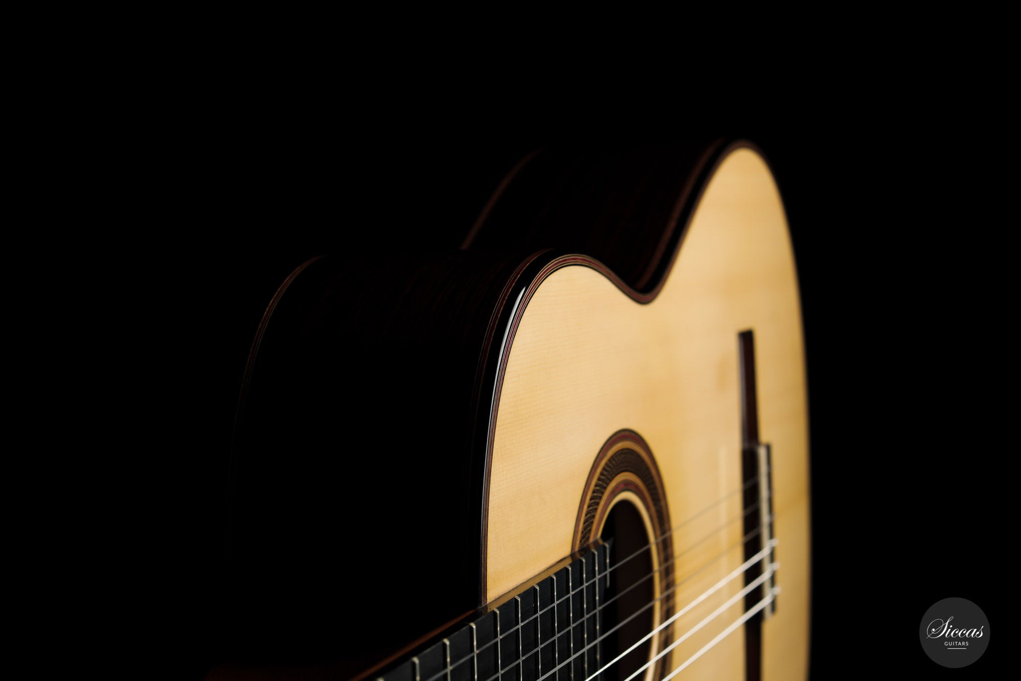 This superb guitar is the first one we have received from the Italian luthier's atelier. It is a magnificent instrument with rich marquetry and great attention to detail. This guitar has a deep and responsive sound, incredibly easy to play. The basses have a warm sound combined with precise and crystalline trebles. Congratulations to the Milanese luthier for this first-class instrument.