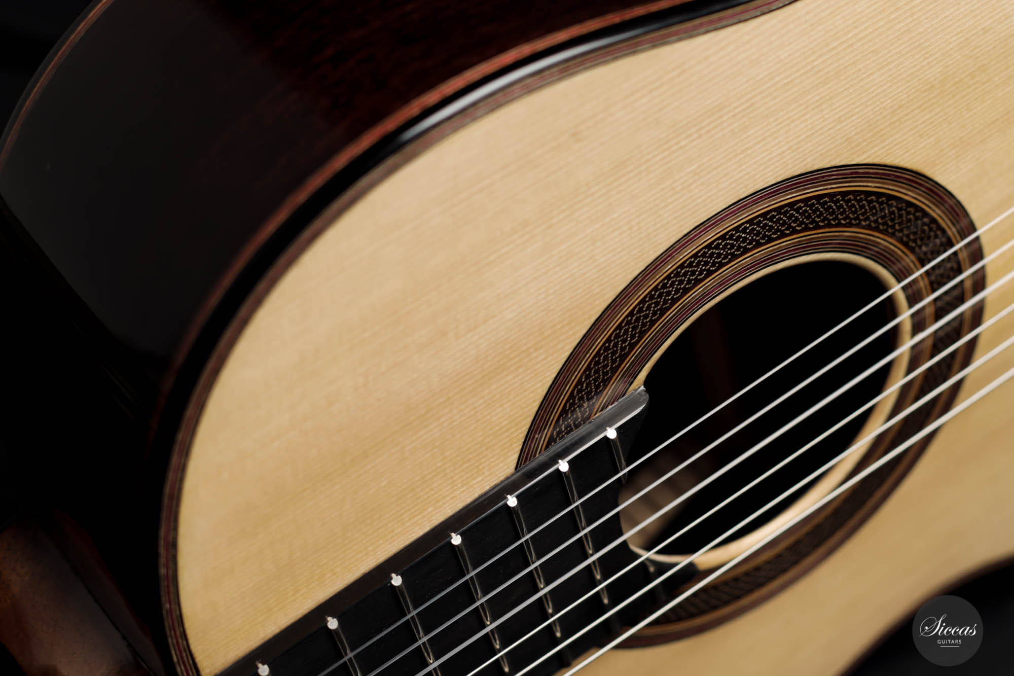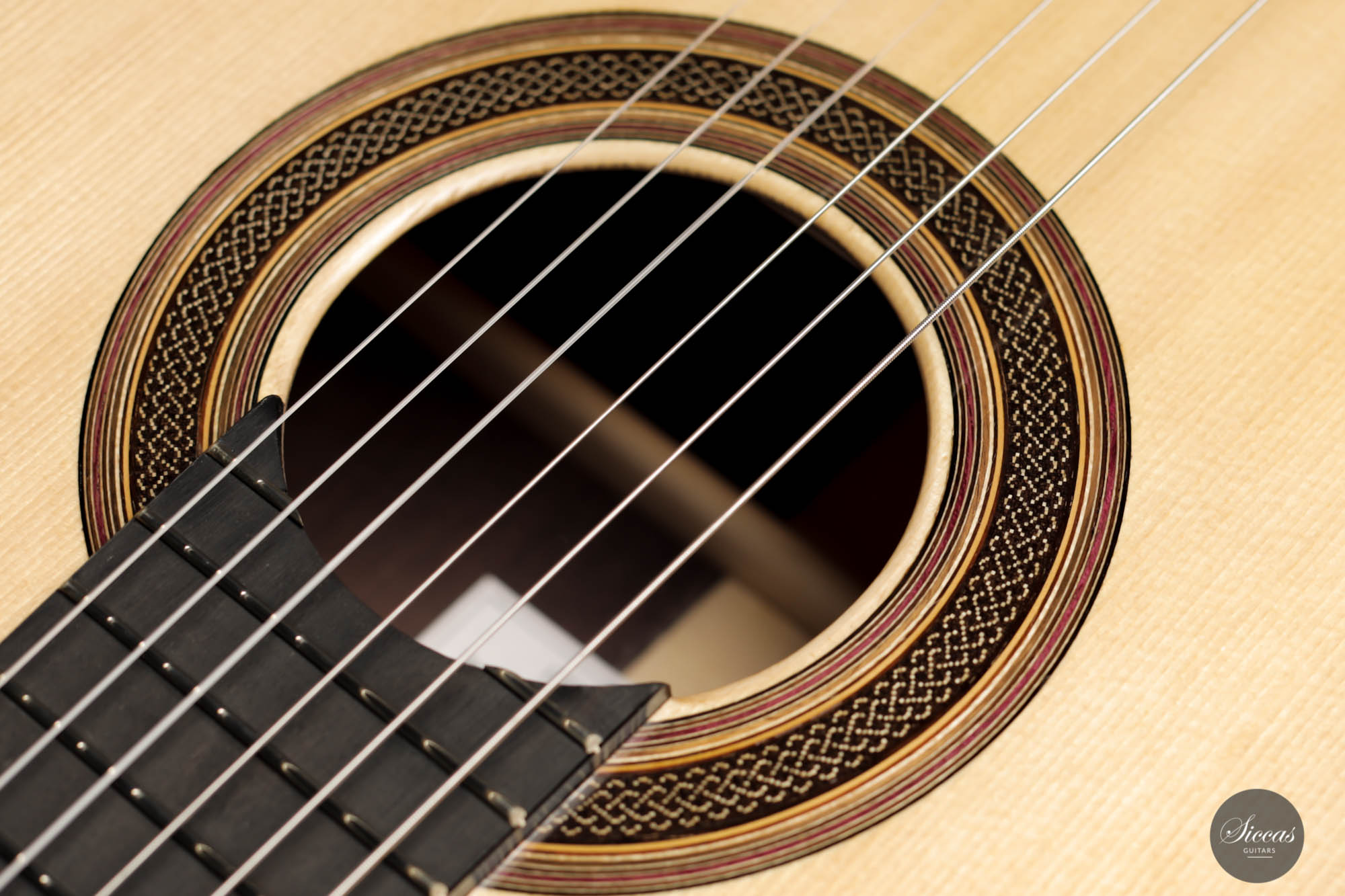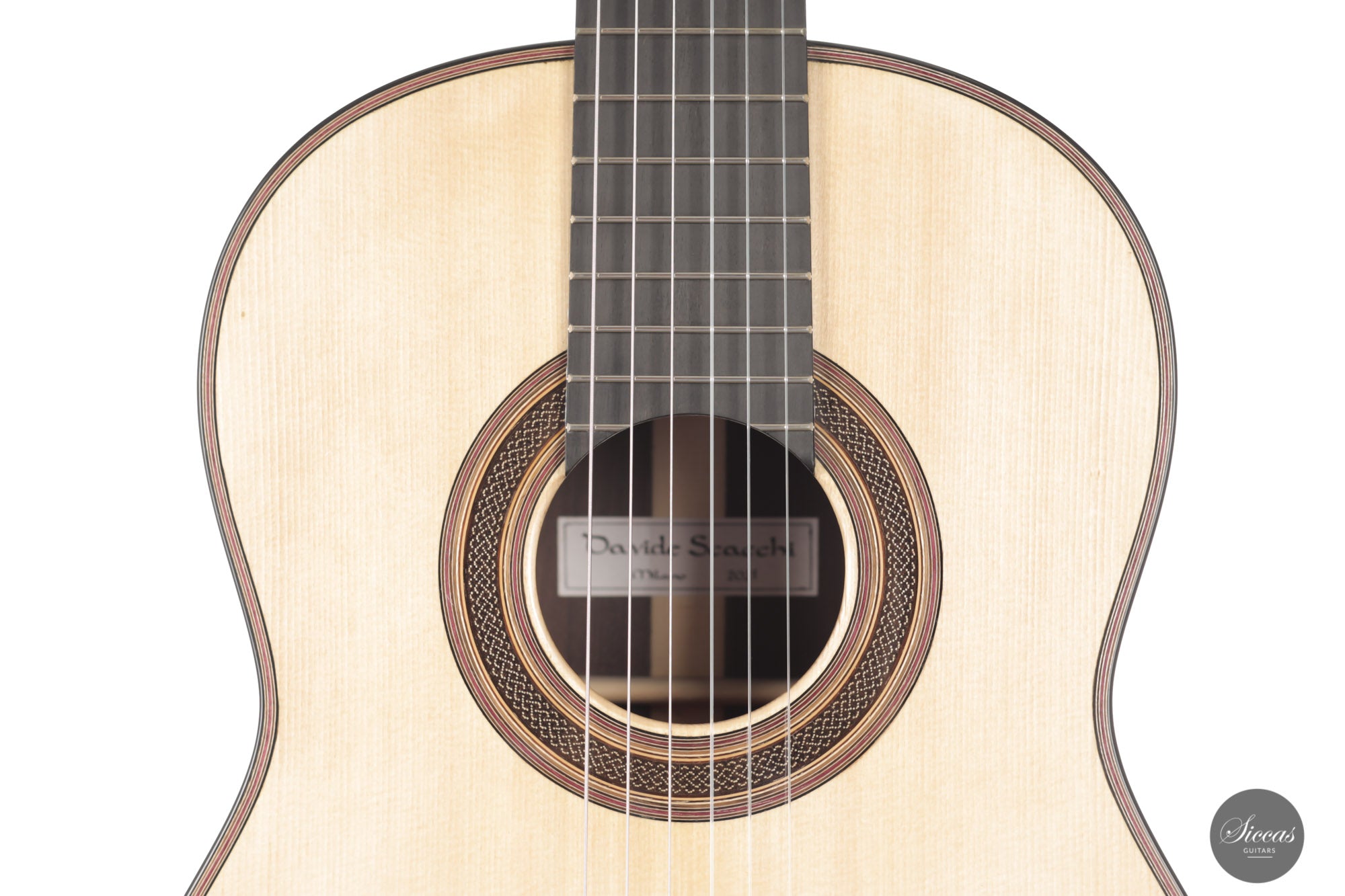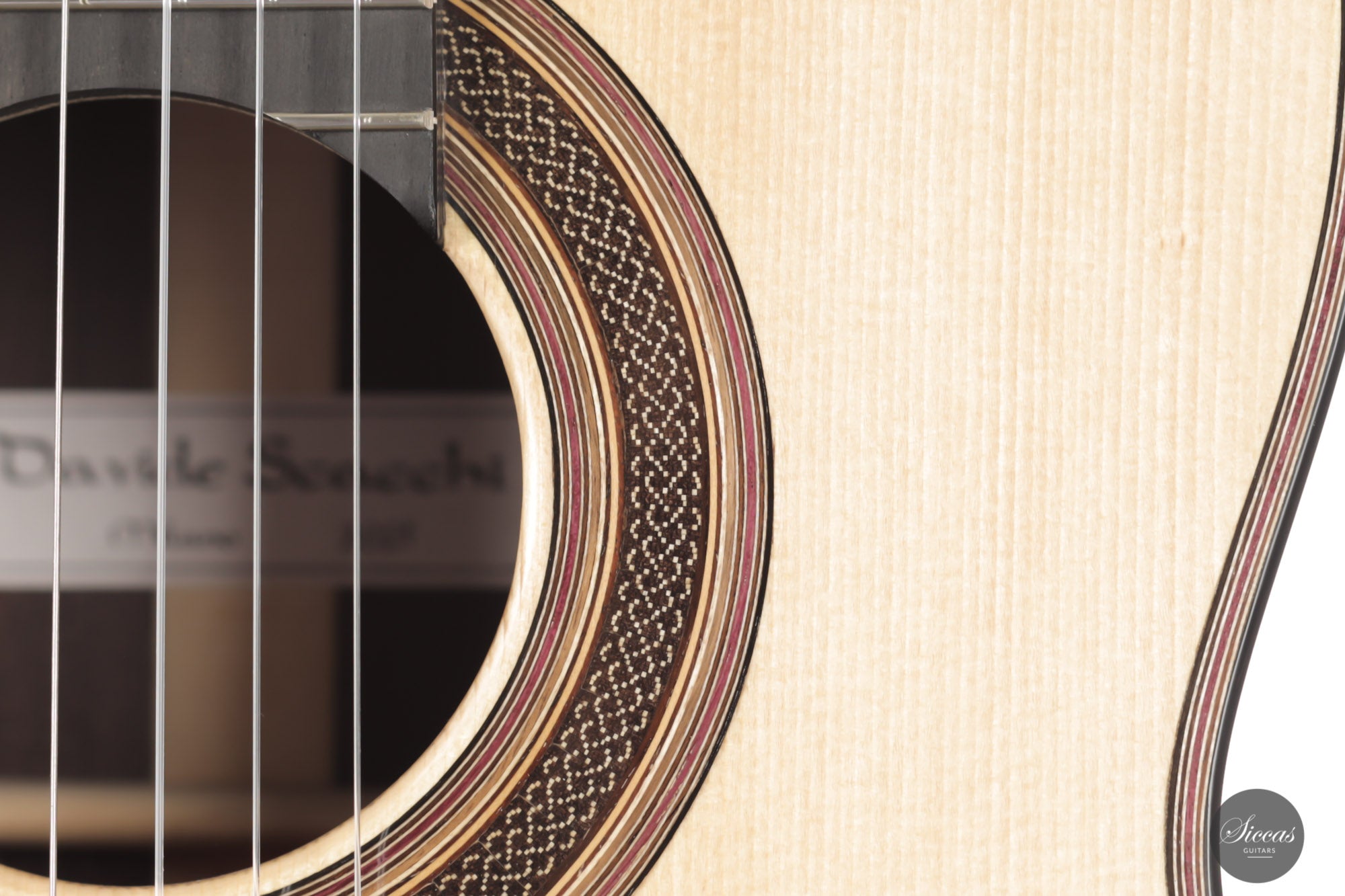 What a pleasure to receive a second guitar from Davide, and once again, chapeau! It is a lovely instrument with rich marquetry and great attention to detail. This guitar has a deep and responsive sound, incredibly easy to play. The basses have a warm sound combined with precise and crystalline trebles. If you are looking for a guitar made by a highly talented luthier, still under the radar, this one is definitely a fantastic choice.