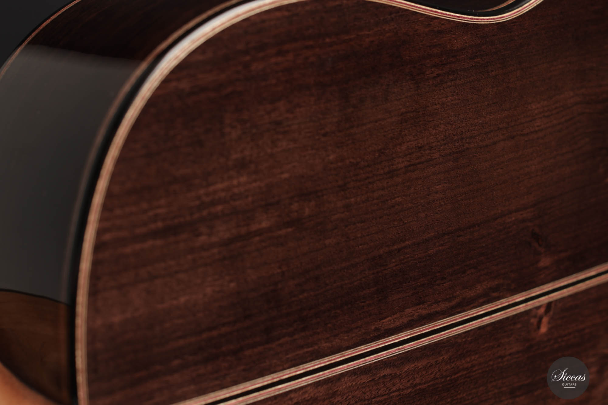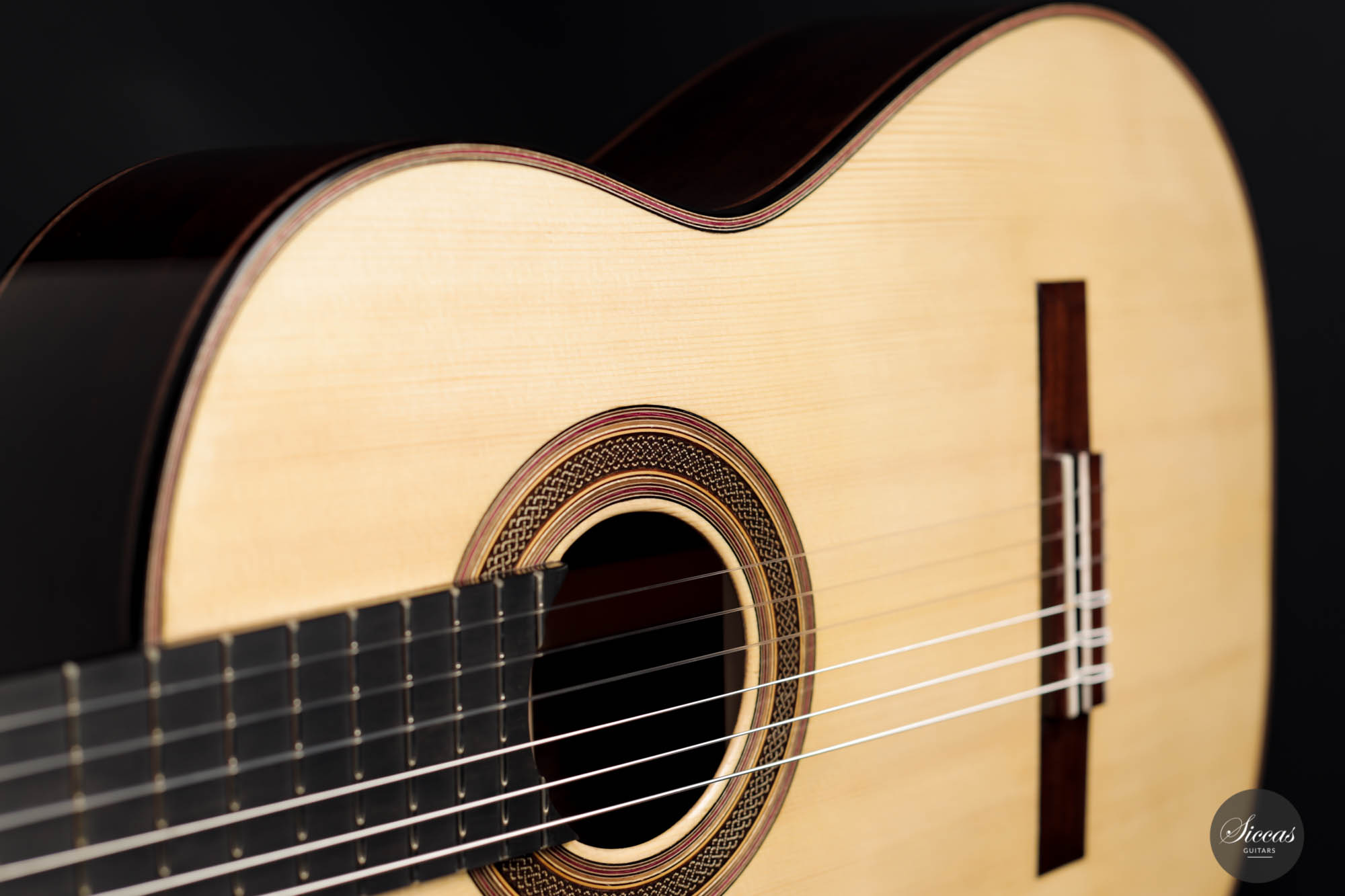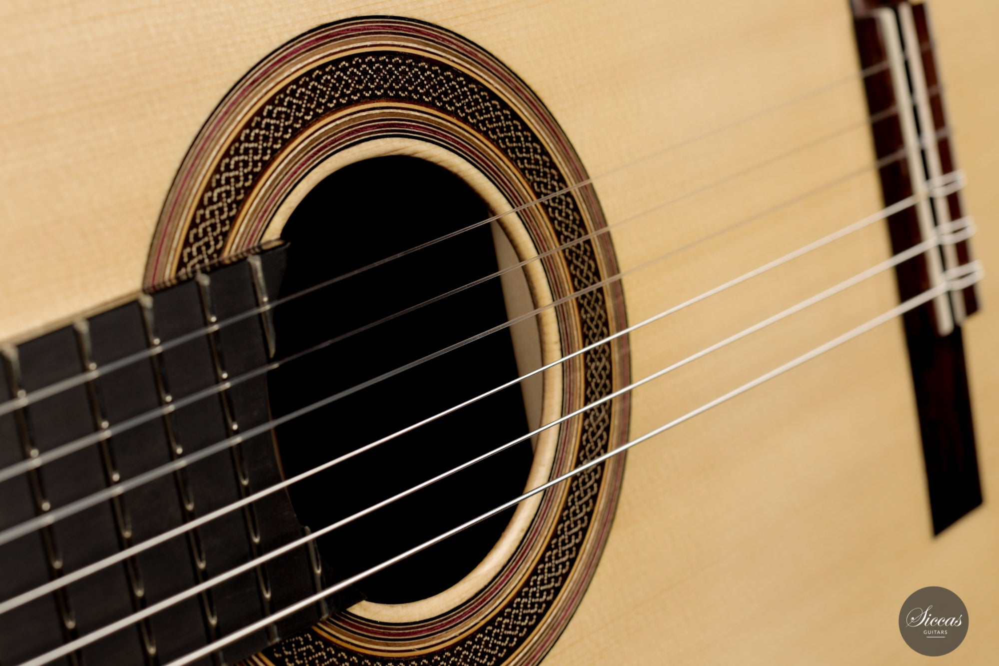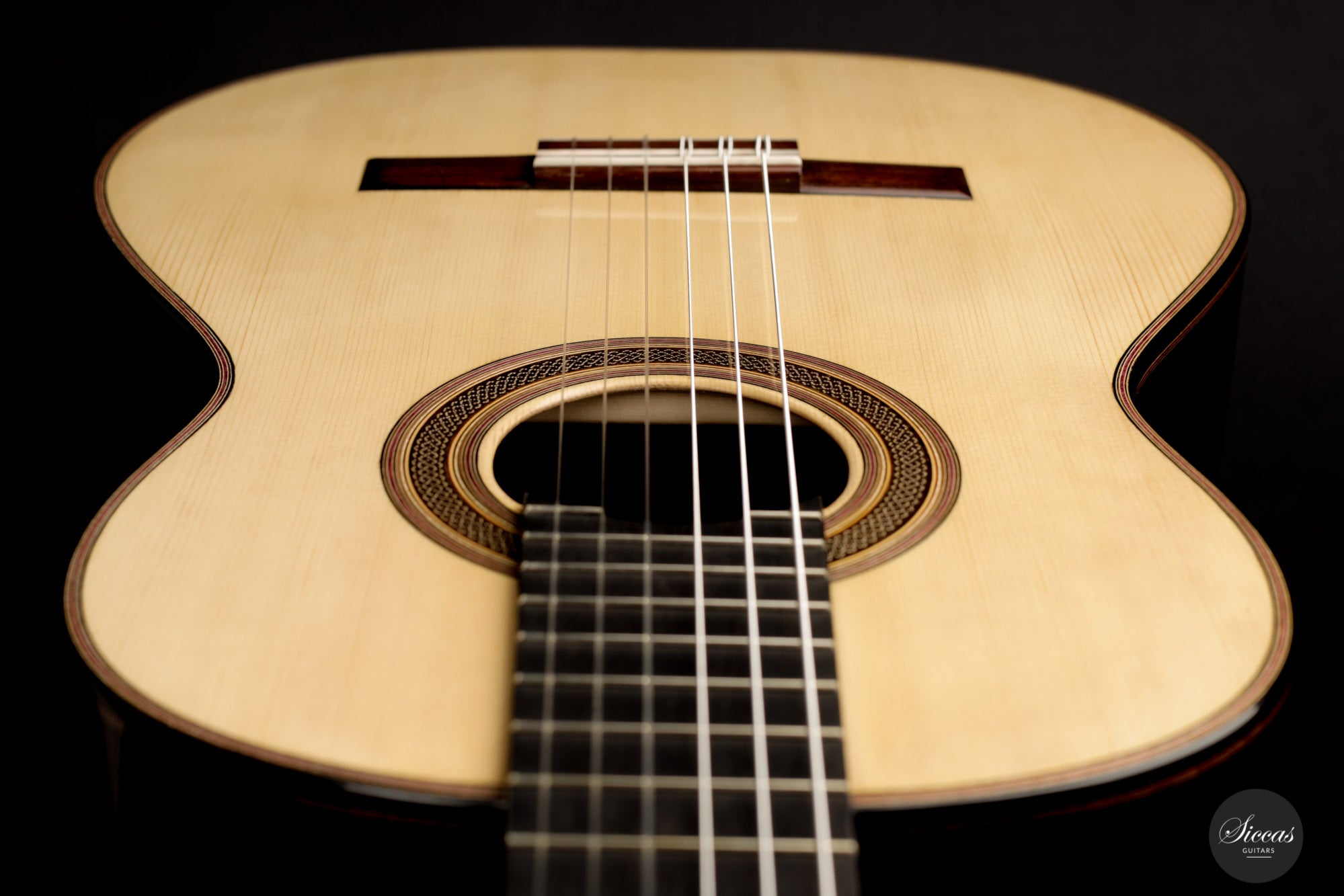 What a pleasure to receive a second guitar from Davide, and once again, chapeau! It is a lovely instrument with rich marquetry and great attention to detail. This guitar has a deep and responsive sound, incredibly easy to play. The basses have a warm sound combined with precise and crystalline trebles. If you are looking for a guitar made by a highly talented luthier, still under the radar, this one is definitely a fantastic choice.