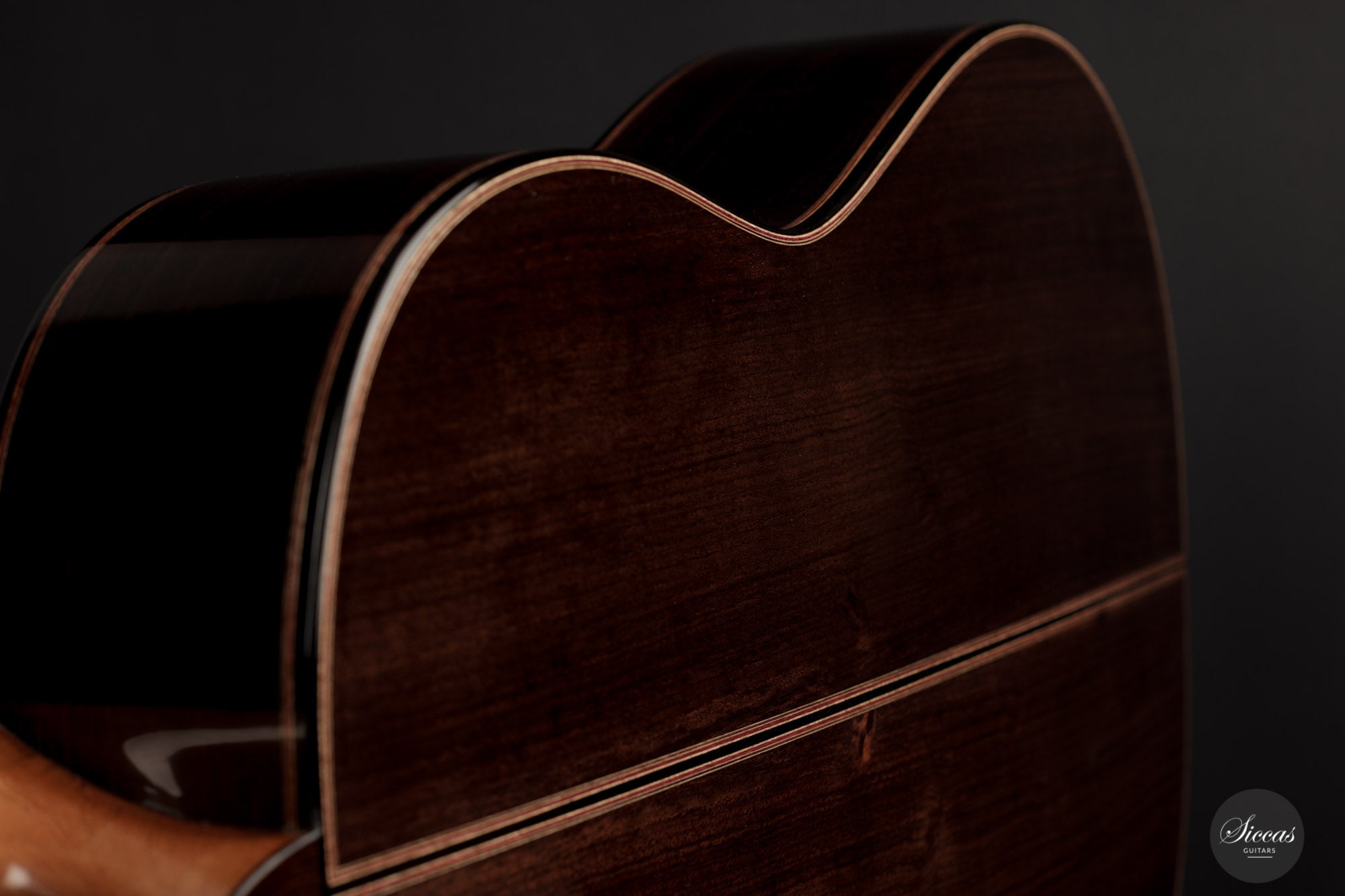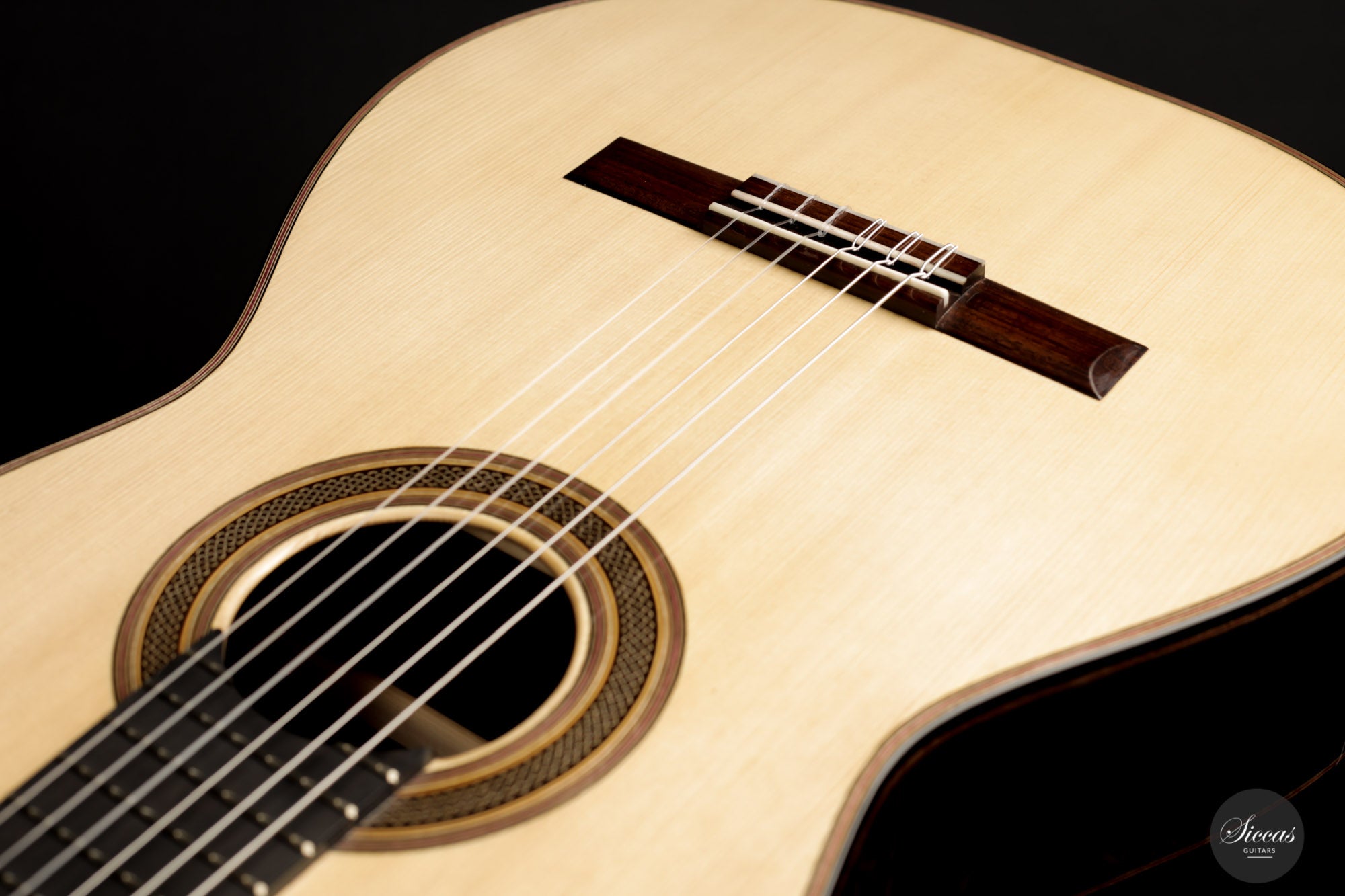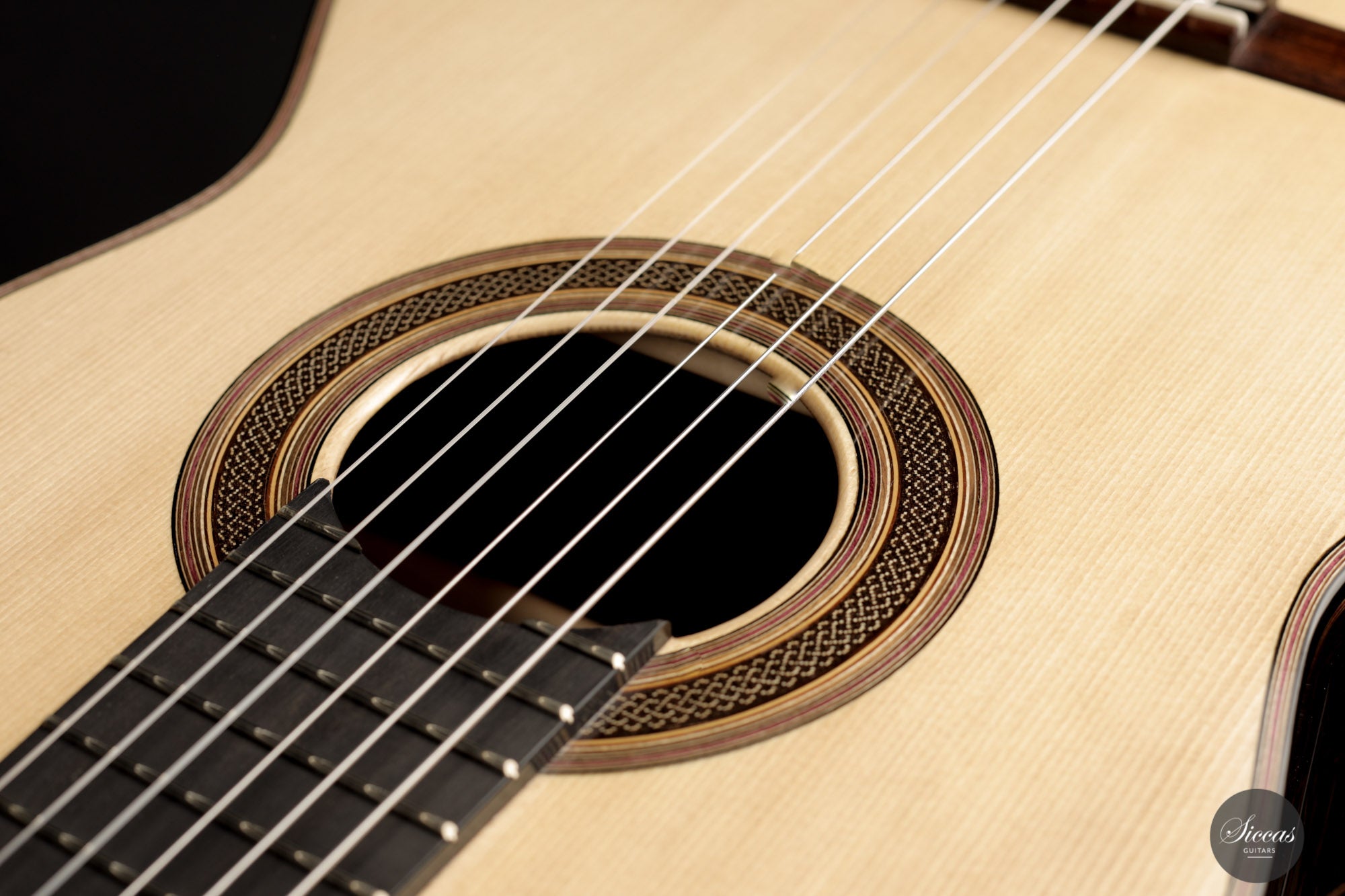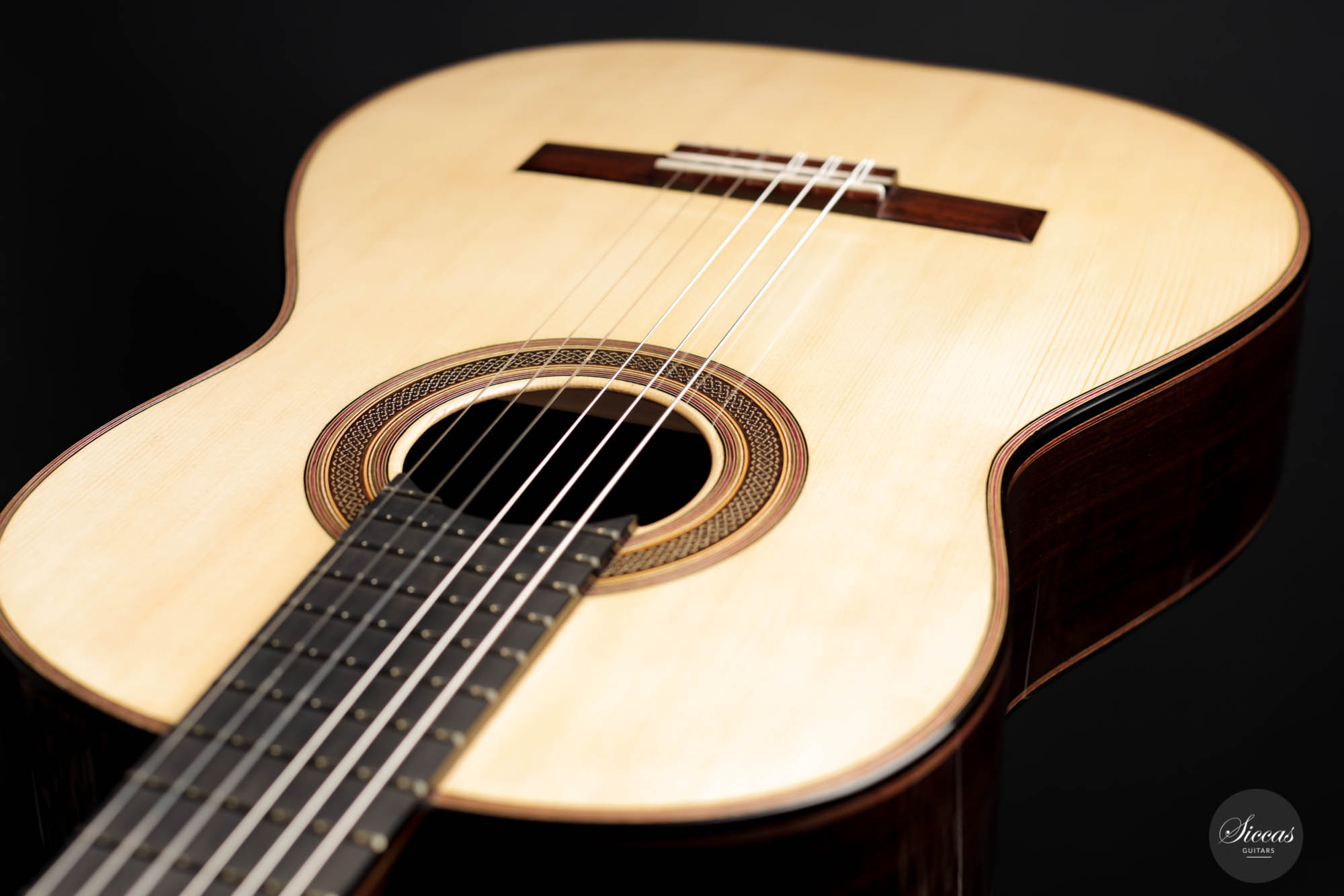 What a pleasure to receive a second guitar from Davide, and once again, chapeau! It is a lovely instrument with rich marquetry and great attention to detail. This guitar has a deep and responsive sound, incredibly easy to play. The basses have a warm sound combined with precise and crystalline trebles. If you are looking for a guitar made by a highly talented luthier, still under the radar, this one is definitely a fantastic choice.