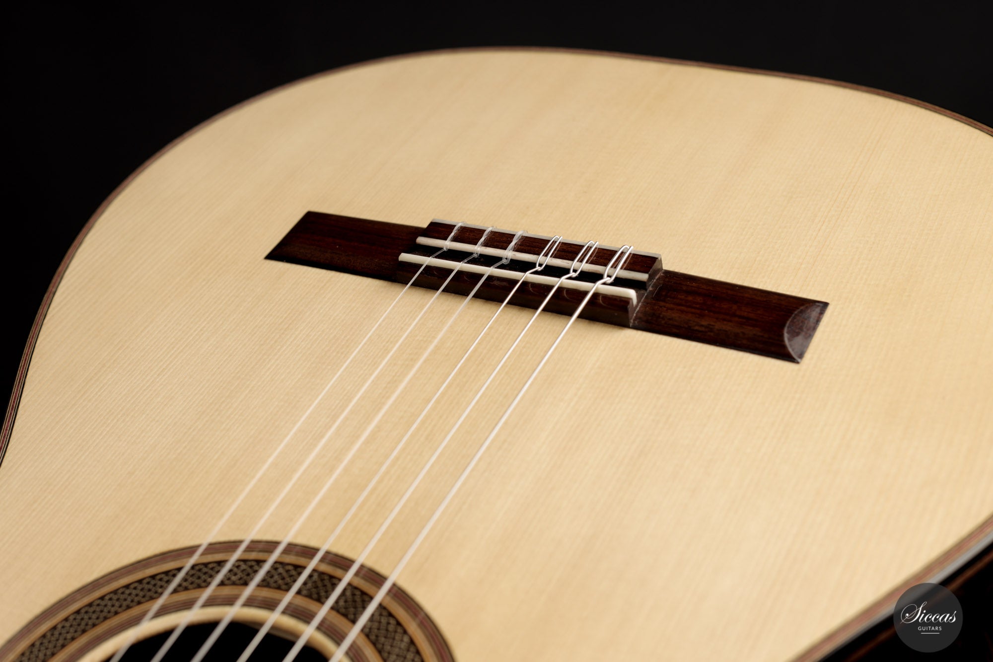 Die klassische Gitarre mit ihren weichen Nylonsaiten und ihrem charakteristischen Timbre ist zum Symbol der Kammermusik, der spanischen Tradition und des Konzertrepertoires geworden. Ihre moderne Form prägte Antonio de Torres im 19. Jahrhundert, indem er den Standard für Korpus, Fächerbeleistung und die 65-Zentimeter-Mensur setzte, die bis heute verwendet werden. Instrumente dieser Kategorie eröffnen eine reiche Palette von den feinen romantischen Miniaturen Tárregas bis zu den majestätischen Konzerten Rodrigos. Hier finden Sie Gitarren, die historische Kontinuität bewahren und zugleich zu neuen Interpretationen anregen.