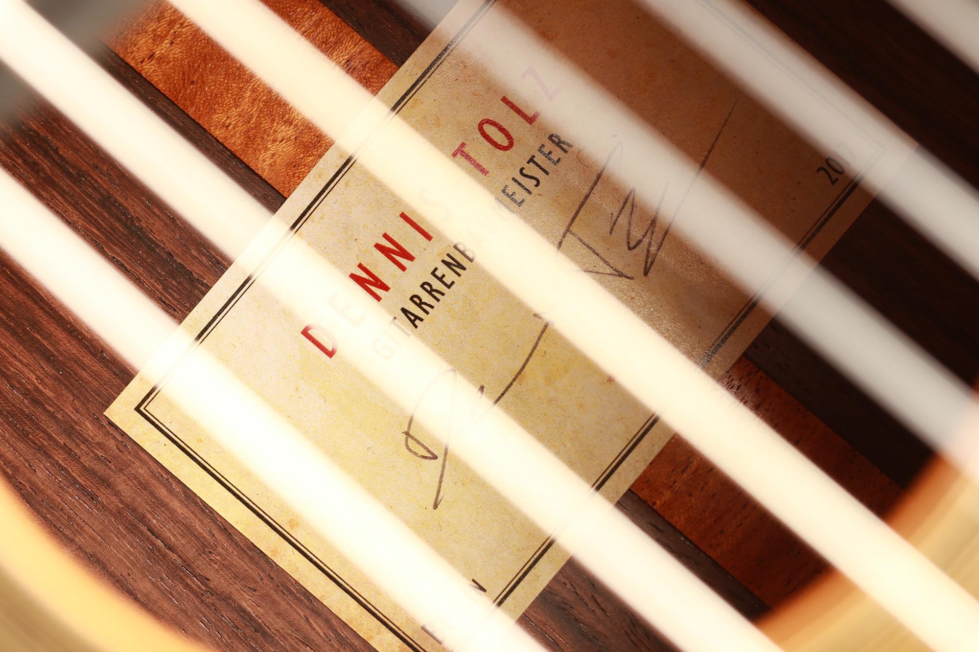 Dennis Tolz ist einer der interessantesten deutschen Gitarrenbauer seiner Generation. Er hat seinen Sitz in Berlin, das heute eine außergewöhnlich aktive Stadt im Bereich des Gitarrenbaus ist. Seine Gitarren sind sehr interessant konstruiert und verbinden modernes Klangvolumen und Spielbarkeit mit einem üppigen traditionellen Klang. Dazu nutzt Dennis Tolz die Technik, die er von Gernot Wagner übernommen hat: die Nomex-Doppeldecke, gepaart mit einer eher traditionellen Fächerbeleistung. Seine Gitarren sind daher reaktionsschnell, leicht zu spielen, vielgestaltig in den Klangfarben, artikuliert und kraftvoll. Dennis Tolz ist international bekannt für seine außergewöhnlichen Gitarren und fantastische Künstler wie David Russell, Rene Izquierdo und Giampaolo Bandini spielen seine Instrumente regelmäßig im Konzert. Die Wartezeit für eine neue Gitarre von Dennis Tolz beträgt ca. 7 Jahre.