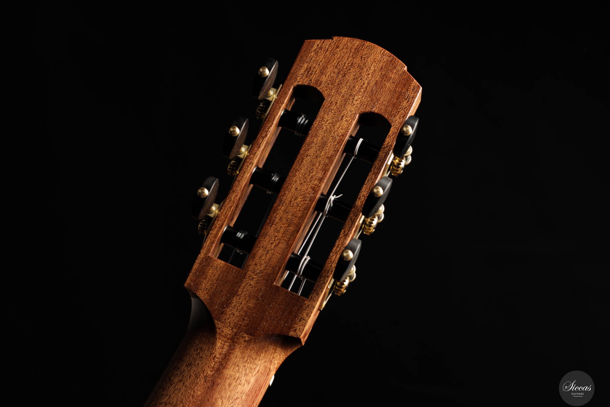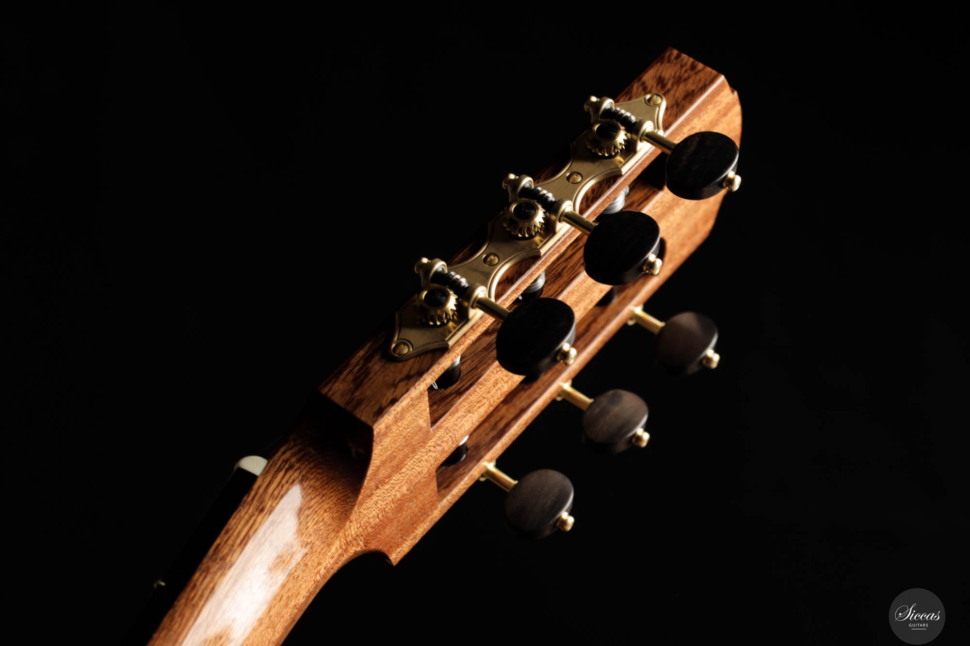 Das Spielerlebnis auf dieser Dennis Tolz Gitarre ist nichts weniger als außergewöhnlich. Der Hals wurde ergonomisch gestaltet, was das Spielen mühelos macht, was bei langen Übungseinheiten oder Aufführungen ein wesentlicher Vorteil ist. Die Einstellung der Gitarre bietet extremen Komfort, sodass sich der Gitarrist voll und ganz auf seine Musik konzentrieren kann. Zu den innovativen Merkmalen gehört auch das WaveGuide, ein kleiner aus Kohlefaser gefertigter Tornavoz, der genial in das Design integriert ist. Dieses Feature zielt darauf ab, eine Hauptluftresonanz unter E (82Hz) zu erreichen, wodurch der Klang der Gitarre mit einem höheren fundamentalen Toninhalt bereichert wird.