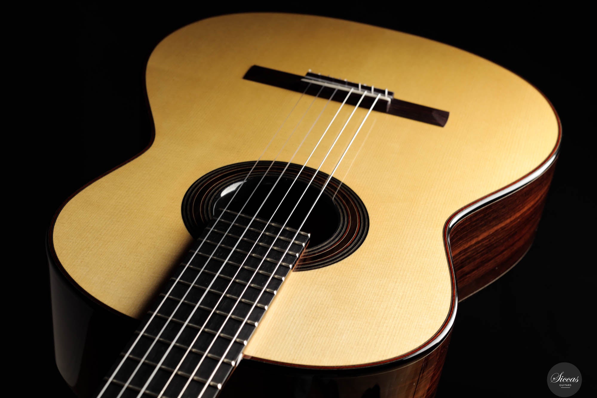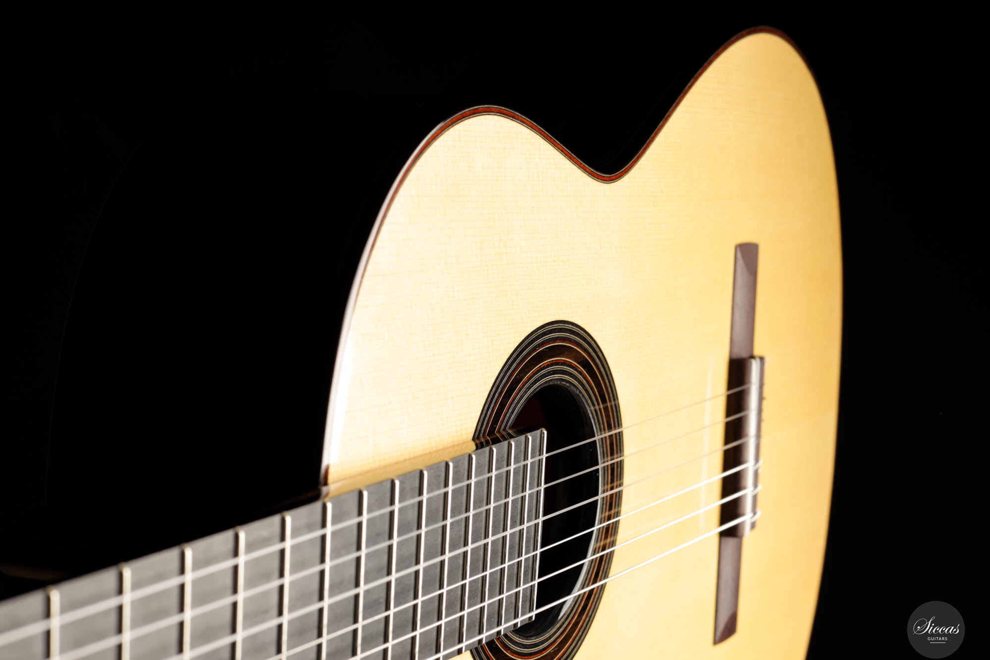 Die klassische Gitarre mit ihren weichen Nylonsaiten und ihrem charakteristischen Timbre ist zum Symbol der Kammermusik, der spanischen Tradition und des Konzertrepertoires geworden. Ihre moderne Form prägte Antonio de Torres im 19. Jahrhundert, indem er den Standard für Korpus, Fächerbeleistung und die 65-Zentimeter-Mensur setzte, die bis heute verwendet werden. Instrumente dieser Kategorie eröffnen eine reiche Palette von den feinen romantischen Miniaturen Tárregas bis zu den majestätischen Konzerten Rodrigos. Hier finden Sie Gitarren, die historische Kontinuität bewahren und zugleich zu neuen Interpretationen anregen.