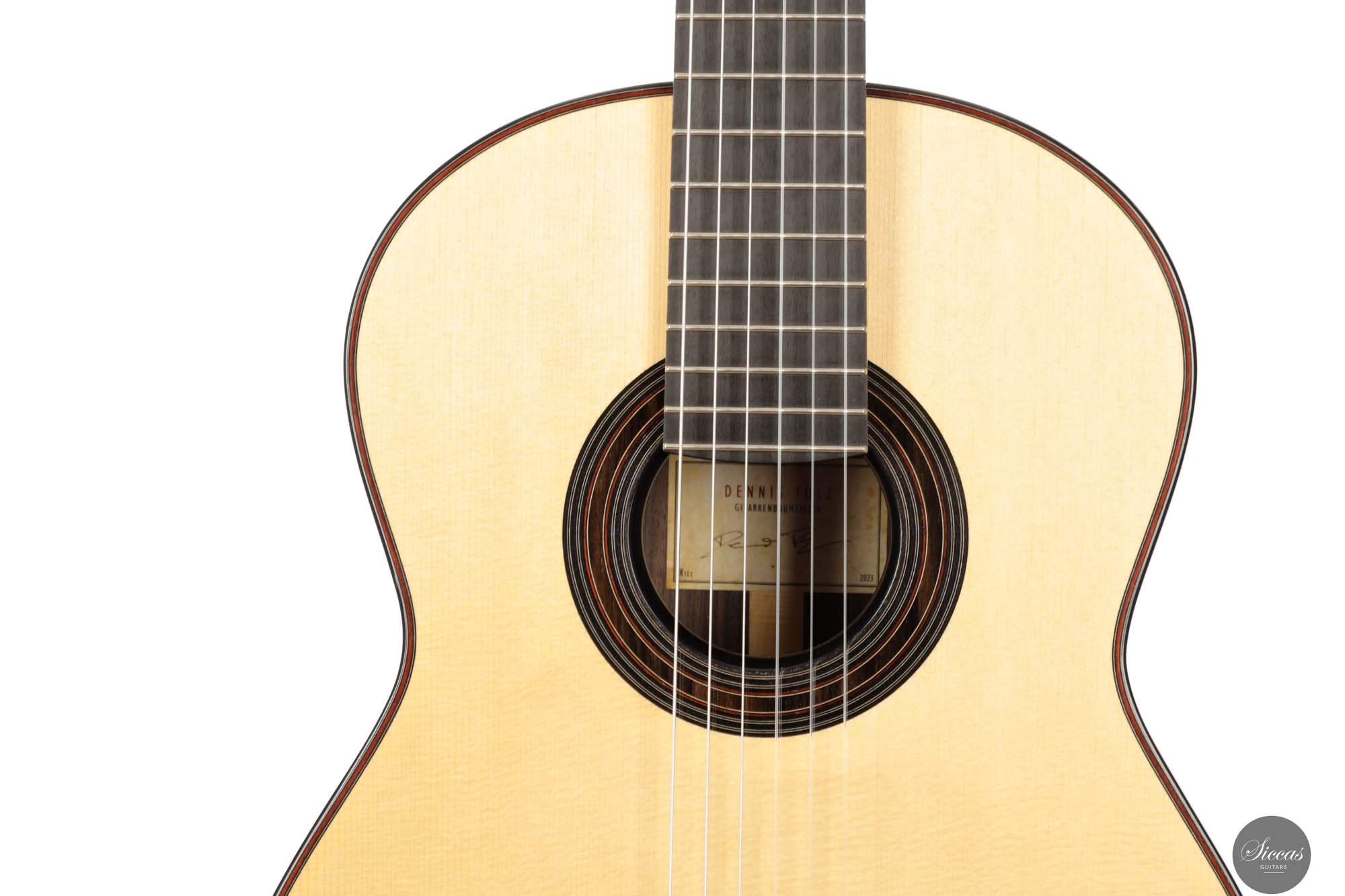 Dennis Tolz ist einer der bekanntesten deutschen Gitarrenbauer seiner Generation. Dennis‘ Gitarren verbinden modernes Klangvolumen und Spielbarkeit mit einem üppigen traditionellen Klang. Dazu nutzt Dennis die Technik, die er von Gernot Wagner übernommen hat: die Nomex-Doubletop-Decke, gepaart mit einer eher traditionellen Fächerbeleistung. Seine Gitarren sind daher reaktionsschnell, leicht zu spielen, vielgestaltig in den Klangfarben, artikuliert und kraftvoll. Dennis Tolz ist international bekannt für seine außergewöhnlichen Gitarren und fantastische Künstler wie David Russell, Rene Izquierdo und Giampaolo Bandini spielen seine Instrumente regelmäßig im Konzert. Die Wartezeit auf eine neue Dennis Tolz-Gitarre beträgt mittlerweile 9 Jahre.