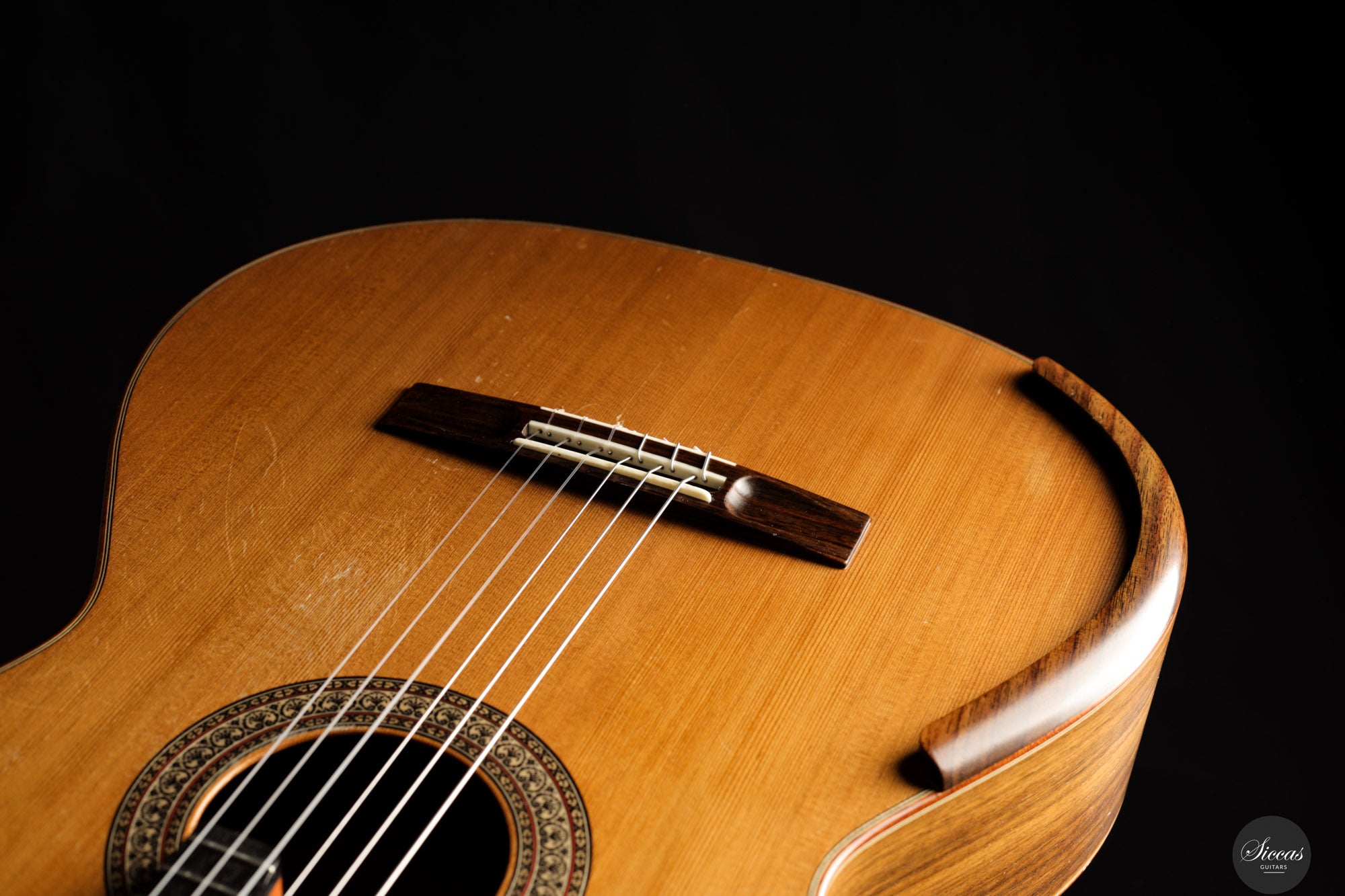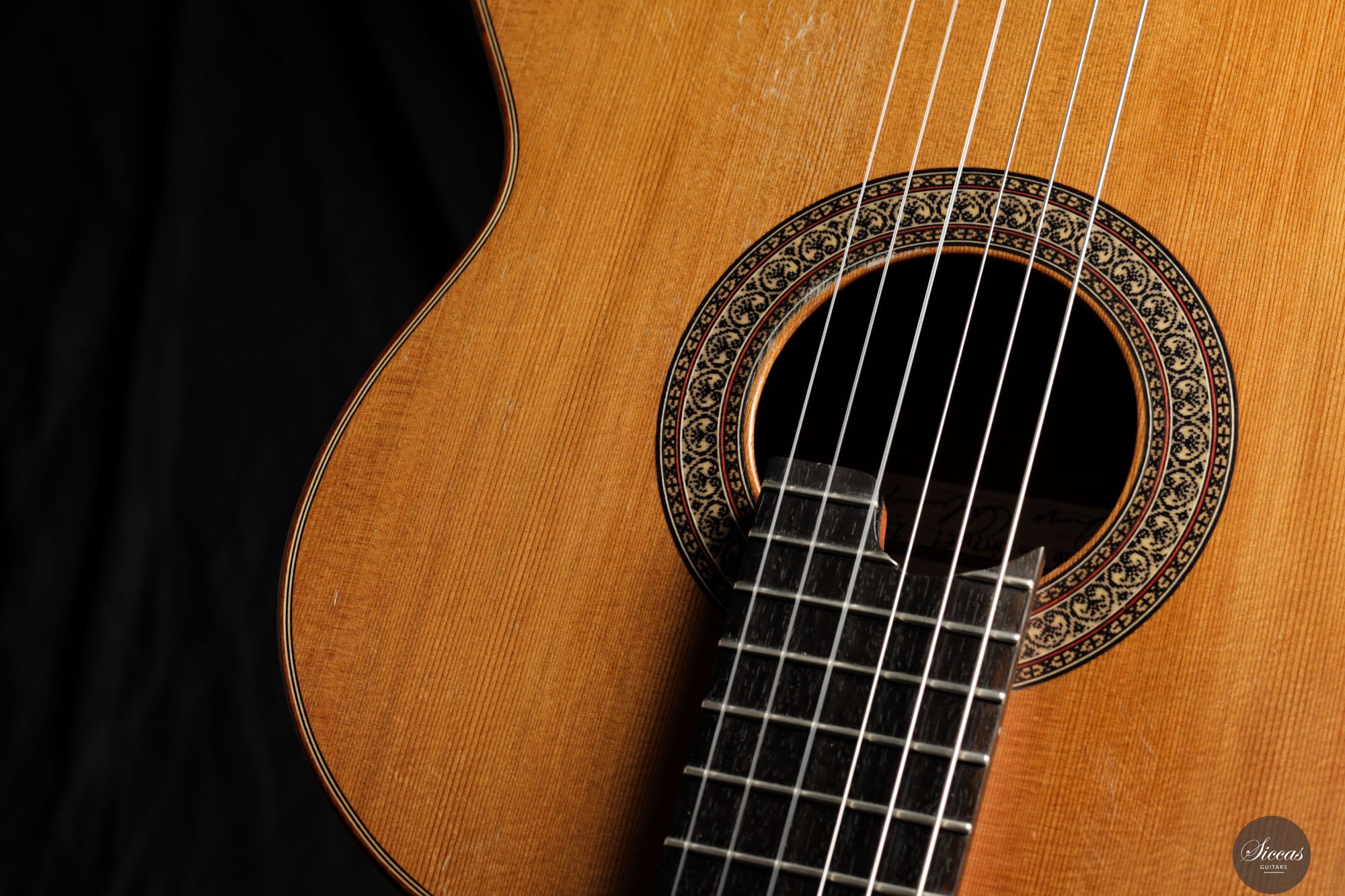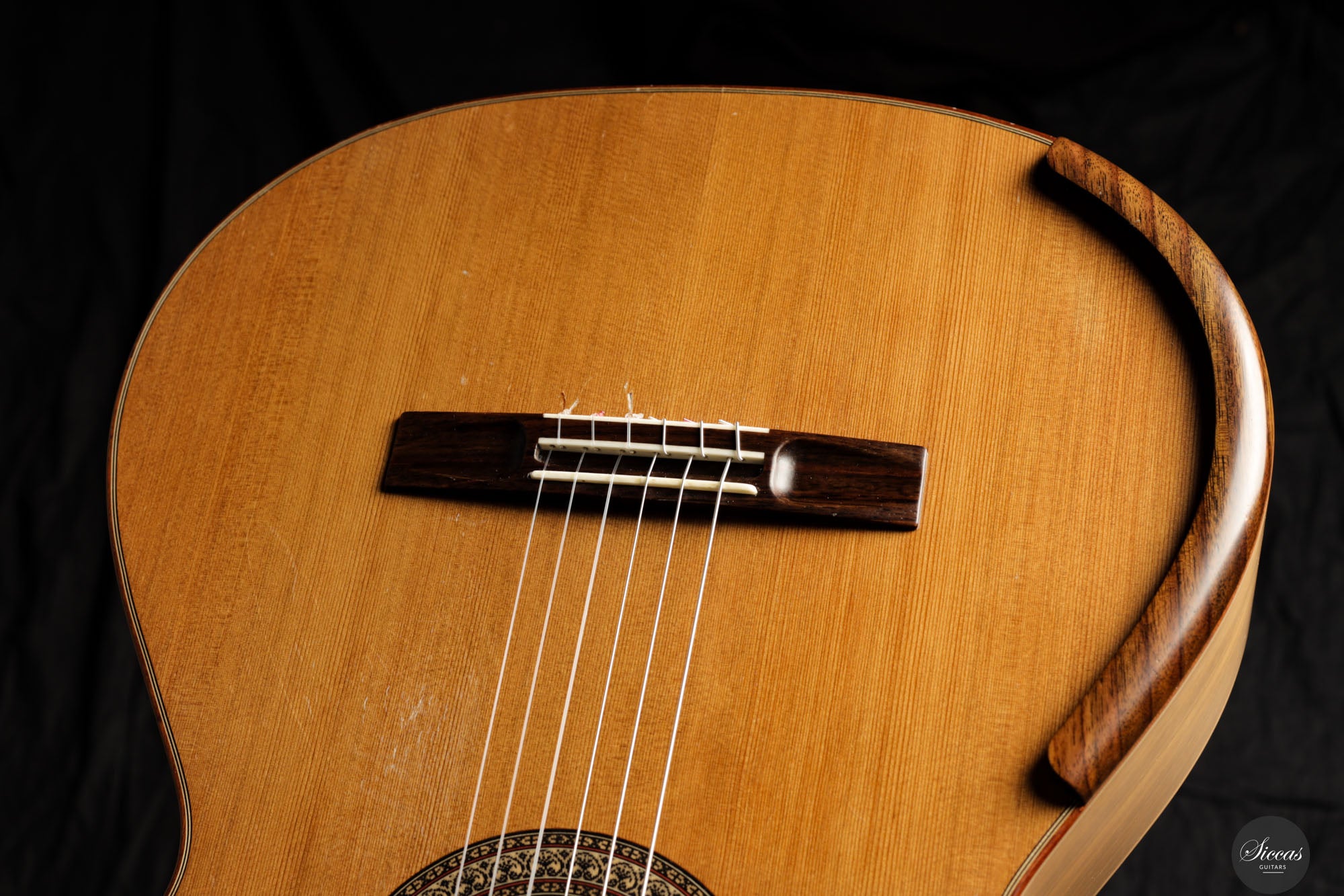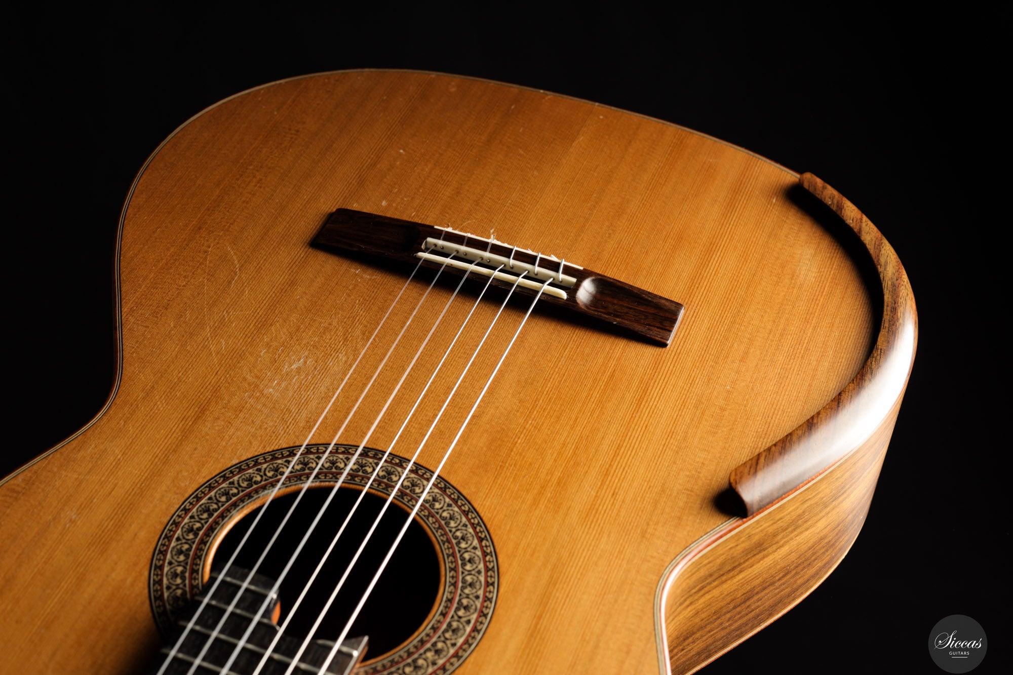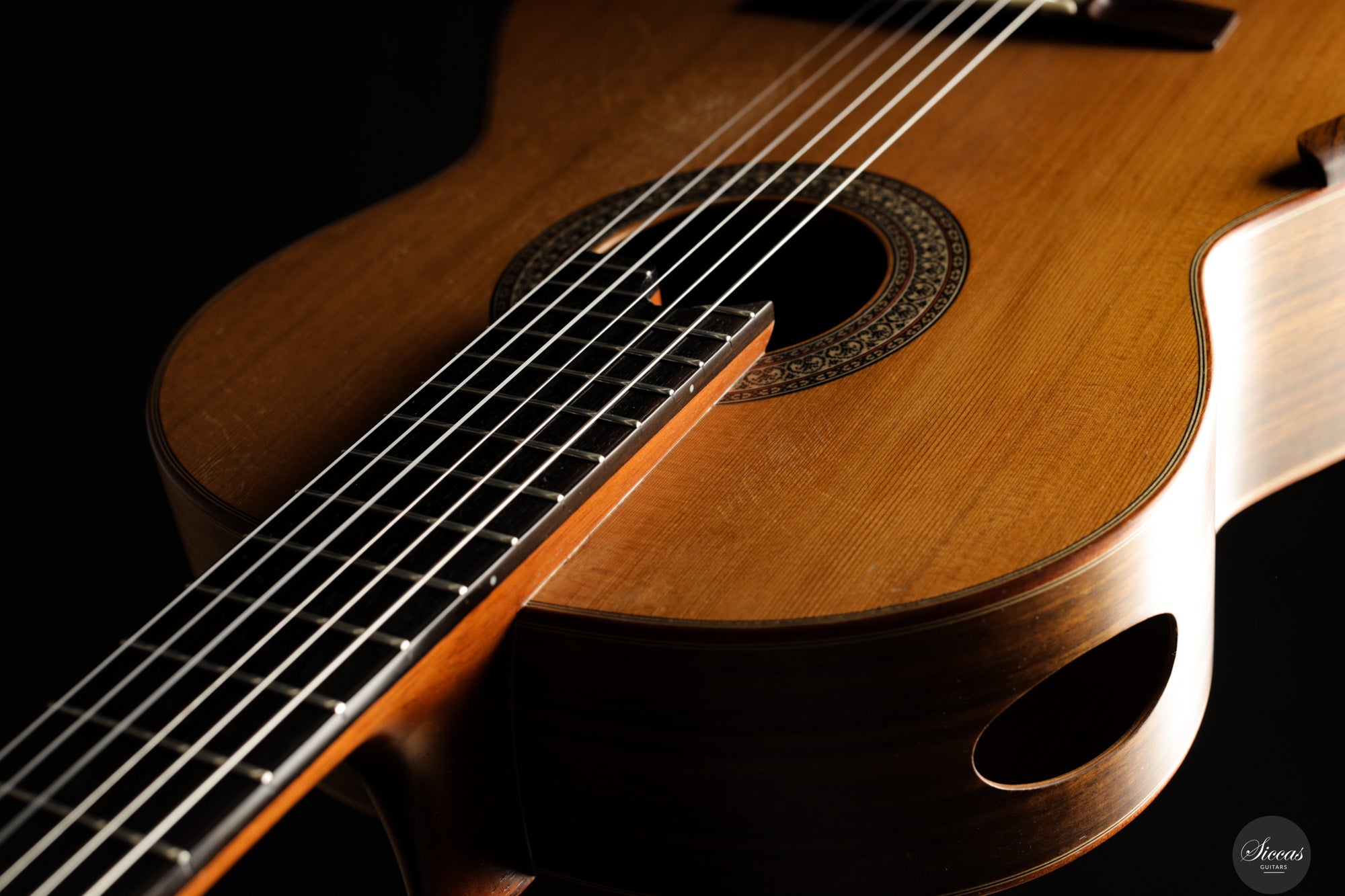 Diese Konzertgitarre von Diego Valencia aus dem Jahr 2016 verkörpert sein ausgereiftes Konzept des lattice-Baus und richtet sich an Spieler, die gezielt nach starker Projektion und klarer Stimmtrennung suchen. Die Zederndecke in Kombination mit Zargen und Boden aus Pau Ferro ergibt ein Klangbild mit schneller Ansprache und kräftigem Grundton, ergänzt durch eine charakteristische Wärme. Die Gitarre bietet eine hohe klangliche Tragfähigkeit, ohne dabei an Kontrolle einzubüßen, und eignet sich gleichermaßen für solistische wie kammermusikalische Kontexte. Die Ausgewogenheit über das gesamte Register hinweg und ein fokussiertes Sustain unterstützen sowohl kantables Spiel als auch präzise Polyphonie.