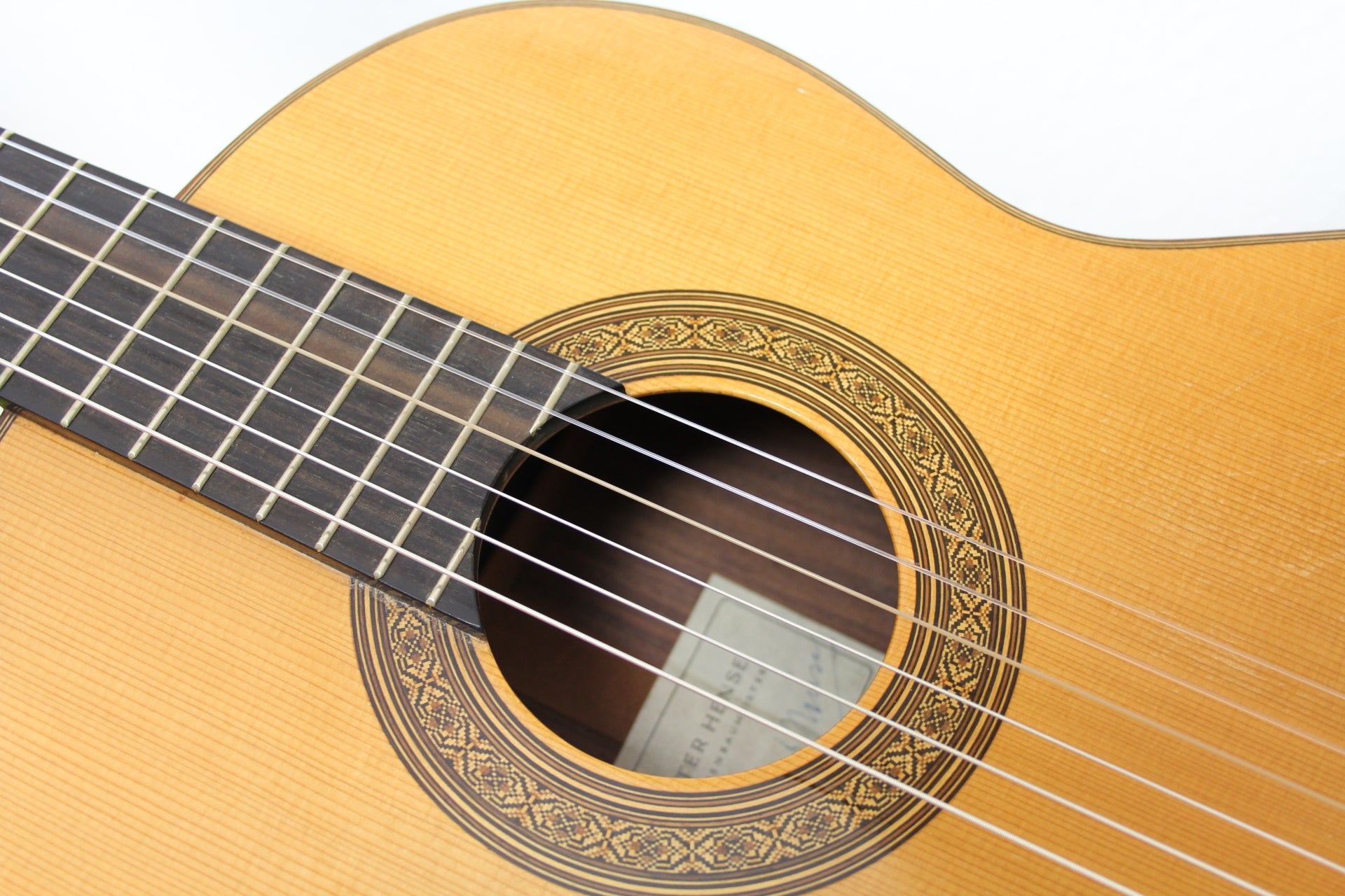 Dieter Hense was born in 1929 and started in the early 1960's to build guitars. He worked sometimes for Hopf but worked mainly for his own in his workshop. This guitar was made in 1975 and is in remarkable condition. The finish seems to be original and the guitar has no cracks. Of course there are some signs visible. The machine heads are not original and were replaced by single machine heads.