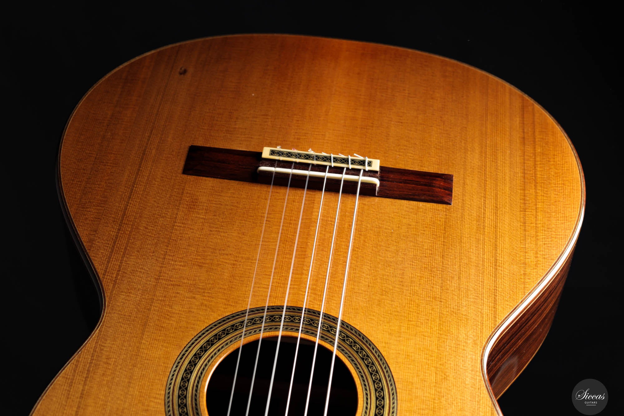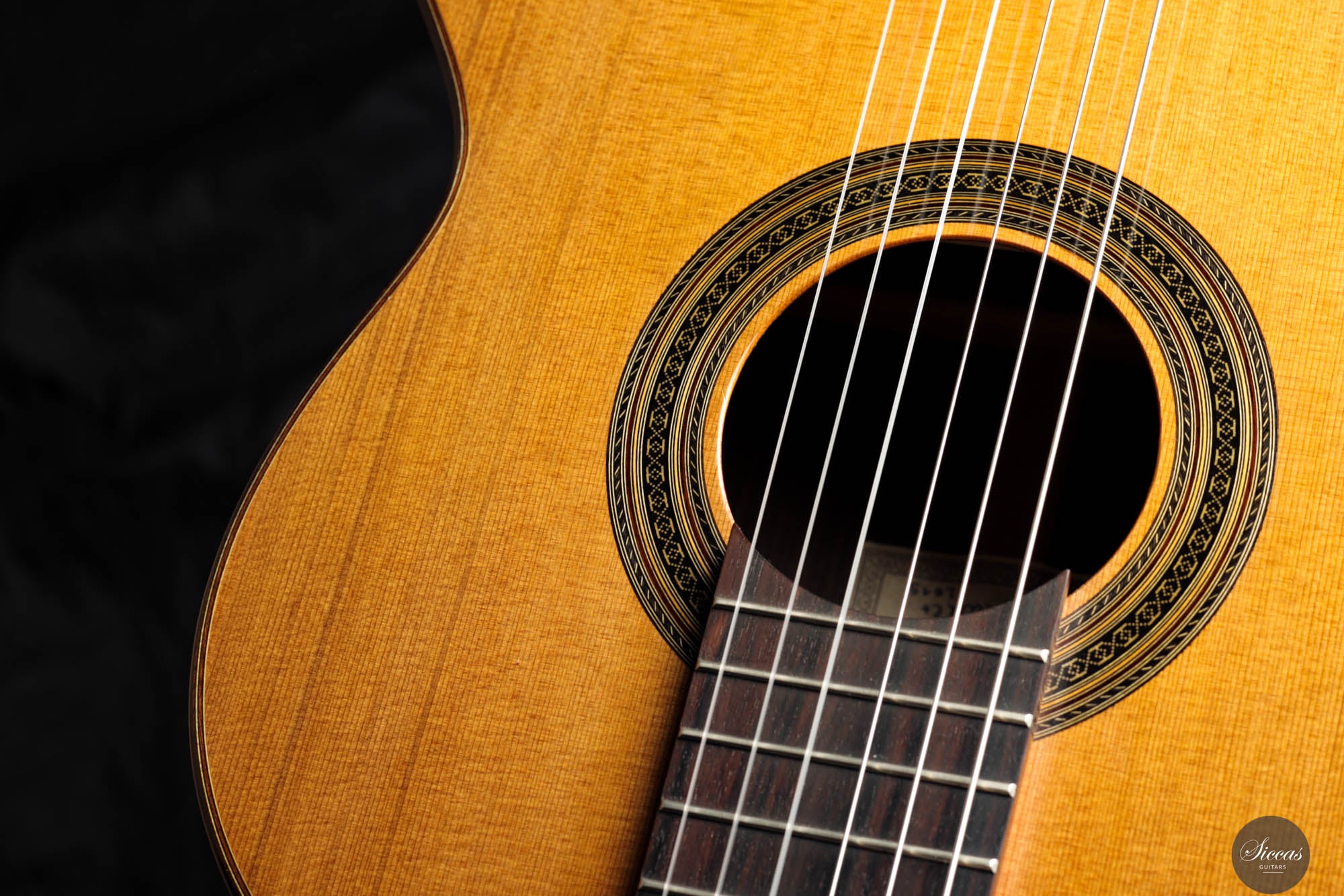 Diese Gitarre befindet sich trotz ihres fast zehnjährigen Alters in hervorragendem Zustand. Sie weist lediglich normale Gebrauchsspuren auf, die für ihr Alter minimal sind. Die Schellackpolitur am Boden ist leicht abgenutzt, und an der Decke befindet sich eine kleine Delle, die fachmännisch überprüft wurde und keine Beeinträchtigung der strukturellen Integrität darstellt. Eine wunderbare Konzertgitarre, die durch Komfort, Klangfülle und Tonqualität gleichermaßen überzeugt.