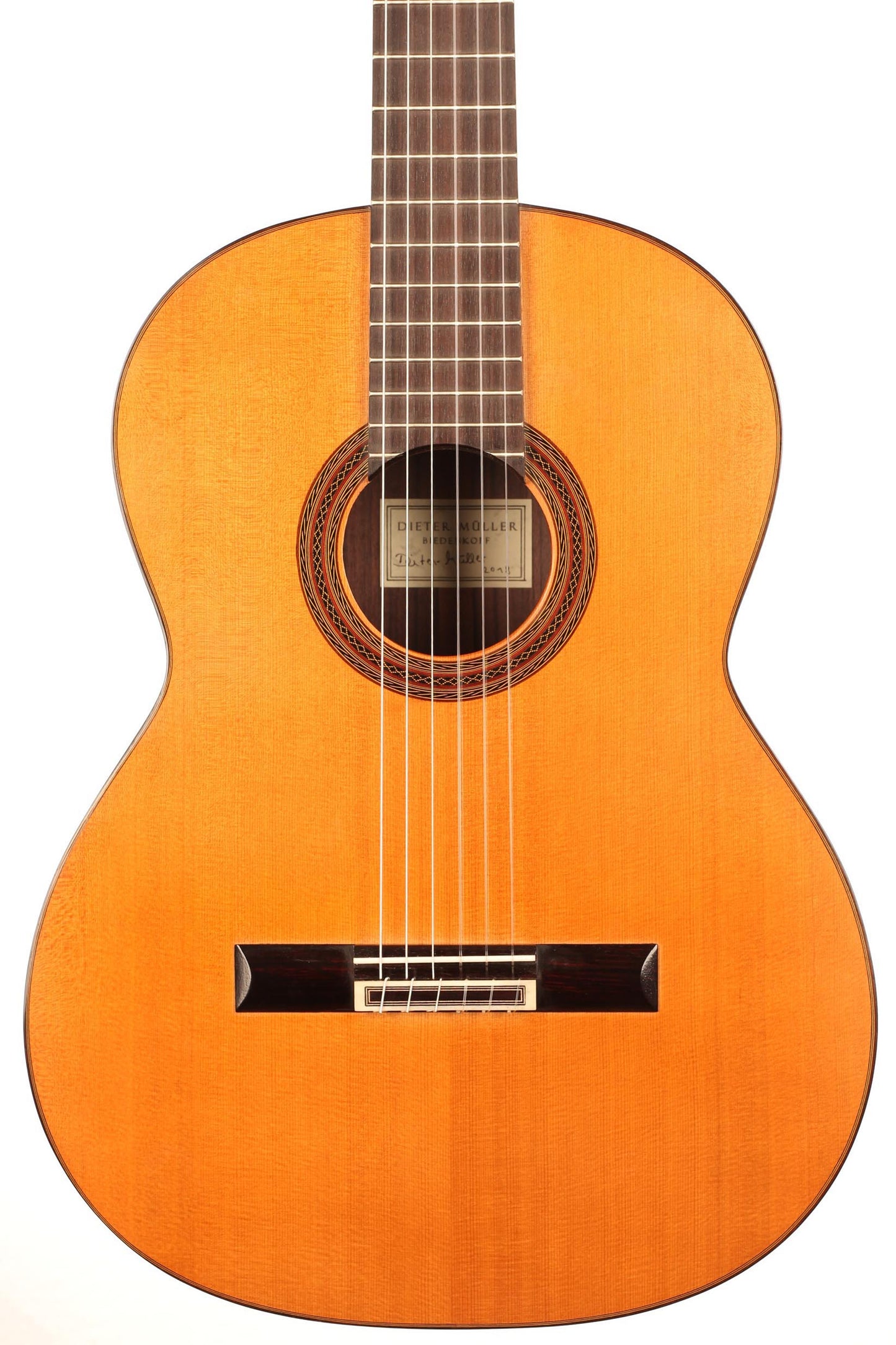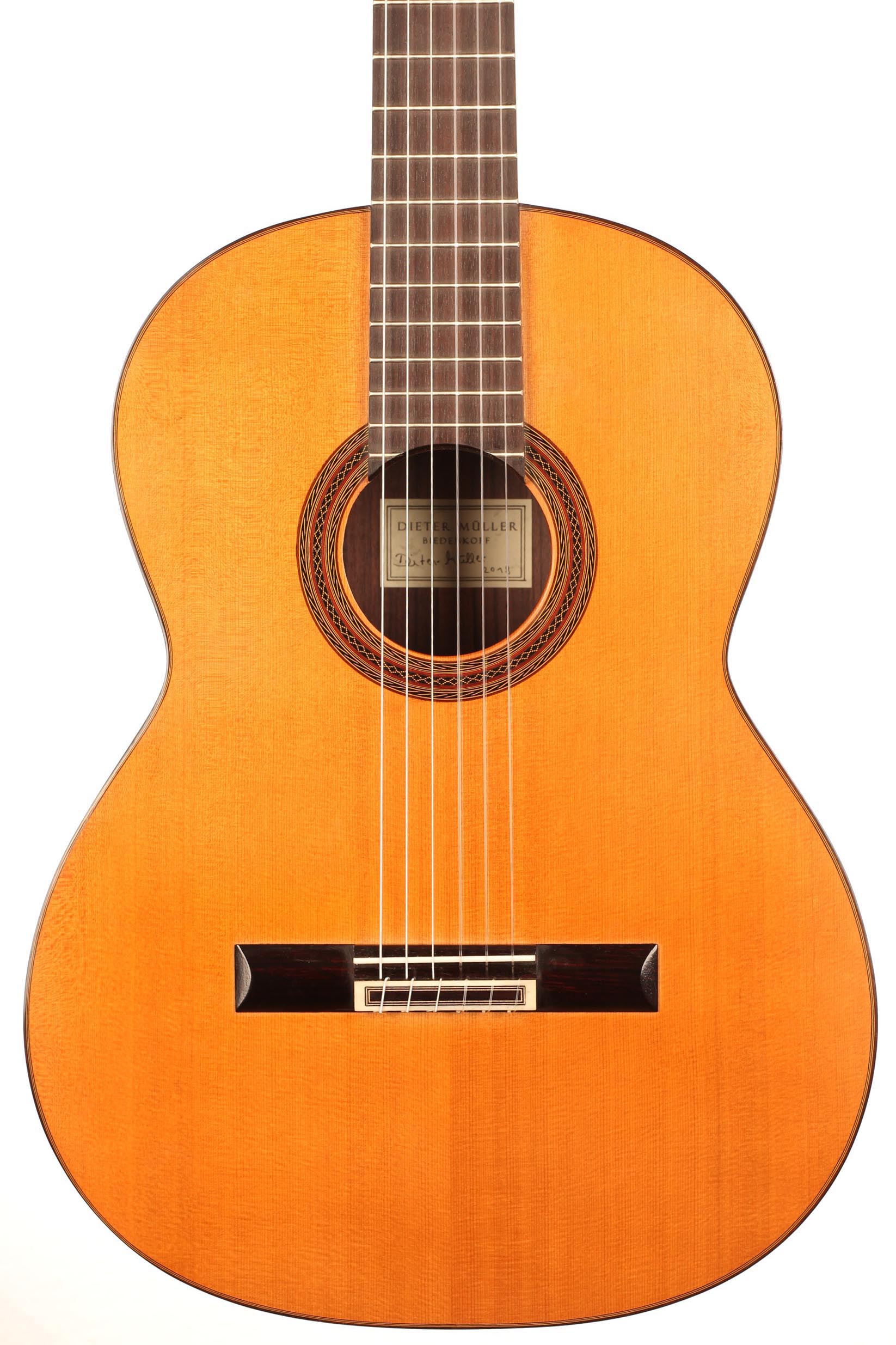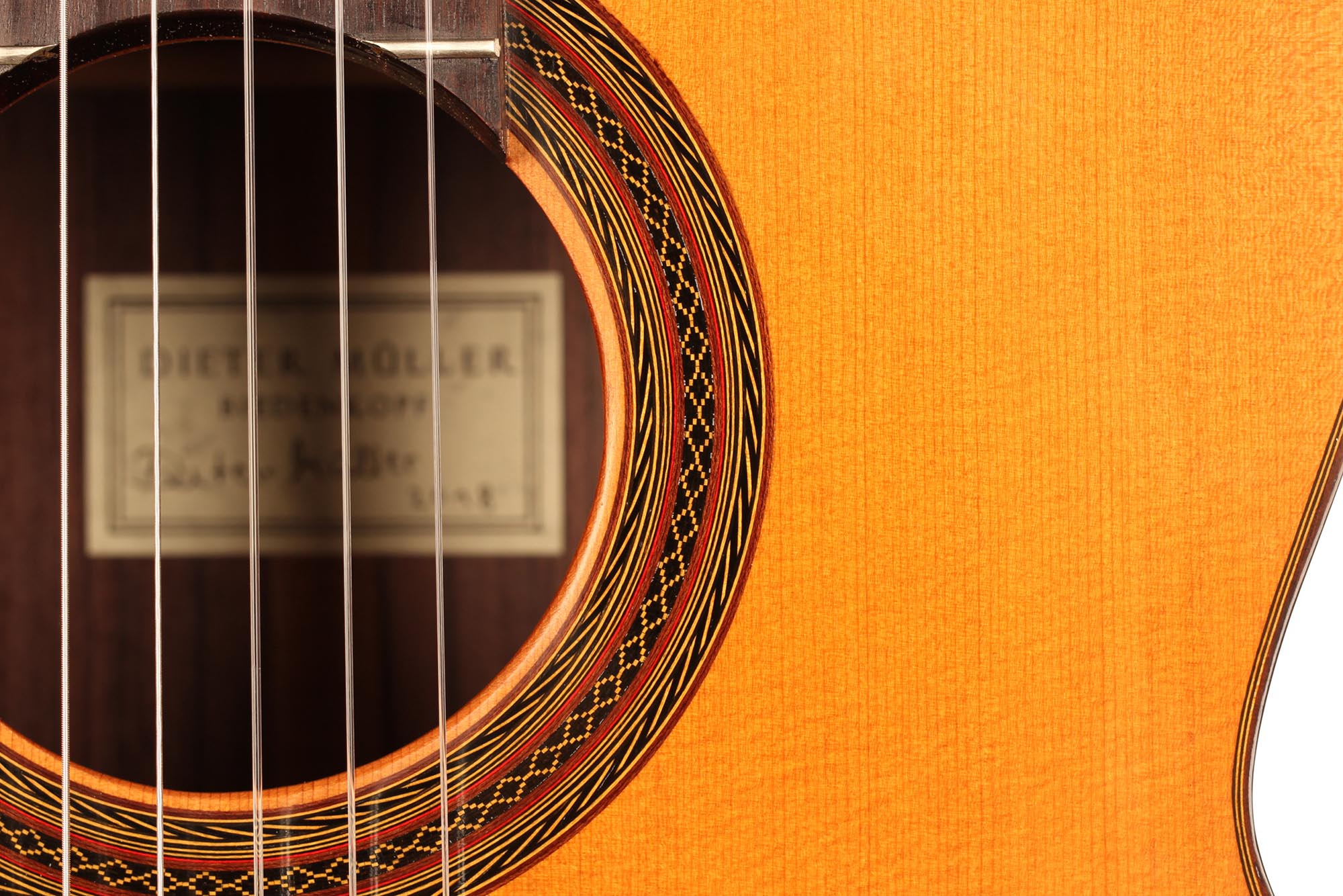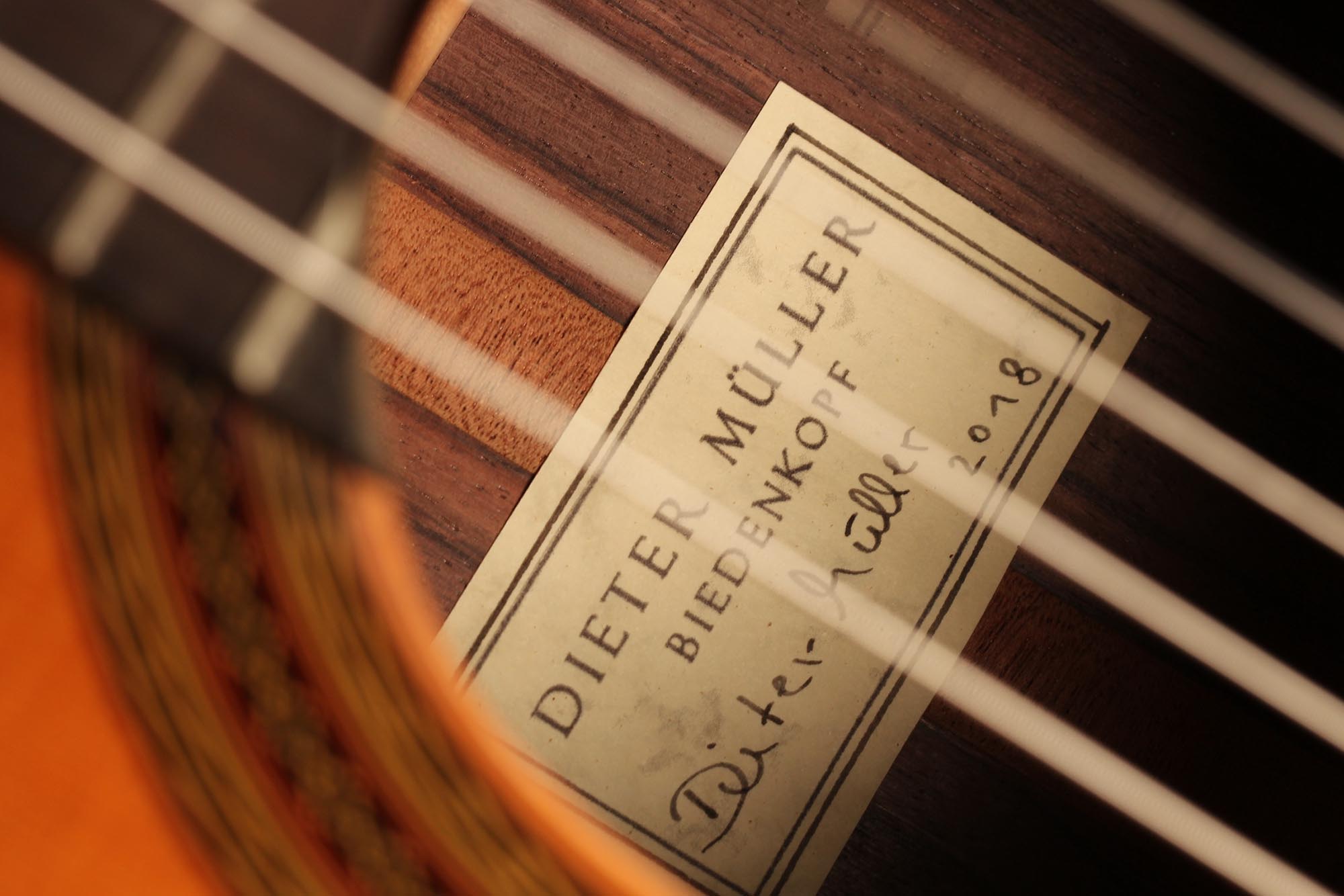 Dieter Müller ist ein angesehener deutscher Gitarrenbauer, dessen Instrumente wegen ihrer Klangqualität, Klangfarbe und großem Volumen besonders geschätzt werden. Diese Gitarre klingt fantastisch und entspricht einer Qualität auf höchstem Niveau. Sie hat einen spontanen direkten Ton, eine perfekte Spielbarkeit und eine sofortige Ansprache.