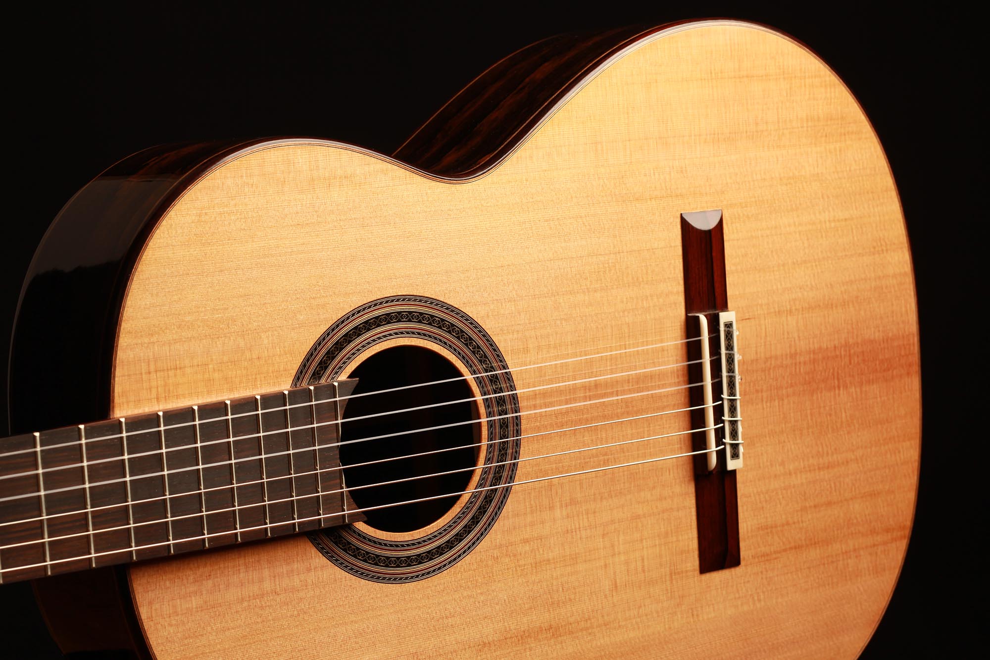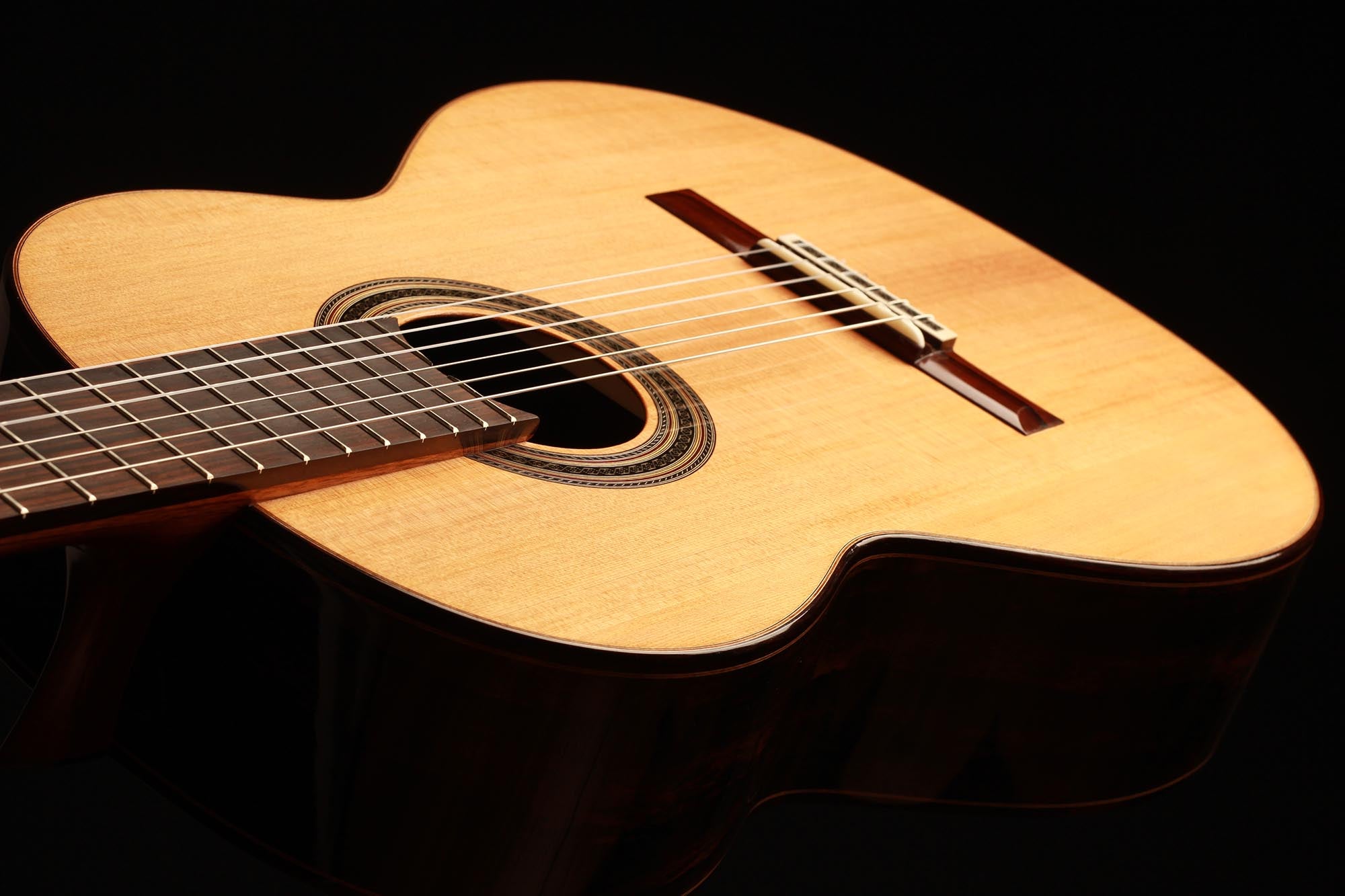 Die klassische Gitarre mit ihren weichen Nylonsaiten und ihrem charakteristischen Timbre ist zum Symbol der Kammermusik, der spanischen Tradition und des Konzertrepertoires geworden. Ihre moderne Form prägte Antonio de Torres im 19. Jahrhundert, indem er den Standard für Korpus, Fächerbeleistung und die 65-Zentimeter-Mensur setzte, die bis heute verwendet werden. Instrumente dieser Kategorie eröffnen eine reiche Palette von den feinen romantischen Miniaturen Tárregas bis zu den majestätischen Konzerten Rodrigos. Hier finden Sie Gitarren, die historische Kontinuität bewahren und zugleich zu neuen Interpretationen anregen.
