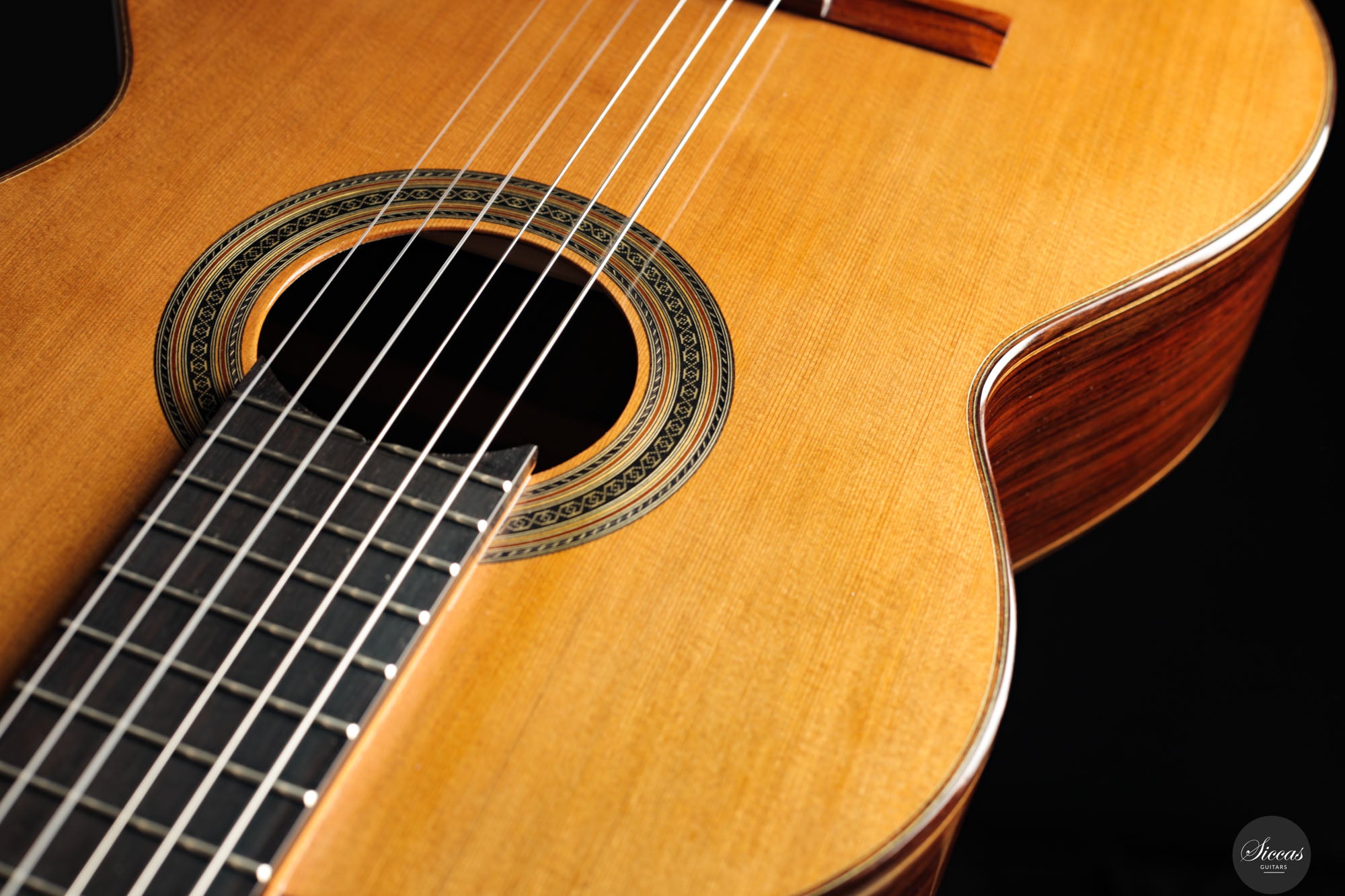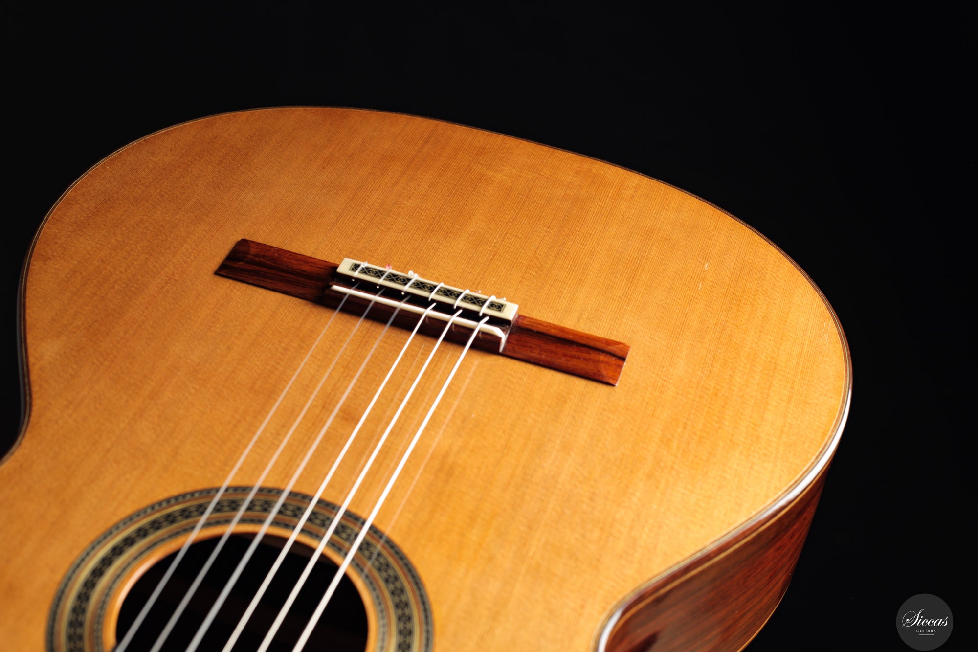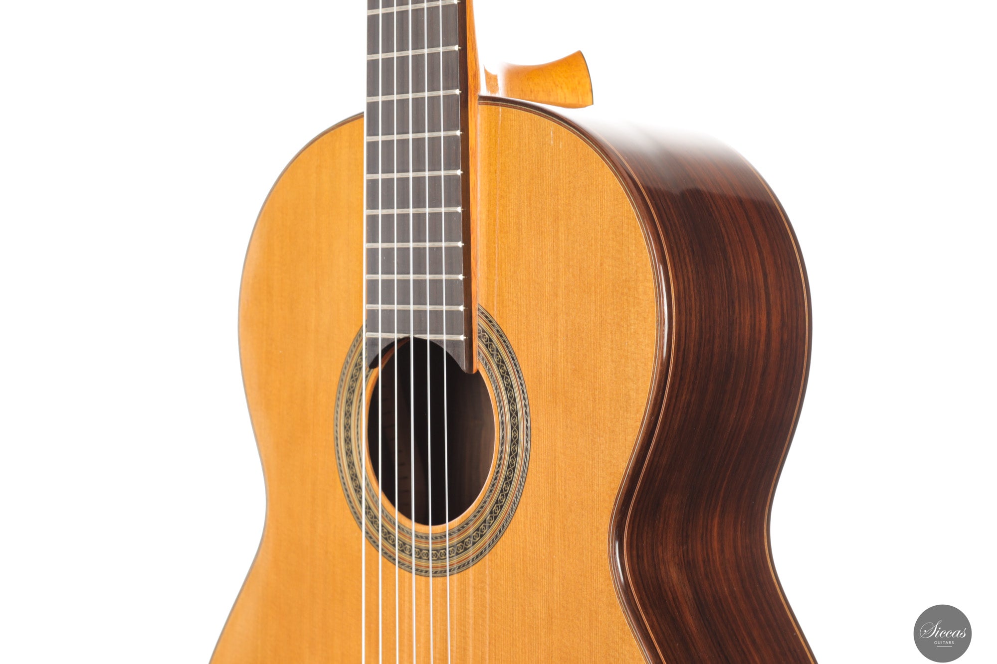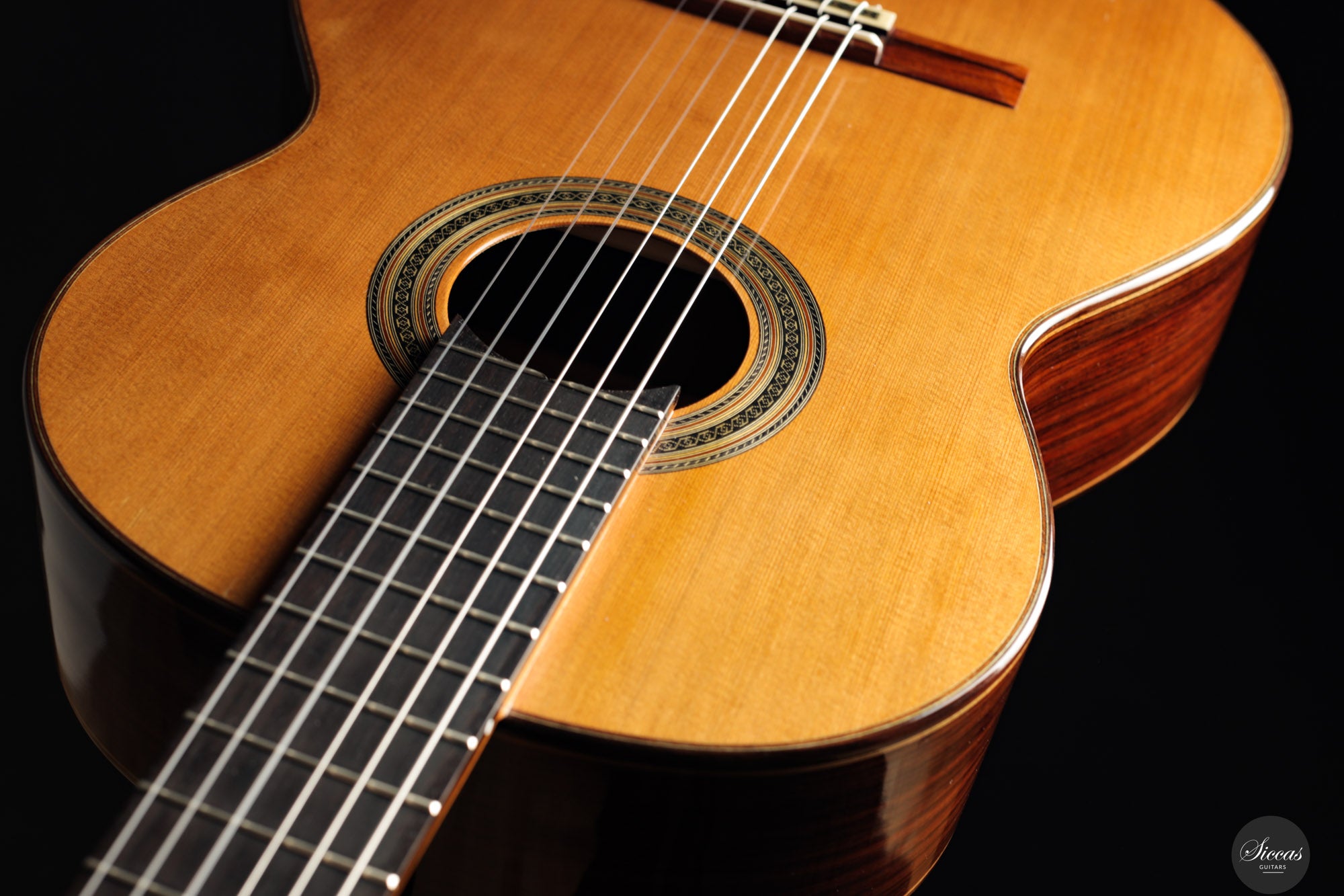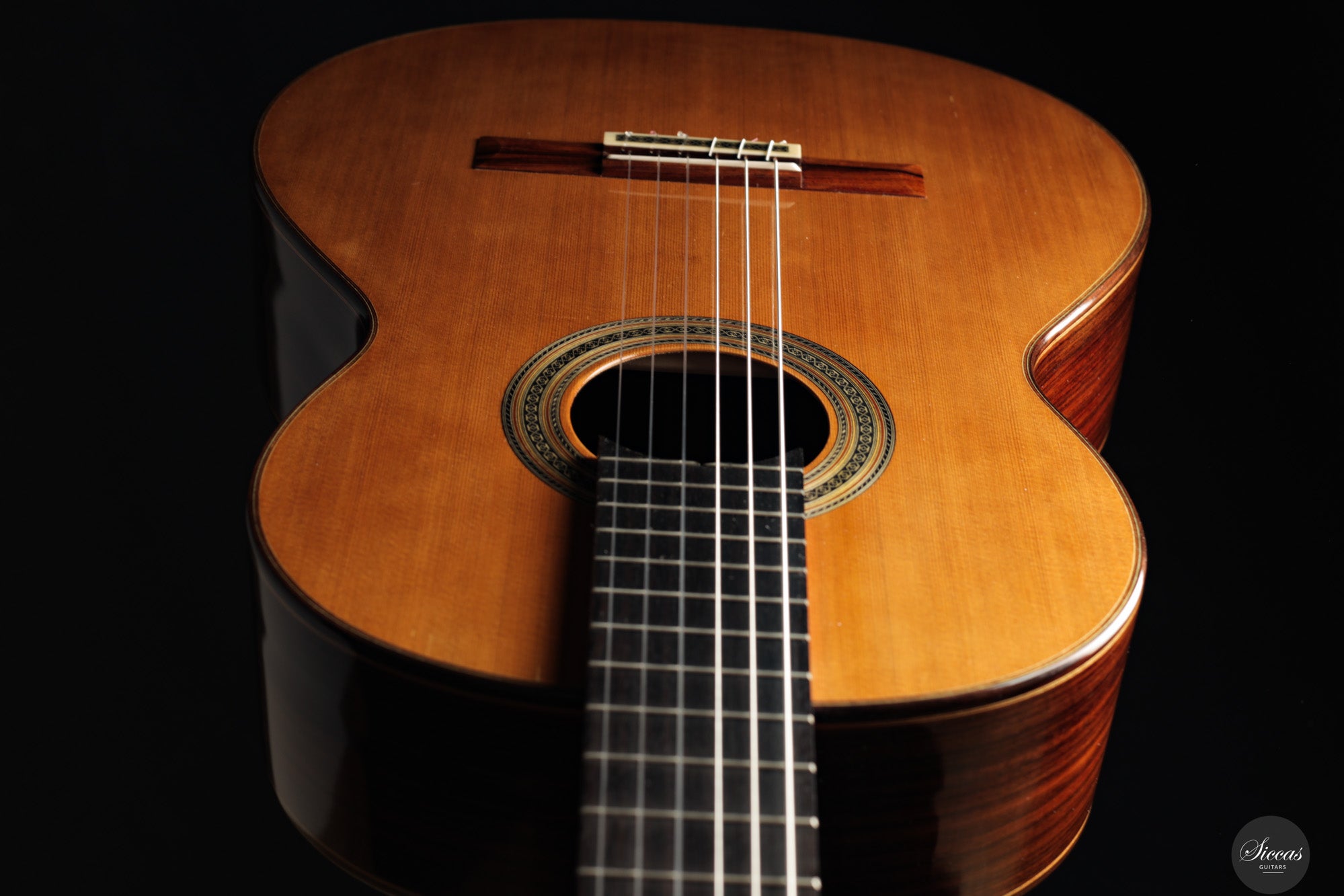 Diese Doubletop-Gitarre aus dem Jahr 2017 stellt ein besonders gelungenes Beispiel von Dieter Müllers Arbeit dar. Die Decke aus erstklassiger Zeder und der Korpus aus indischem Palisander ergeben ein Instrument mit großer klanglicher Tiefe und beeindruckender Projektion. Ihre Stimme ist voll und ausgewogen, wobei die E/F-Eigenresonanz den Bässen eine außergewöhnliche Tiefe und Fülle verleiht. Besonders auffällig ist das außergewöhnlich lange Sustain, gerade für eine so leichte Doubletop-Gitarre. Es verleiht der ersten Saite eine lebendige Präsenz und unterstützt sowohl virtuoses Spiel als auch ausdrucksvolle, langsame Melodien. Die Ansprache und Spielbarkeit dieses Instruments machen es zu einer hervorragenden Wahl für anspruchsvolles Repertoire und nuancierte Interpretation.