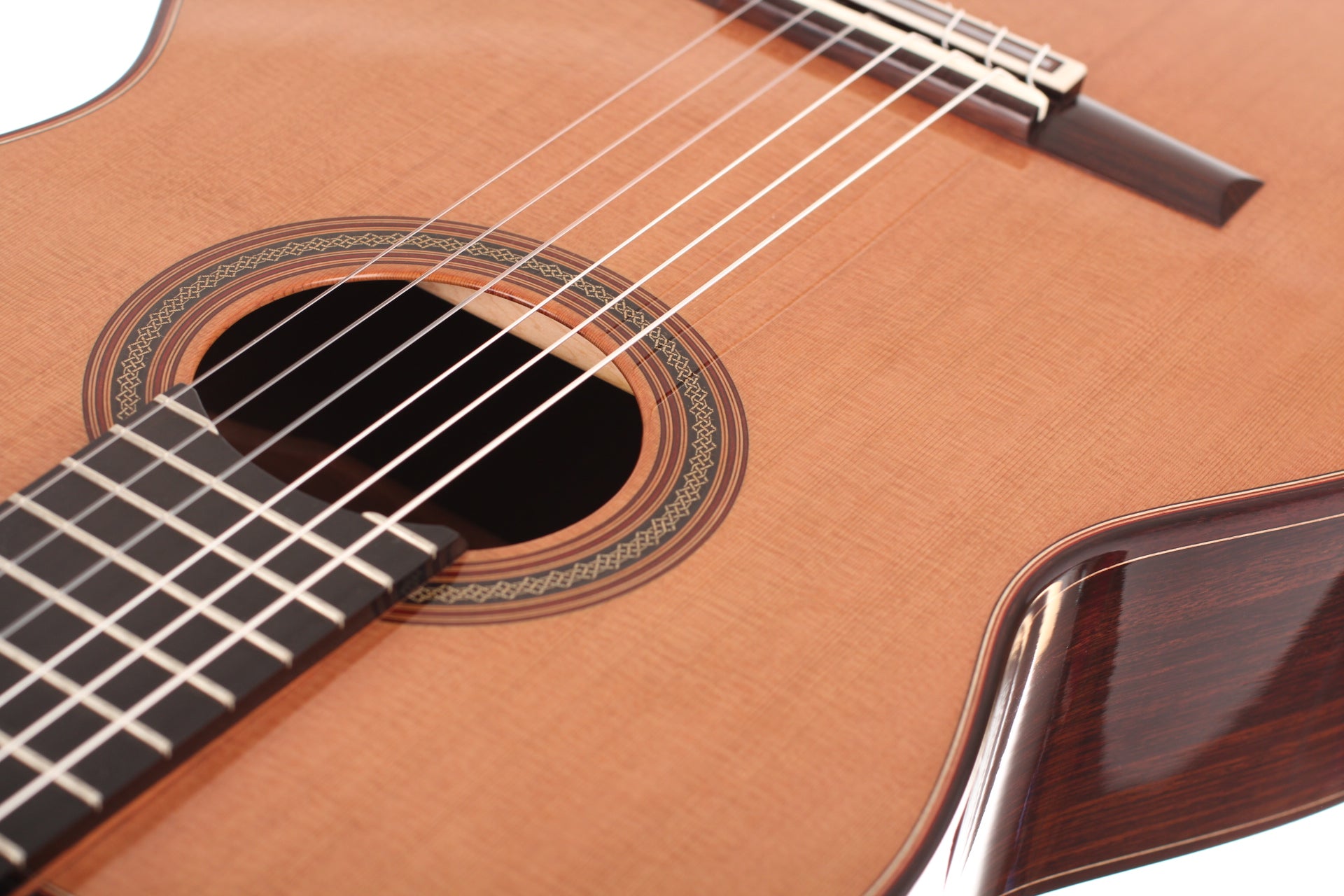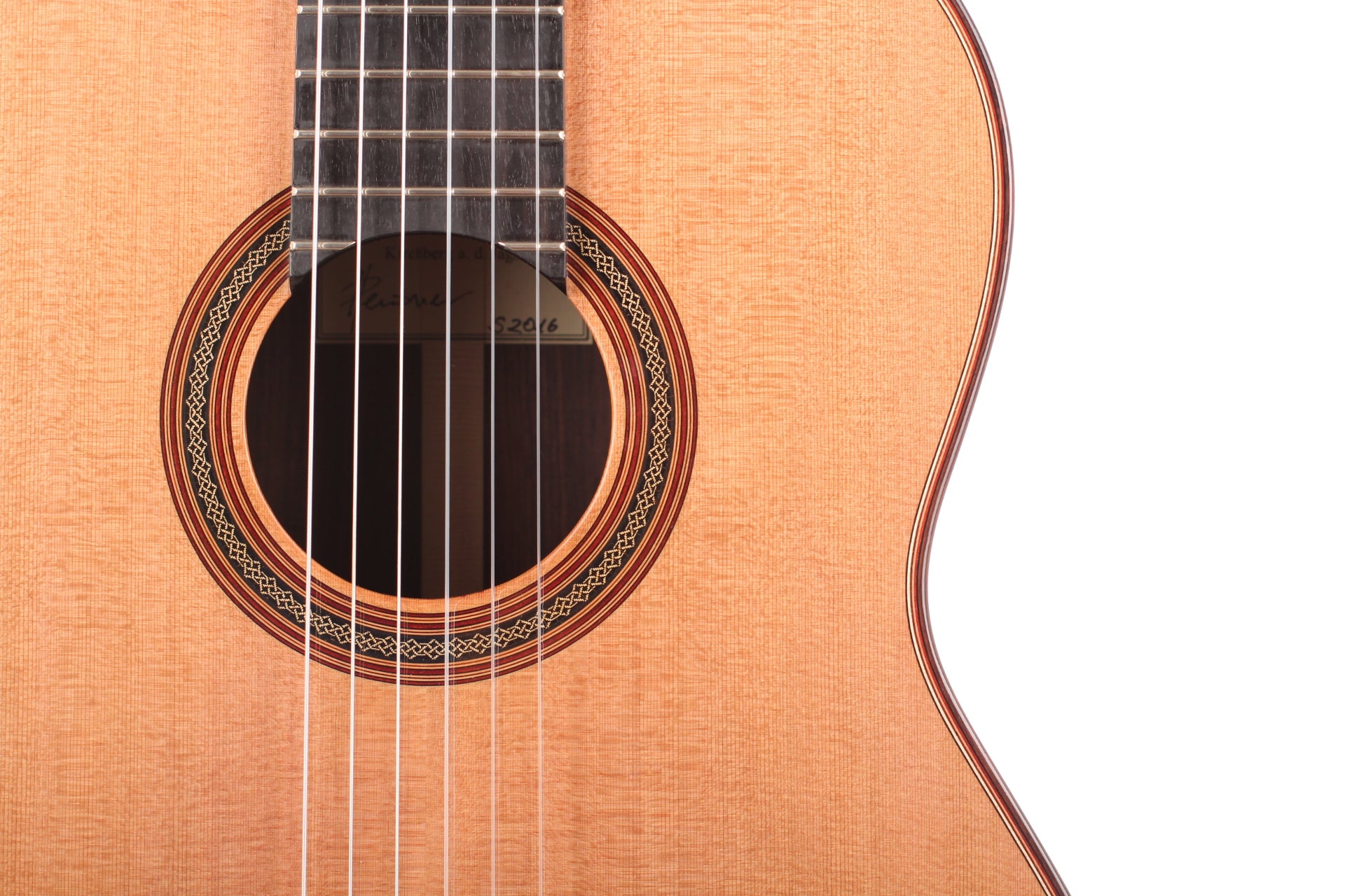 Die klassische Gitarre mit ihren weichen Nylonsaiten und ihrem charakteristischen Timbre ist zum Symbol der Kammermusik, der spanischen Tradition und des Konzertrepertoires geworden. Ihre moderne Form prägte Antonio de Torres im 19. Jahrhundert, indem er den Standard für Korpus, Fächerbeleistung und die 65-Zentimeter-Mensur setzte, die bis heute verwendet werden. Instrumente dieser Kategorie eröffnen eine reiche Palette von den feinen romantischen Miniaturen Tárregas bis zu den majestätischen Konzerten Rodrigos. Hier finden Sie Gitarren, die historische Kontinuität bewahren und zugleich zu neuen Interpretationen anregen.Alle Produkte der Kollektion ansehen -