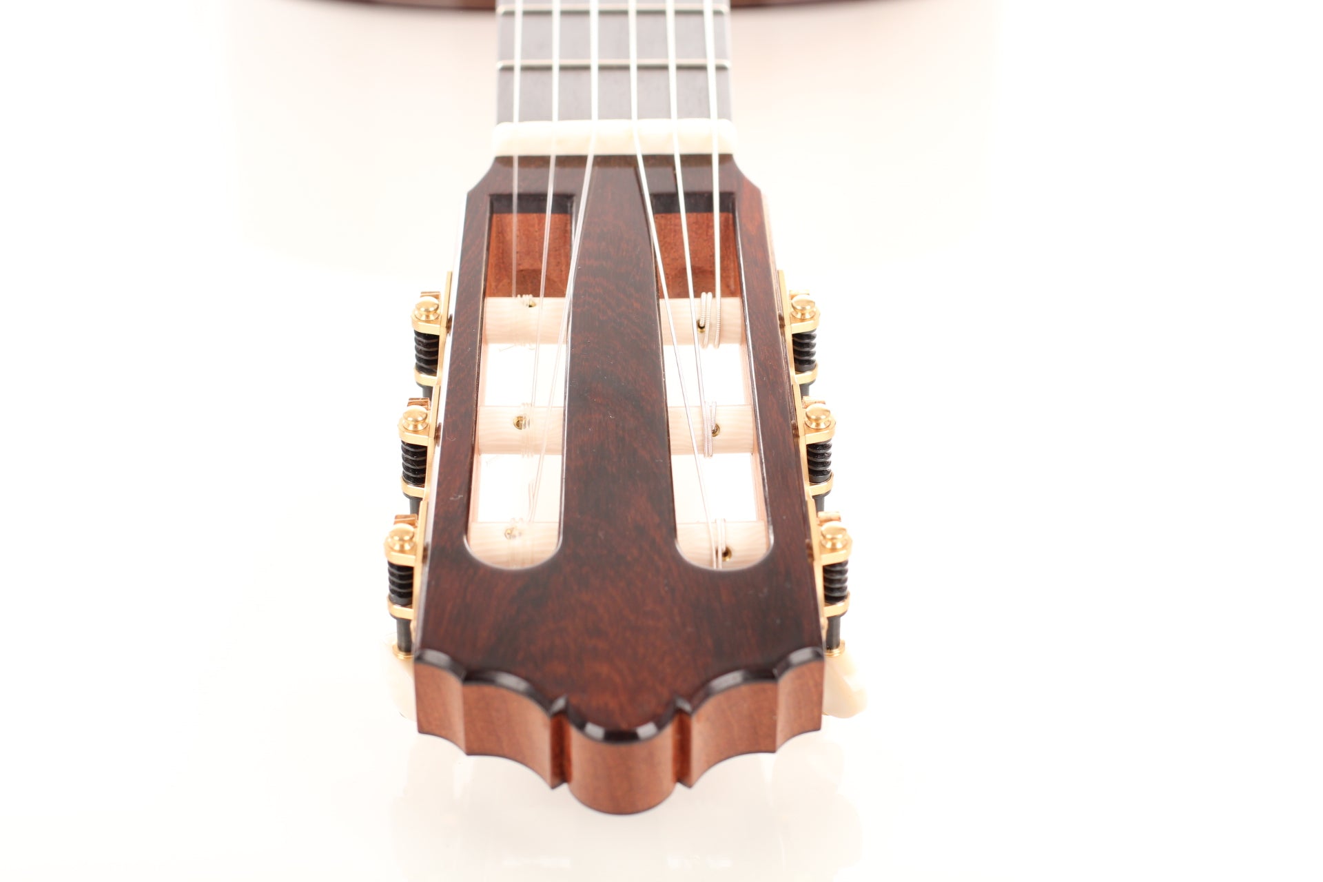 Since 25 years Dietmar Heubner is building traditional guitars with modern sound aesthetics. These instruments have a very warm sound and offer the guitar player plenty possibilities to express in a huge variety of timbres and dynamics. Dietmar started out as a cabinet maker, but soon after started building guitars in England. He gathered experiences and developed ideas by building violins.