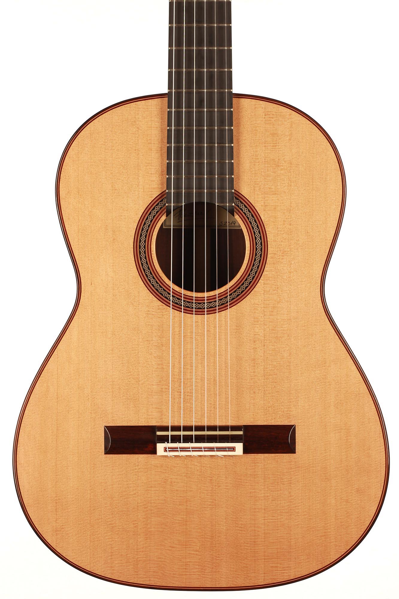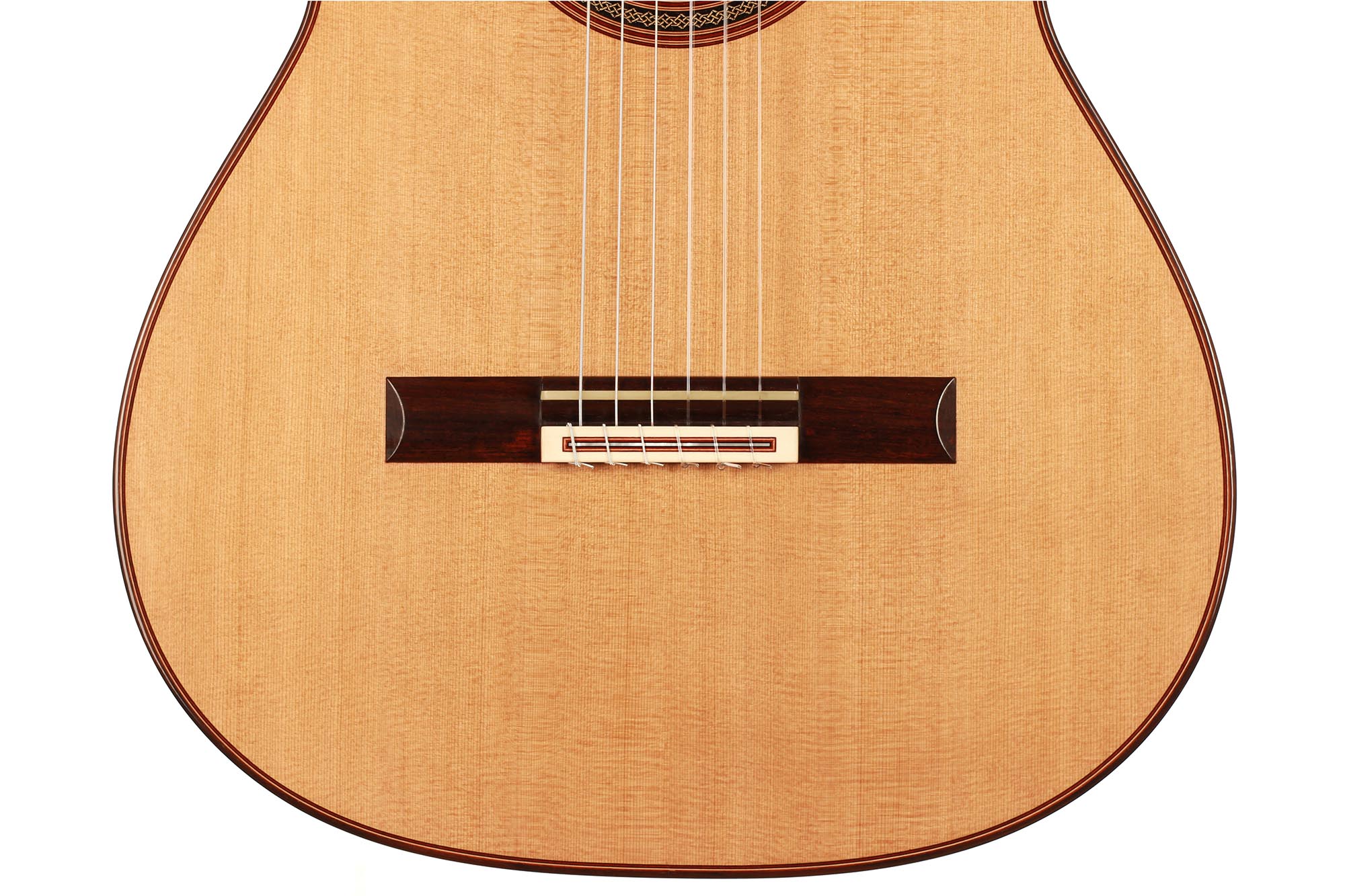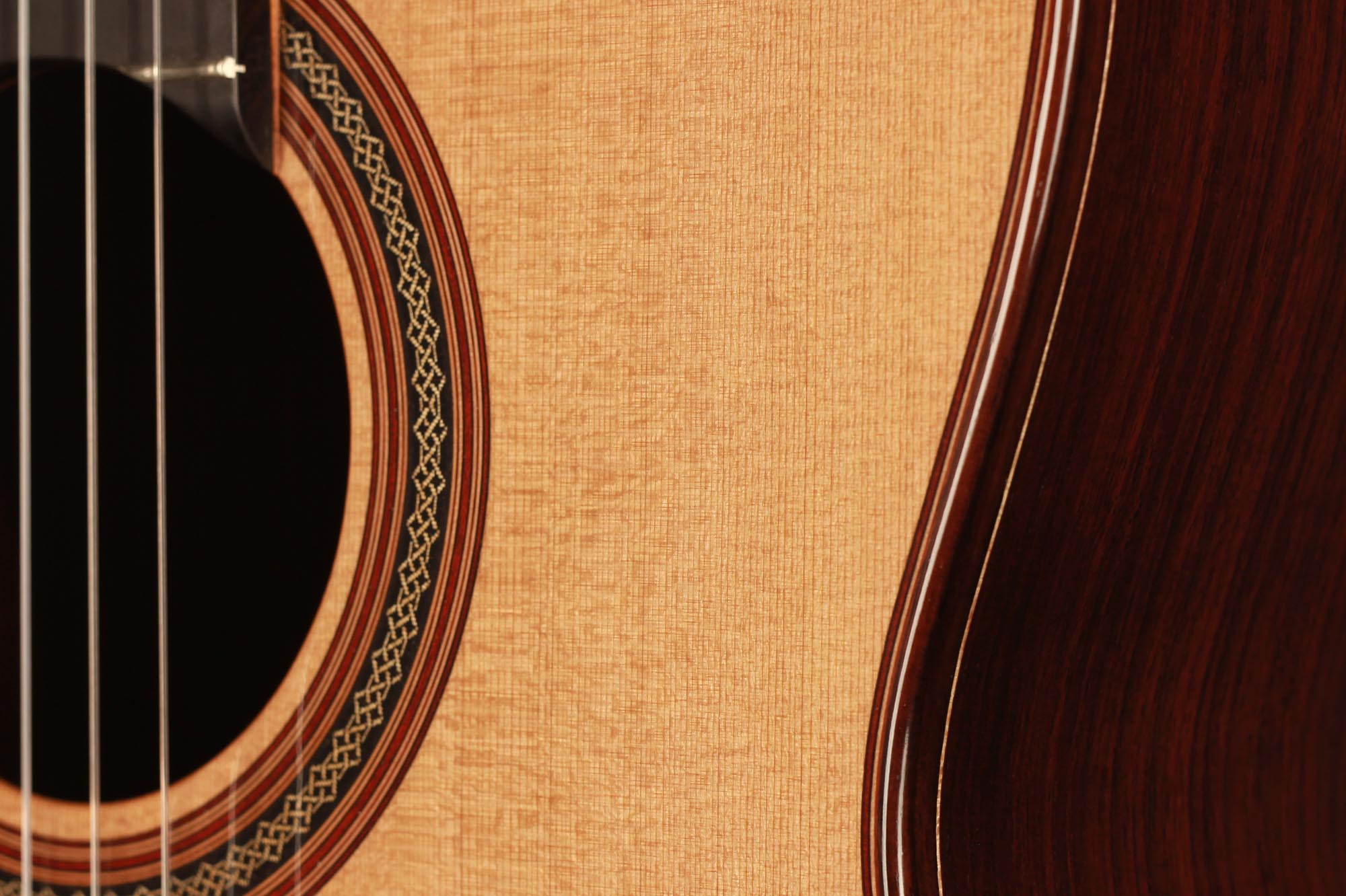 This guitar, built especially for Siccas Guitars, is absolutely fantastic in terms of sound and aesthetics. Not only is its tone very rich and full, but it is also among the most comfortable traditional guitars and has an impressive volume. A very striking sound detail of this instrument is the warmth of its tone, which, combined with the ample basses and dynamic trebles, makes it a particularly poetic sounding instrument.