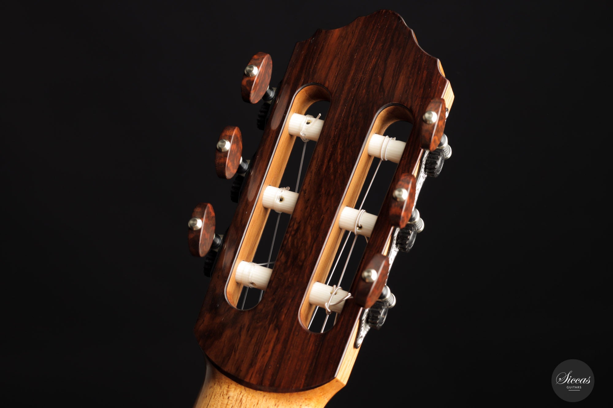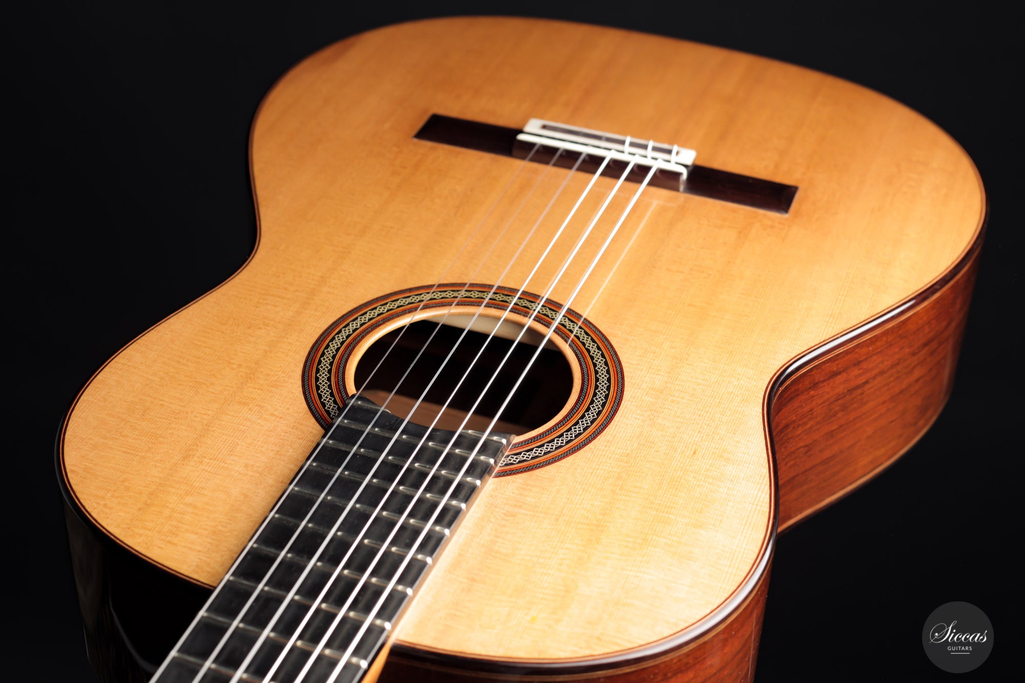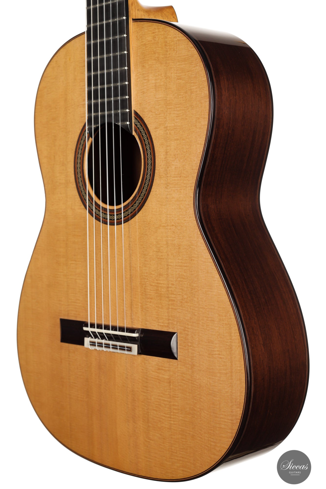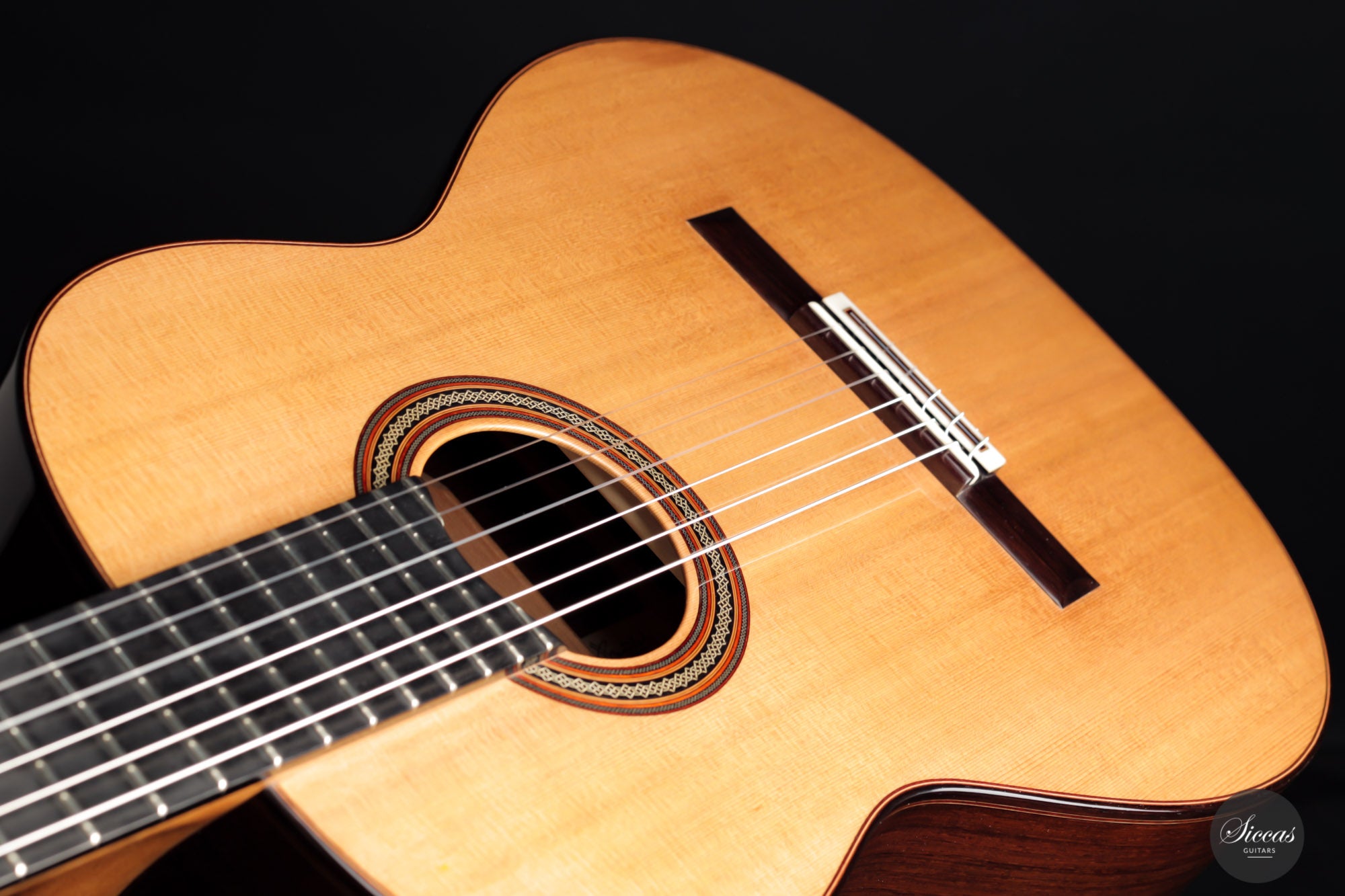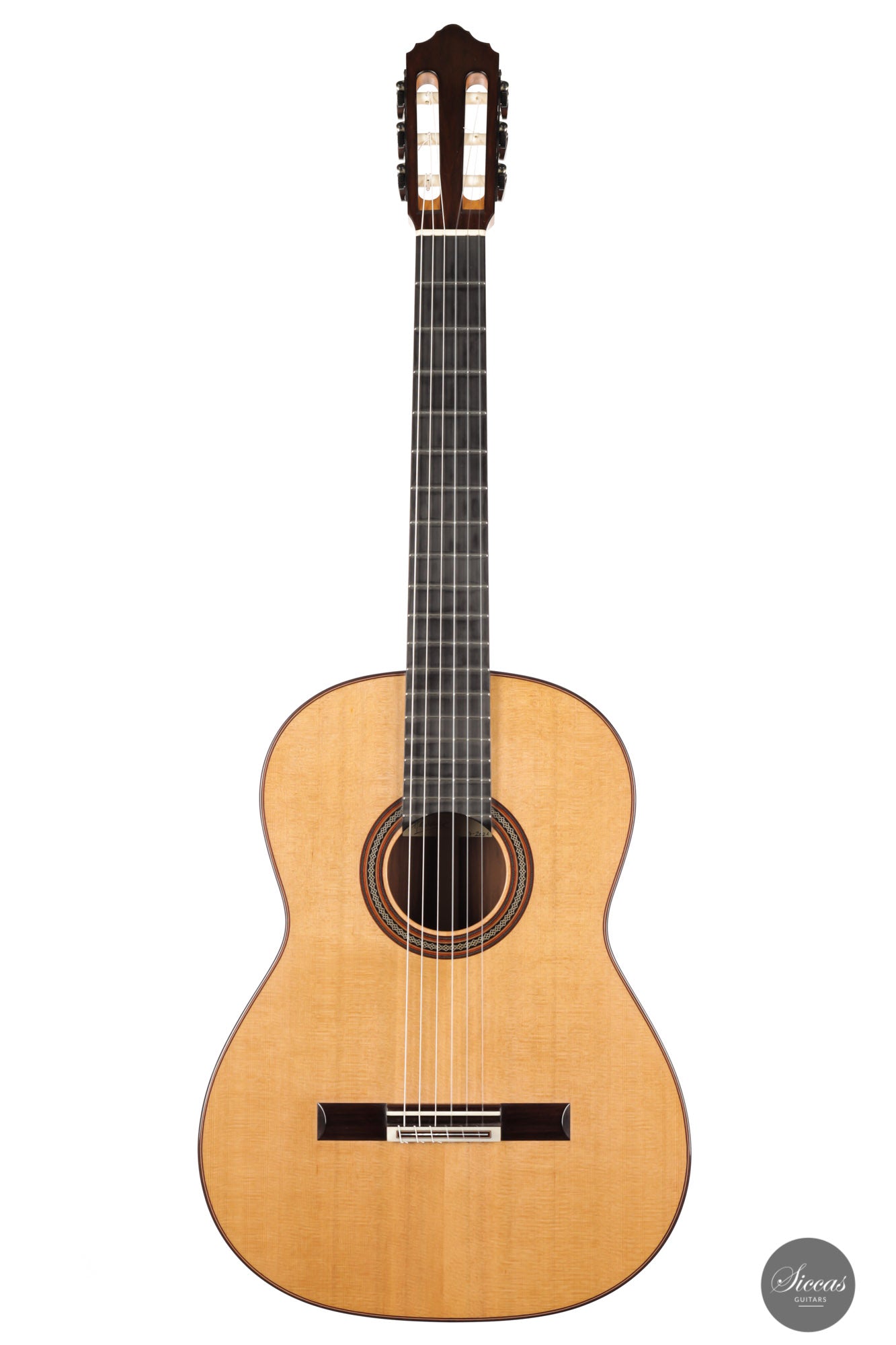 Das Ergebnis ist eine sehr lebendige und reizvolle Gitarre. Sie weist ein beeindruckendes Klangvolumen, Projektion und Offenheit auf, die für eine Gitarre, welche erst kürzlich die Werkstatt des Meisters verlassen hat, auserordentlich ist. Der Diskant klingt brillant und gleichzeitig warm. Außerdem sorgt das leicht erhöhte Griffbrett für Spielkomfort in den höheren Lagen. Die Liste der objektiven Qualitäten dieser Gitarre ist lang. Am meisten begeistert sind wir von der Präsenz, dem Klangvolumen und der Projektionskraft, welche dieses Instrument hat.