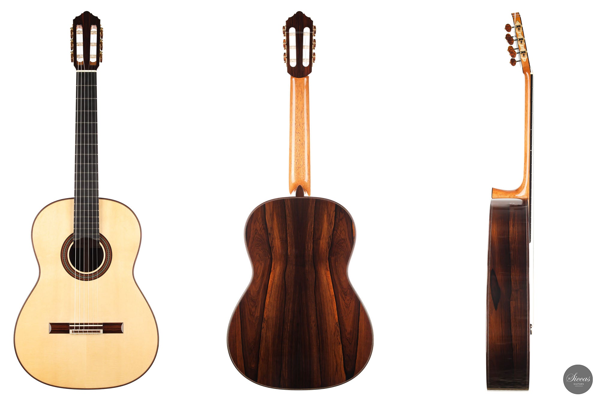 The Premium models are unique instruments that are developed in cooperation with a selection of exceptional luthiers. These models are exclusively available at Siccas Guitars and are built with the finest Cites-certified Brazilian rosewood of premium quality. Due to its outstanding physical and tonal characteristics, this wood has been used in guitar building since the 19th century and is regarded as the most valuable and aesthetically appealing tonewood in guitar building.