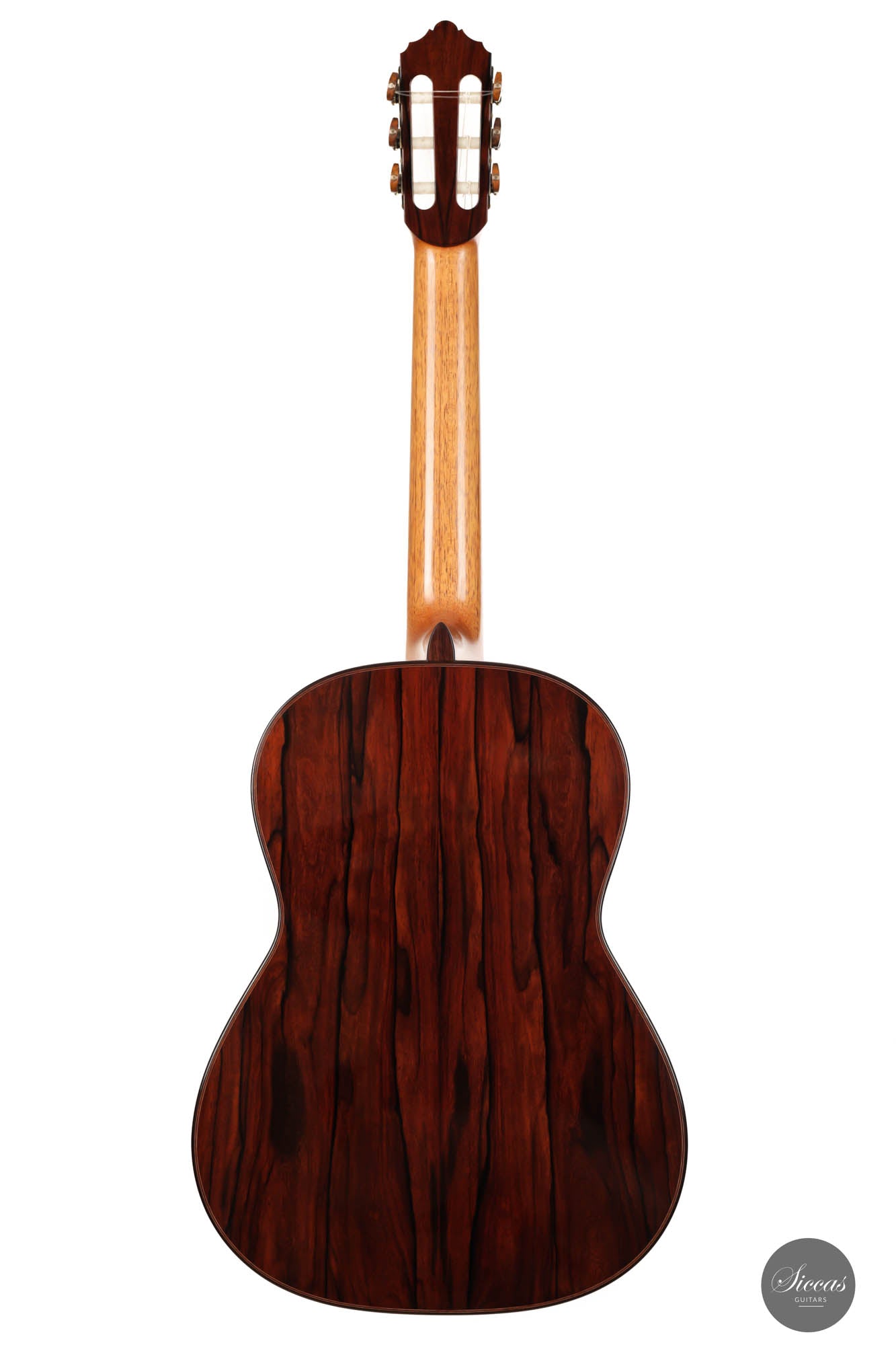 This 2023 Dietmar Heubner guitar is a true masterpiece, crafted with the utmost care and attention to detail. Its spruce soundboard and rare "Bois de Rose" (Dalbergia Maritima) back and sides are visually stunning, with a mesmerizing red and orange hue. They also produce a rich, rich, warm, and projecting tone. The sound of this guitar is simply spectacular, offering a perfect balance of traditional classical guitar tones with a potent edge that is sure to captivate audiences.