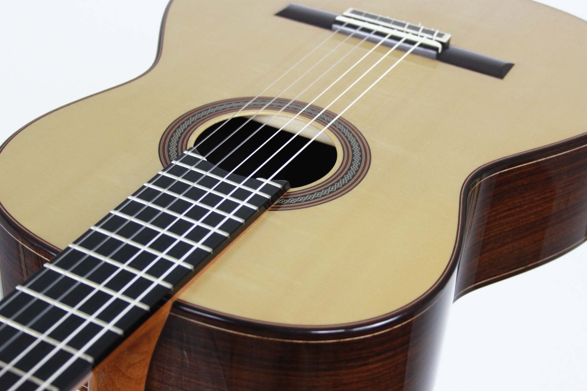 Since 25 years Dietmar Heubner is building traditional guitars with modern sound aesthetics. These instruments have a very warm sound and offer the guitar player plenty possibilities to express in a huge variety of timbres and dynamics. Dietmar started out as a cabinet maker, but soon after started building guitars in England. He gathered experiences and developed ideas by building violins.