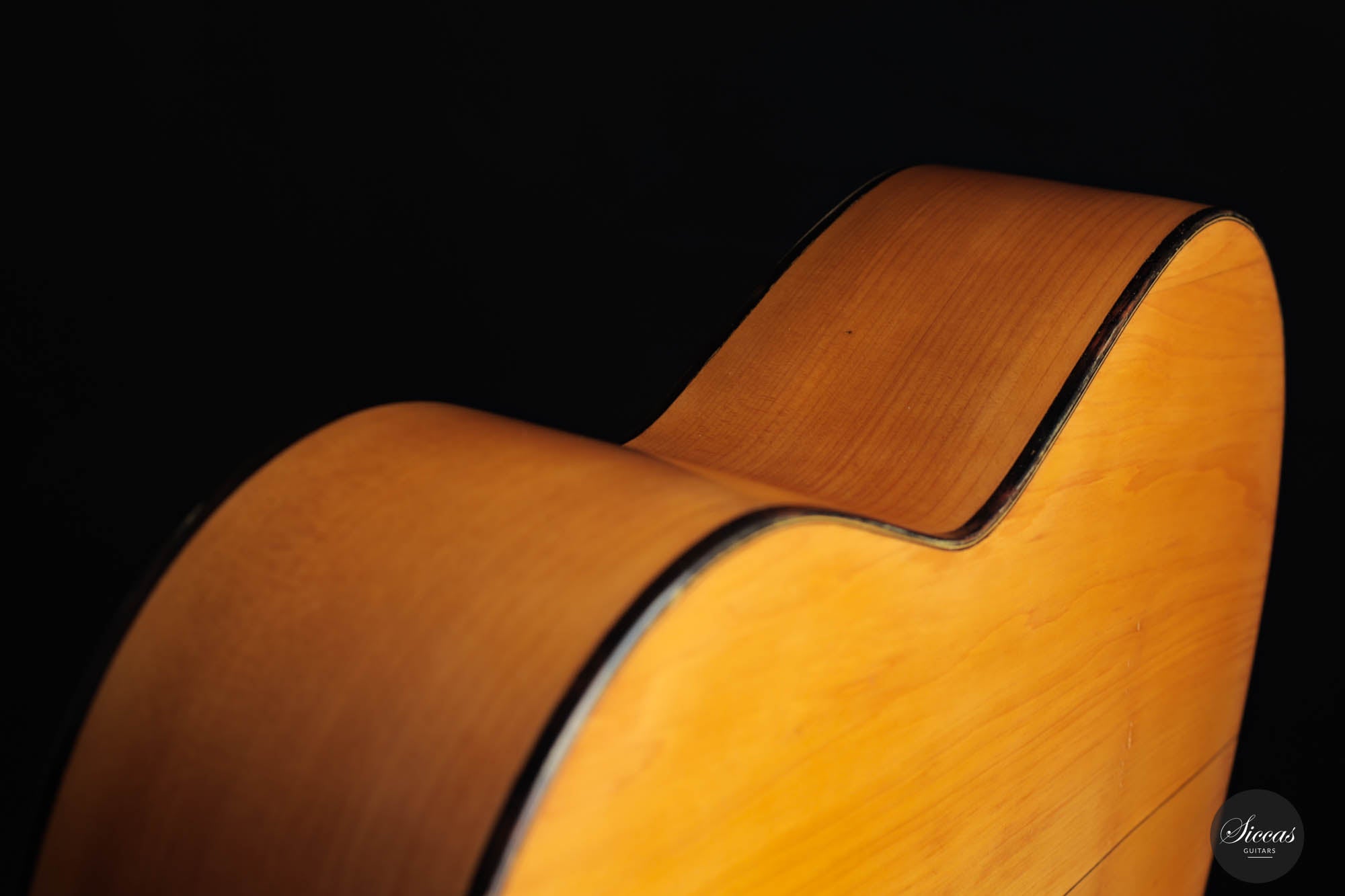 Wir stellen die exquisite Domingo Esteso Blanca Gitarre von 1931 vor, ein atemberaubendes Beispiel der Handwerkskunst des frühen 20. Jahrhunderts. Jahrhunderts. Dieses bemerkenswerte Instrument verkörpert auf wunderbare Weise die Essenz seiner Zeit und bietet dem modernen Gitarristen dennoch ein höchst befriedigendes Spielerlebnis. Um ihren authentischen Charme zu bewahren, hat diese Gitarre nur eine einzige Veränderung erfahren: die meisterhafte Entfernung des Golpeadors durch Gabriele Lodi. Die Schellackpolitur des Instruments wurde ebenfalls von Gabriele Lodi sorgfältig aufgefrischt, um die dauerhafte Raffinesse des Instruments zu verbessern, ohne seinen ursprünglichen Charakter zu verändern.