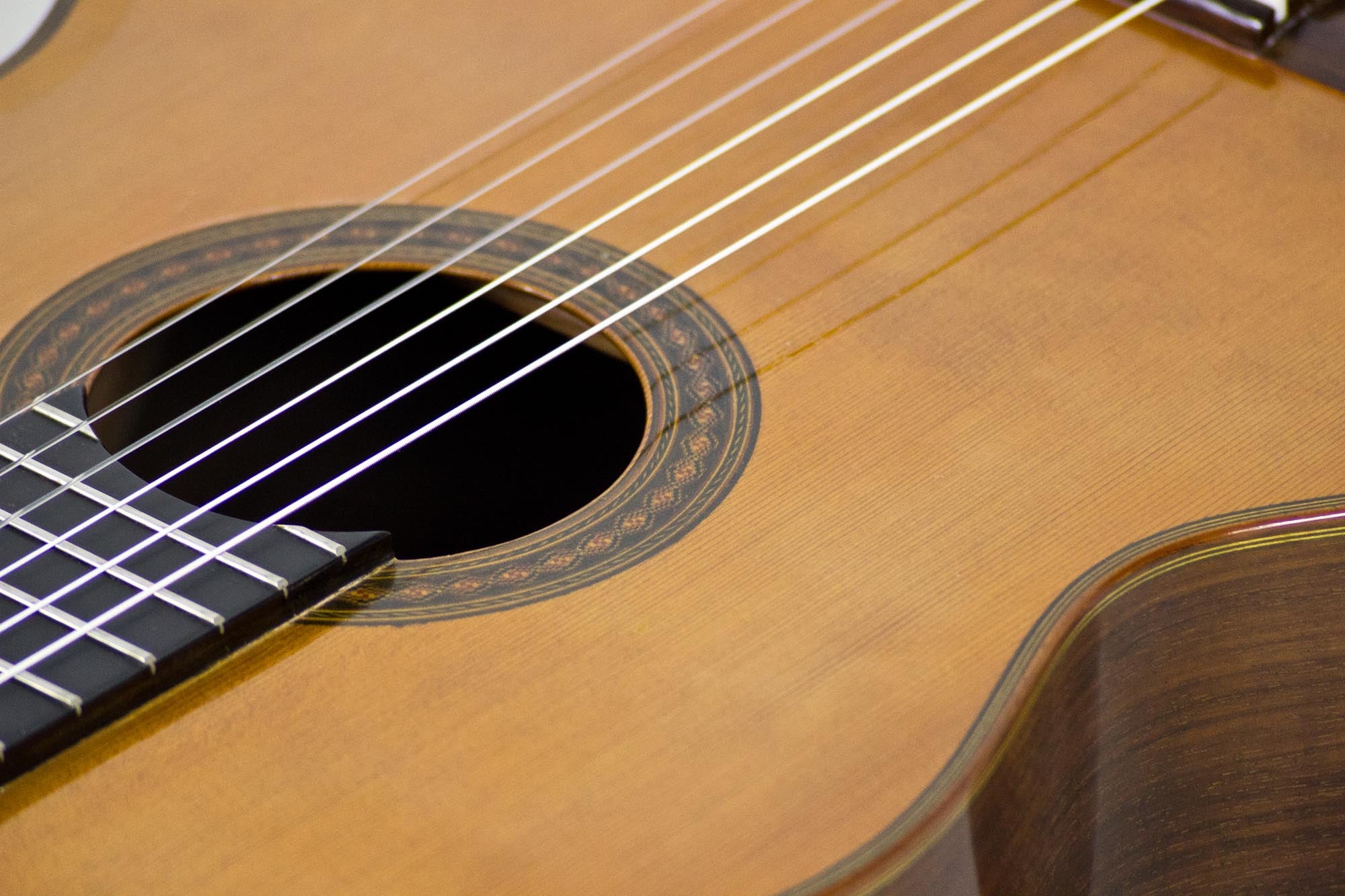 Preis auf AnfrageGitarrenbauer: Ignacio FletaBaujahr: 1954Decke: SpruceBoden und Zargen: Brazilian rosewood (CITES certified)Deckenoberfläche: French polishKorpusoberfläche: NitrocelluloseLuftresonanz: G / G sharpGewicht (g): 1585Mechaniken: FusteroZustand: Very good -