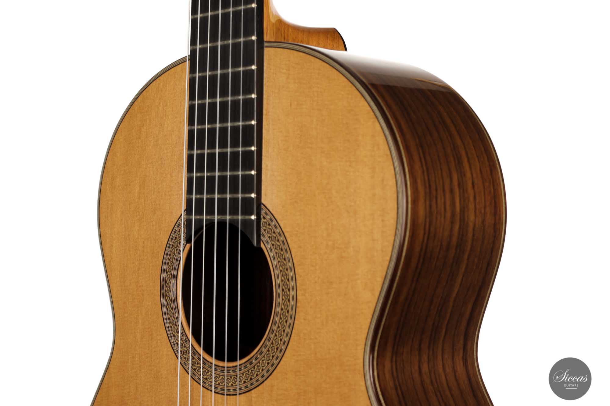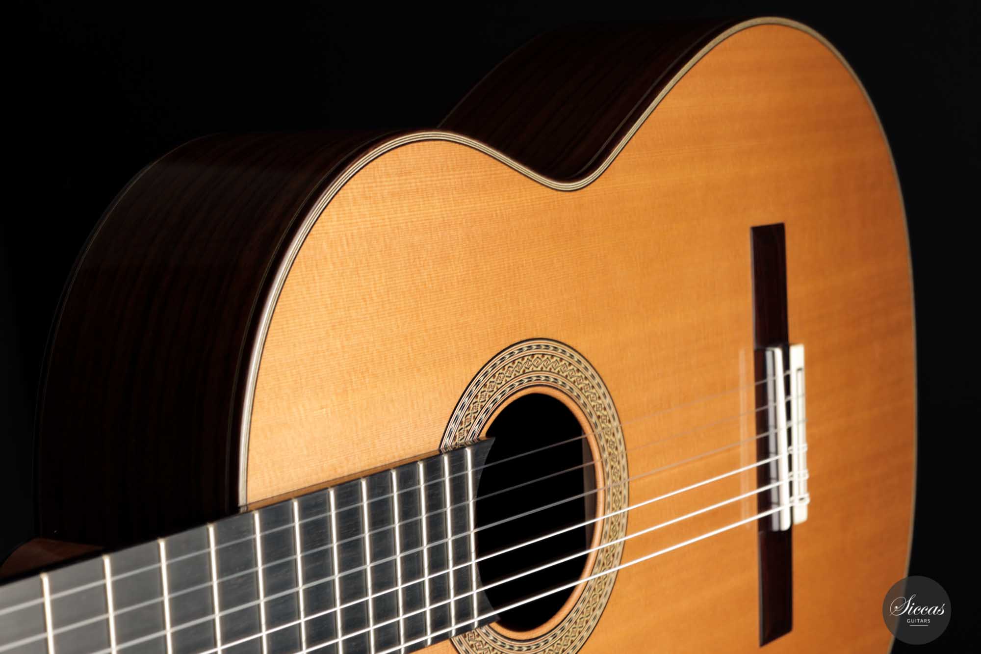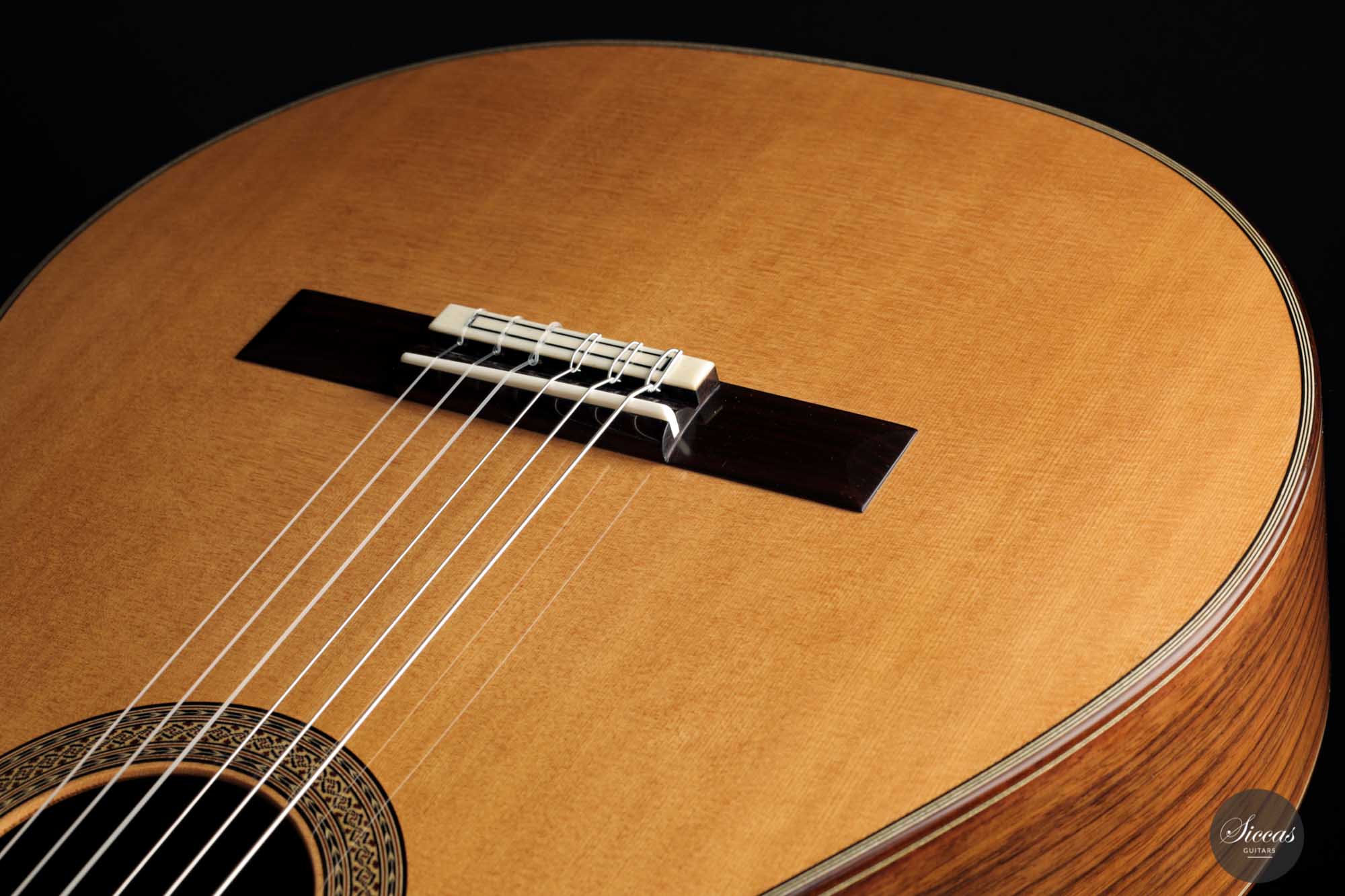 Die klassische Gitarre mit ihren weichen Nylonsaiten und ihrem charakteristischen Timbre ist zum Symbol der Kammermusik, der spanischen Tradition und des Konzertrepertoires geworden. Ihre moderne Form prägte Antonio de Torres im 19. Jahrhundert, indem er den Standard für Korpus, Fächerbeleistung und die 65-Zentimeter-Mensur setzte, die bis heute verwendet werden. Instrumente dieser Kategorie eröffnen eine reiche Palette von den feinen romantischen Miniaturen Tárregas bis zu den majestätischen Konzerten Rodrigos. Hier finden Sie Gitarren, die historische Kontinuität bewahren und zugleich zu neuen Interpretationen anregen.