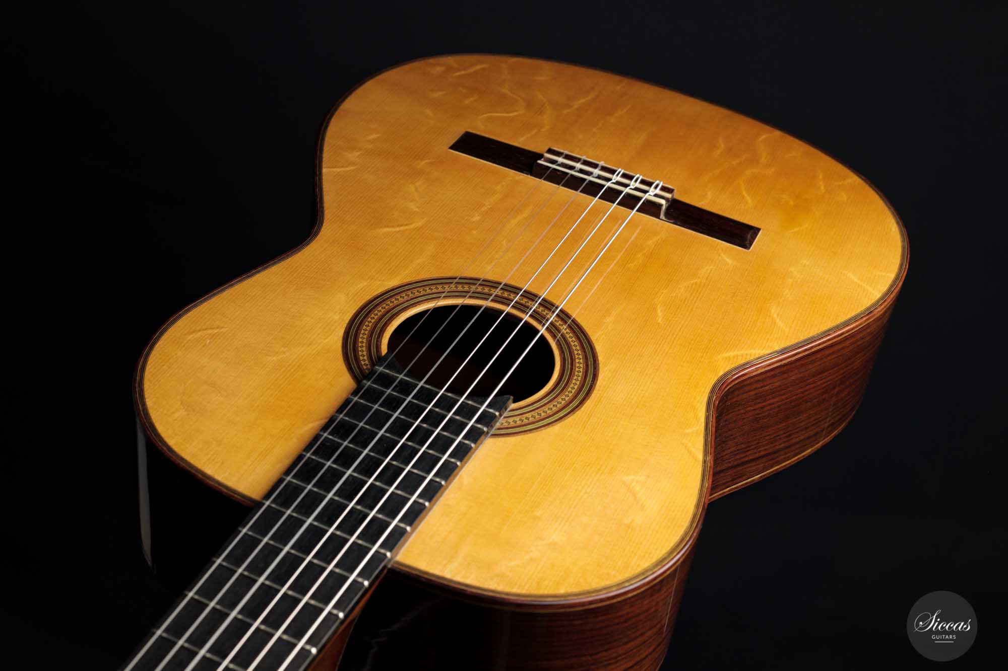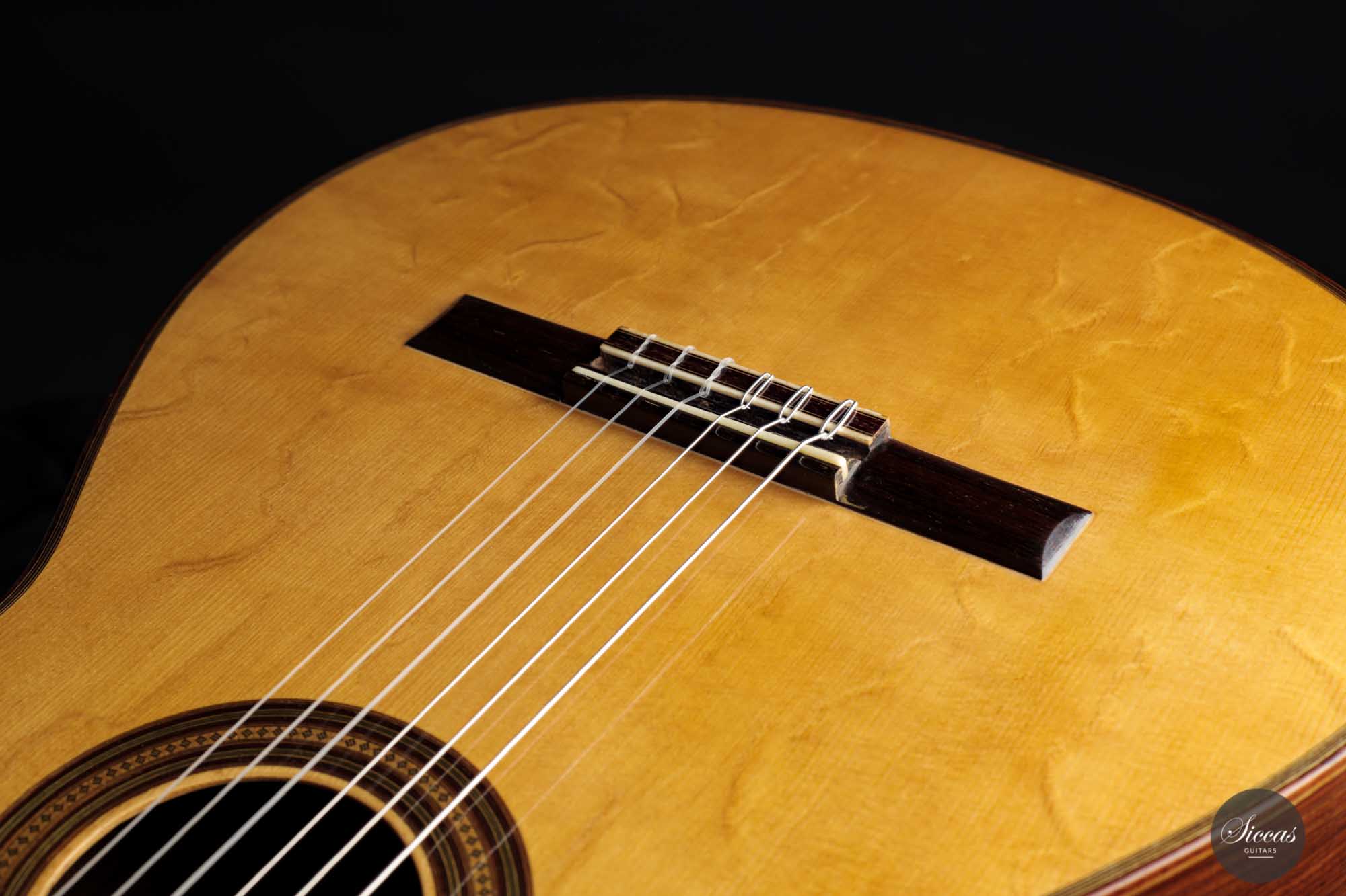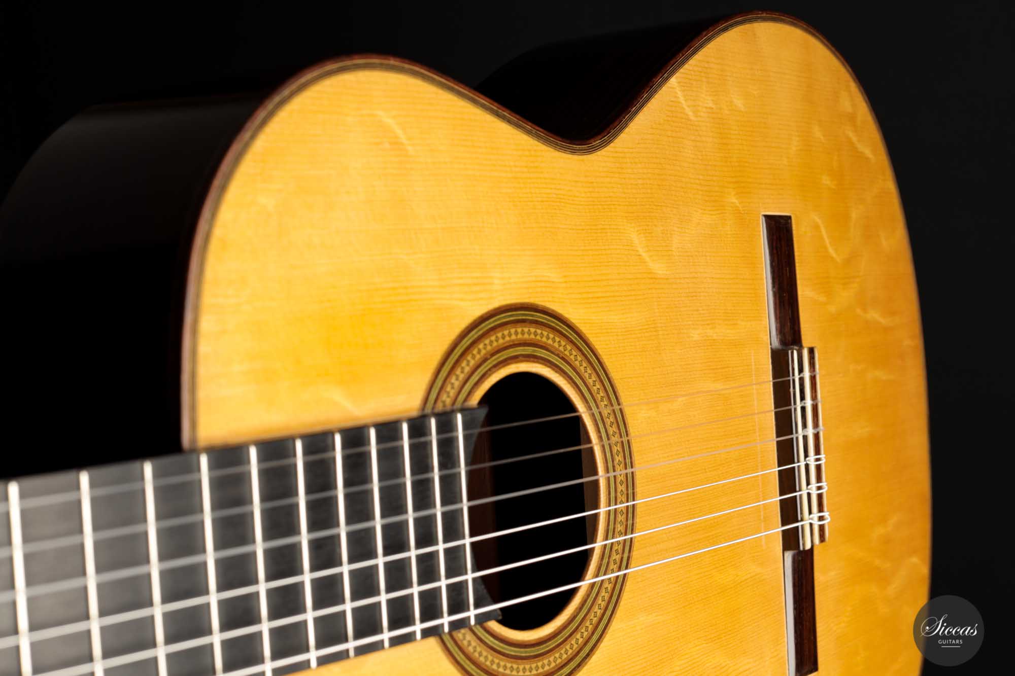 Dieses vermutlich von Torres- und möglicherweise Fleta-Gitarren mit Fichtendecke inspirierte Instrument ist mit einfachen Zargen und einer sieben-fächrigen Beleistung gebaut, zu der ein leicht diagonaler Querbalken unter dem Schallloch hinzugefügt wurde. Durch den Verzicht auf eine Verstärkung unter dem Steg hat diese Gitarre einen sehr unmittelbaren und geradlinigen Klangcharakter, aber auch eine fühlbare Geschmeidigkeit und Abgerundetheit.