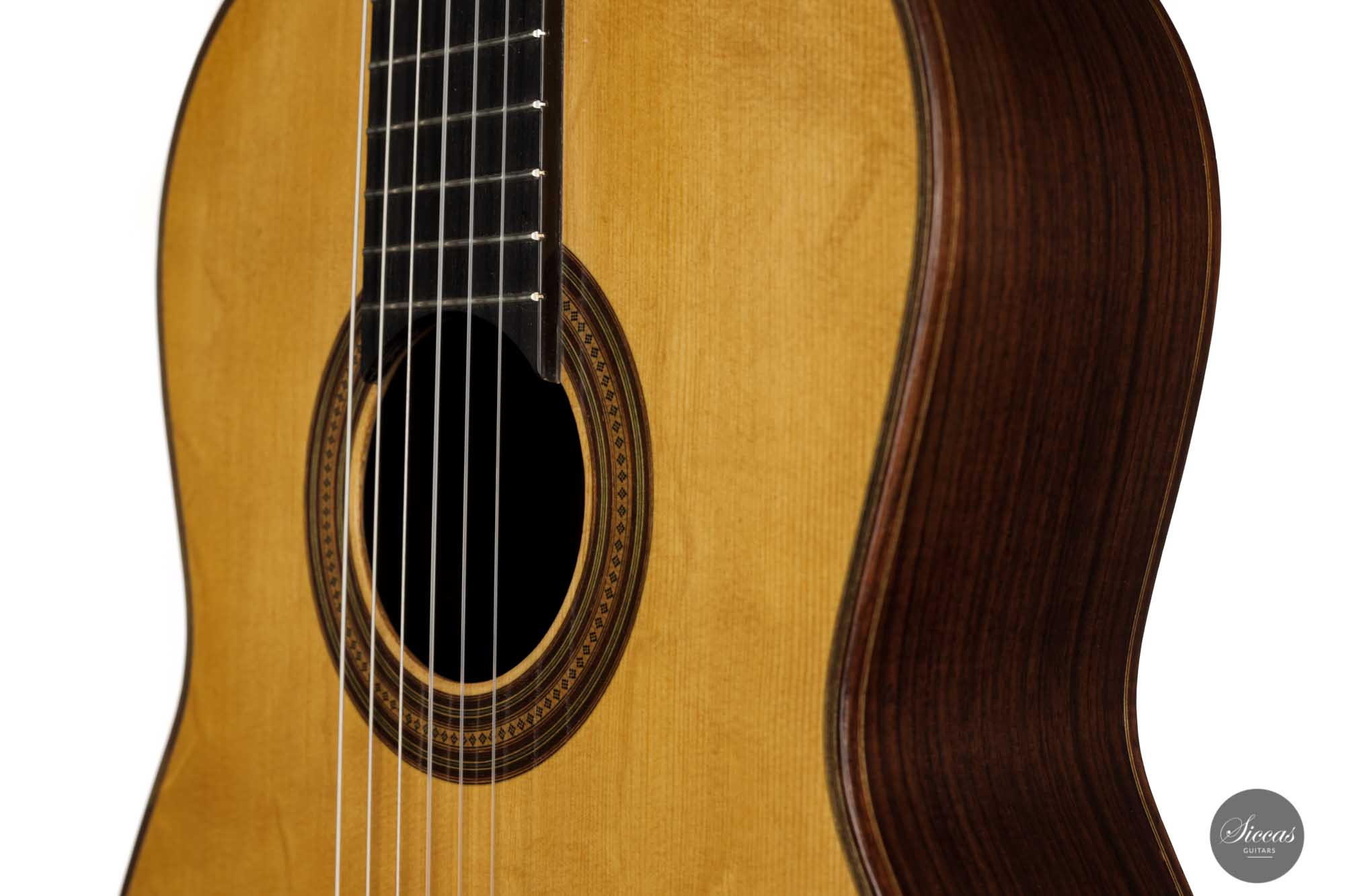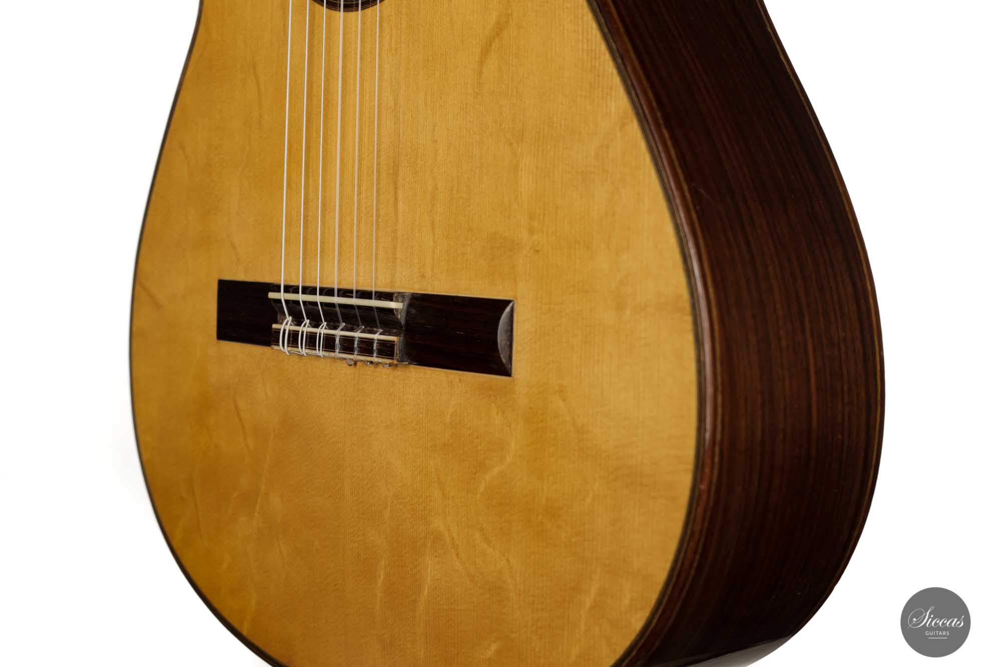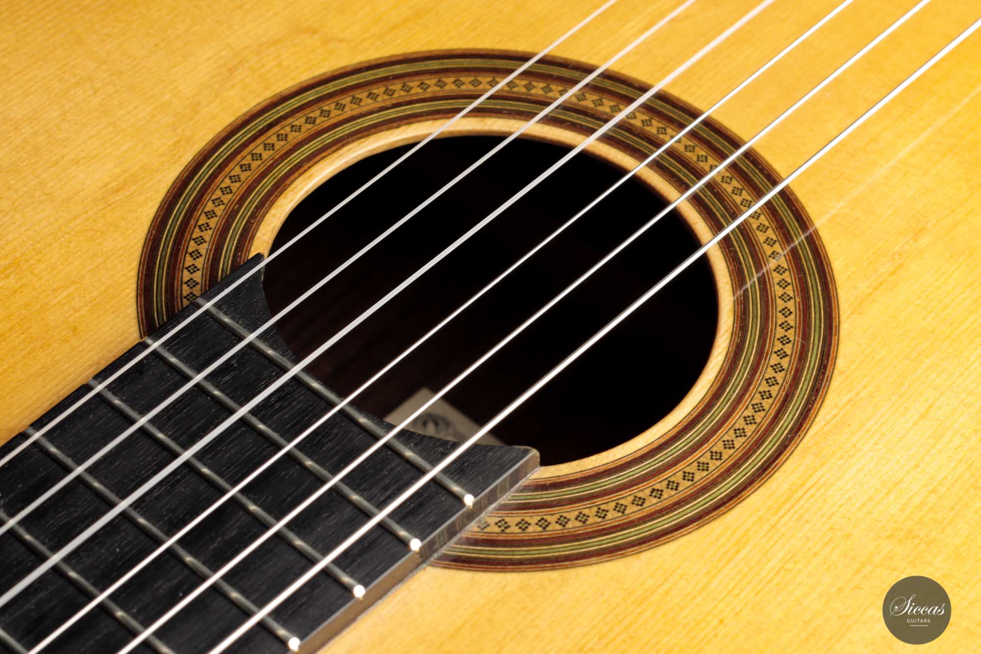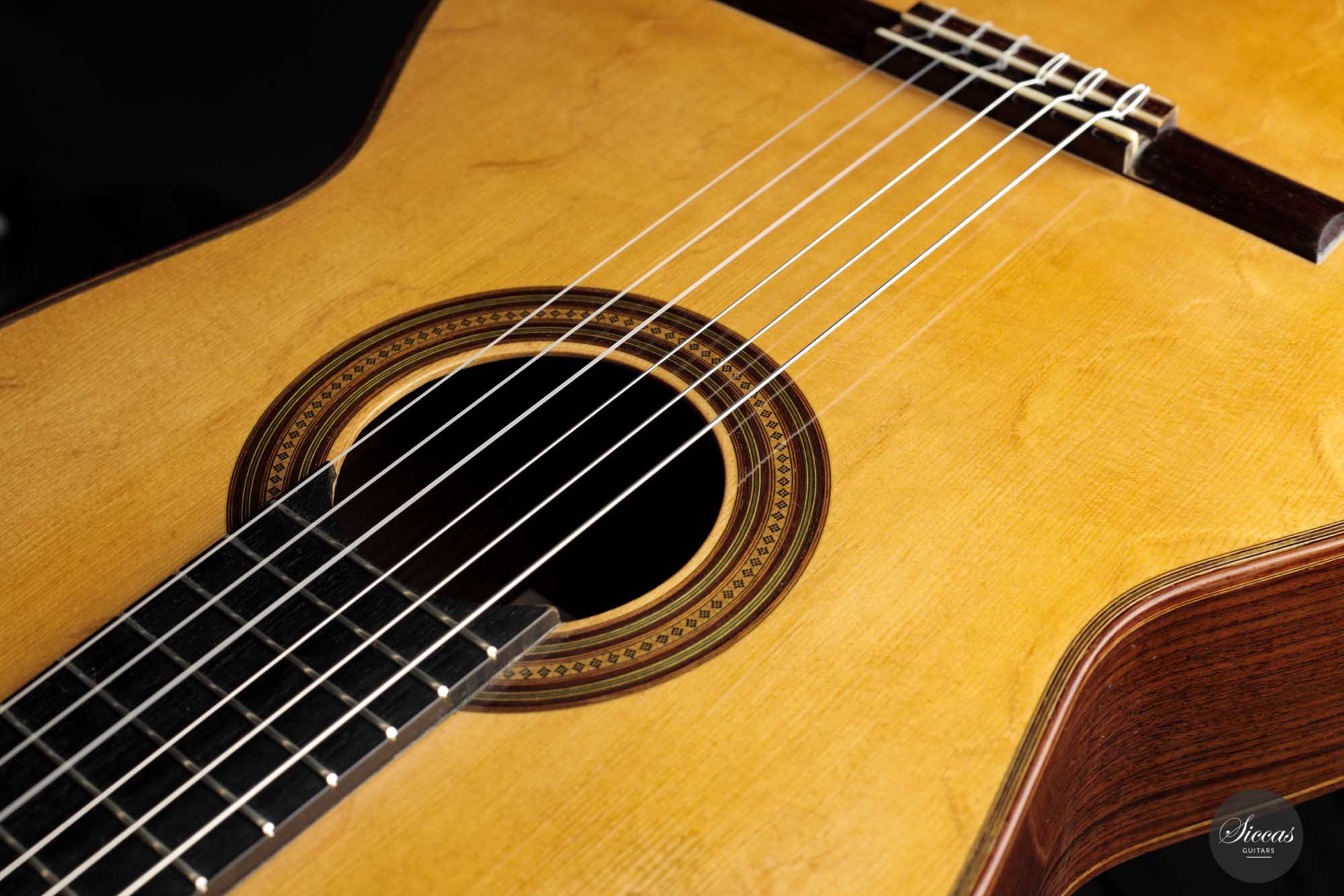 Dieses vermutlich von Torres- und möglicherweise Fleta-Gitarren mit Fichtendecke inspirierte Instrument ist mit einfachen Zargen und einer sieben-fächrigen Beleistung gebaut, zu der ein leicht diagonaler Querbalken unter dem Schallloch hinzugefügt wurde. Durch den Verzicht auf eine Verstärkung unter dem Steg hat diese Gitarre einen sehr unmittelbaren und geradlinigen Klangcharakter, aber auch eine fühlbare Geschmeidigkeit und Abgerundetheit.