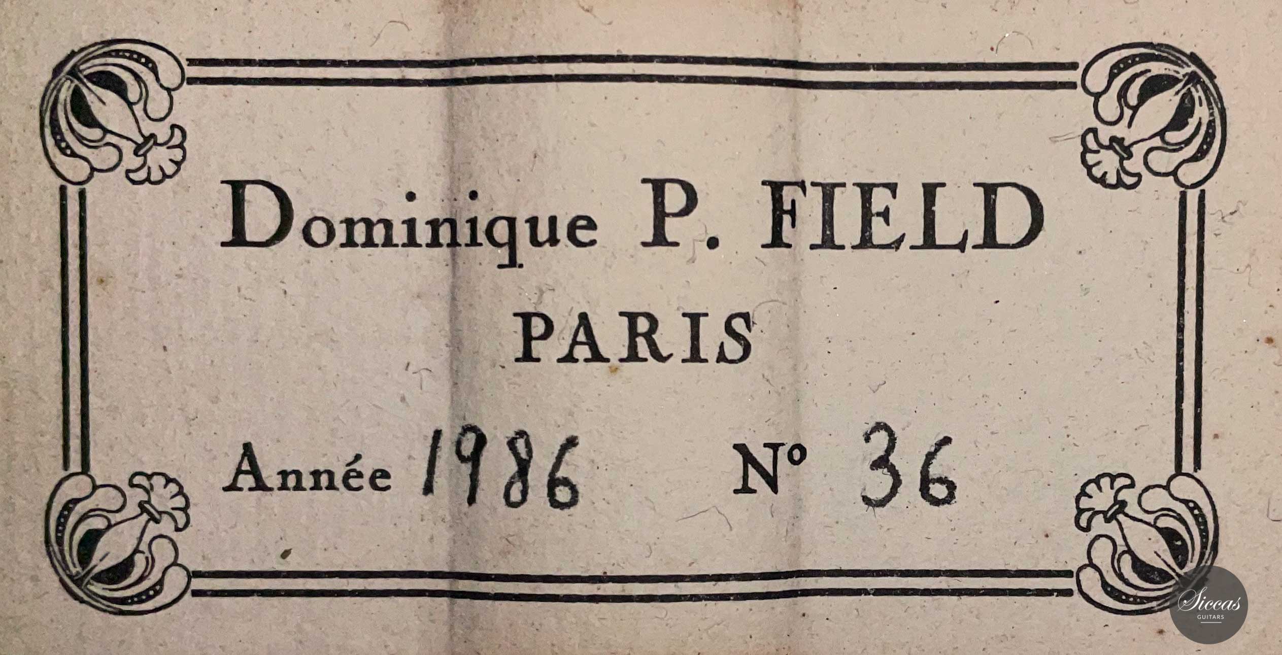 Dominique Field ist einer der gegenwärtig bekanntesten und gefragtesten Gitarrenbauer. Er fertigt nicht nur Gitarren in der französischen Gitarrenbautradition, sondern hebt diese auf ein ganz neues Niveau, indem er den die von Daniel Friederich seinerzeit konzipierten Neuerungen folgt und diese Konzepte der französischen Gitarrenbautradition weiterentwickelt. Das hohe Maß an Kunstfertigkeit, das Dominique Field an den Tag legt, ist eines der markantesten Merkmale seiner Gitarren. Seine Instrumente zeichnen sich durch eine enorme Detailgenauigkeit und eine allgemeine Eleganz bei der Wahl von Farben, Motiven und Proportionen aus.