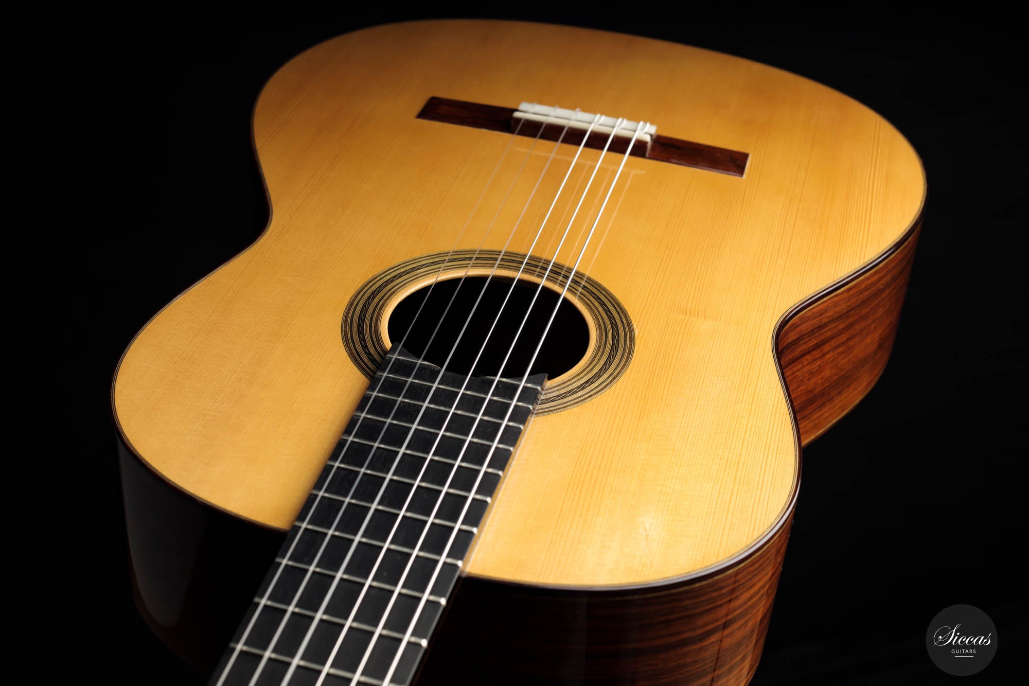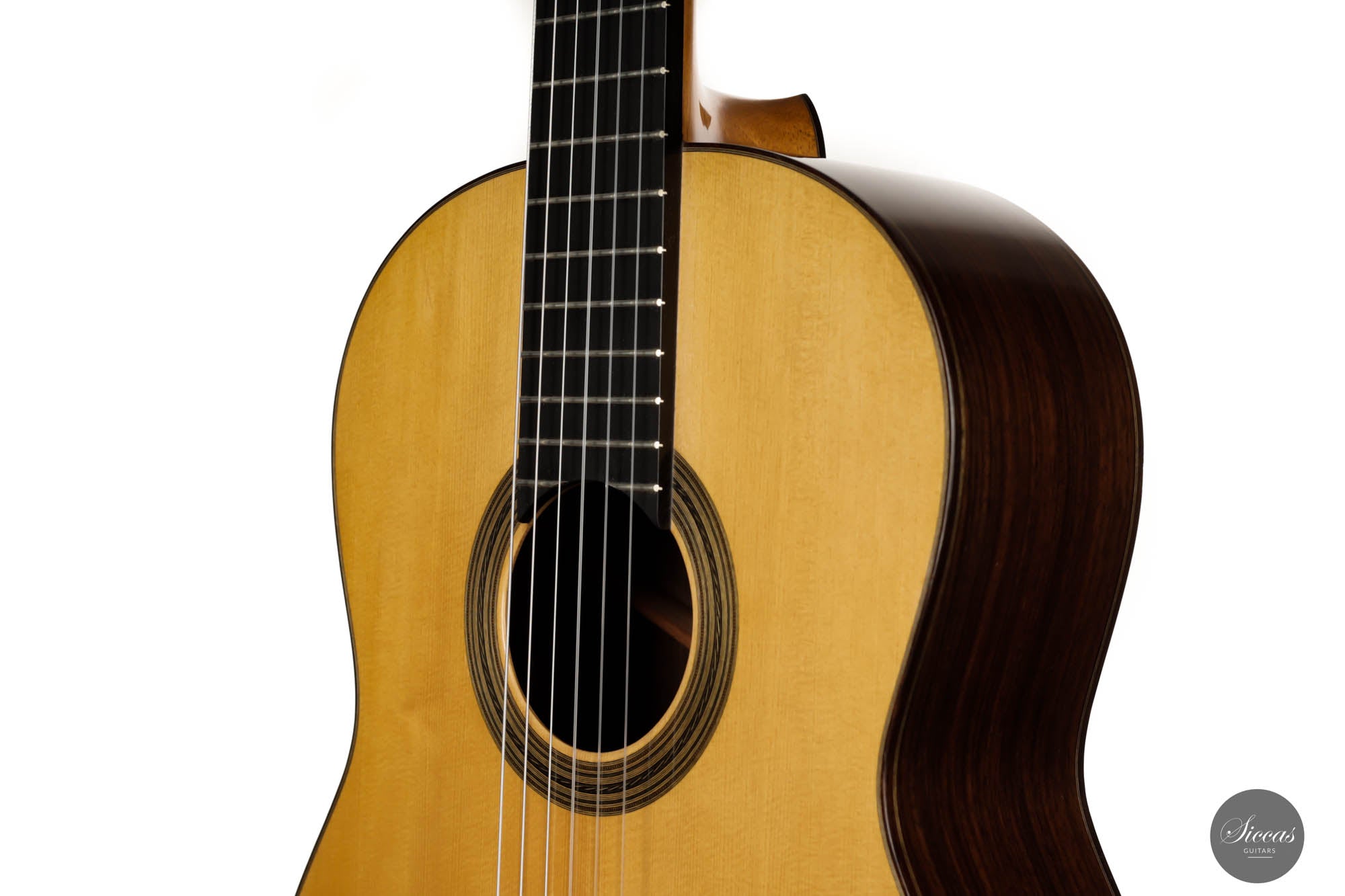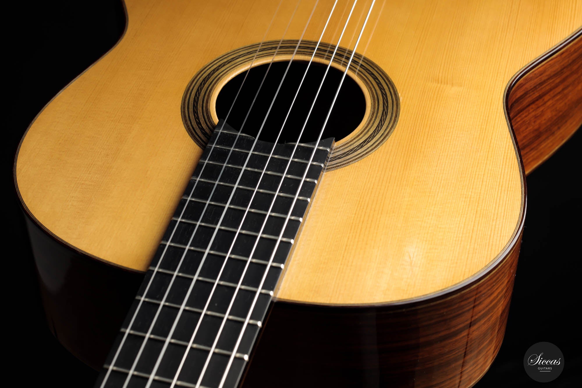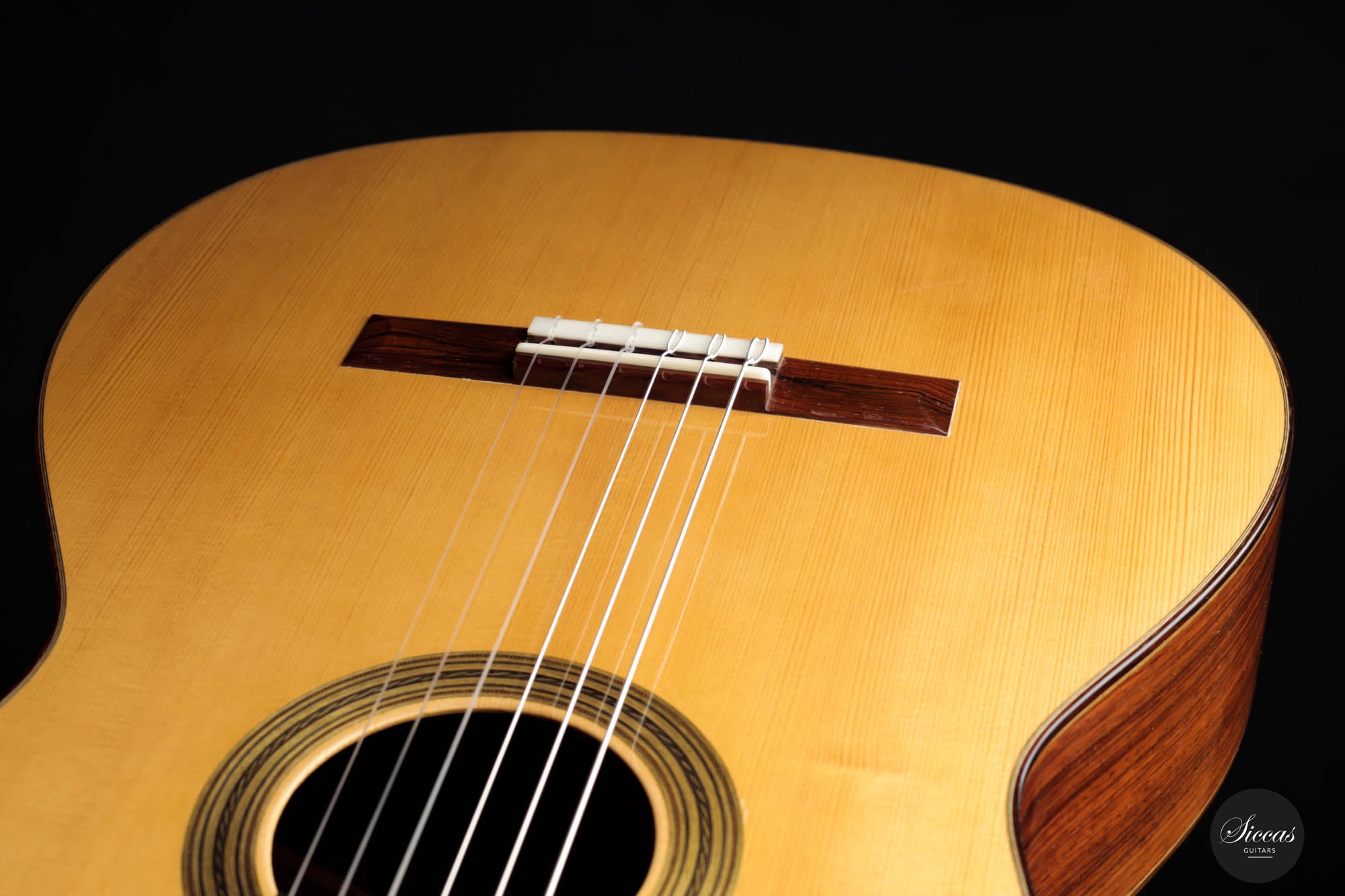 Dieses fantastische Instrument wurde im Jahr 2010 gebaut. An diesem Instrument kann man deutlich erkennen, warum Dominique Field heute als einer der besten Gitarrenbauer gilt. Diese Gitarre wurde mit der höchsten Qualität von Fichte auf dem Resonanzboden und indischem Palisander auf dem Boden und den Zargen gebaut. Alle Details wurden geschmackvoll und perfekt ausgeführt. Klanglich bietet dieses Kunstwerk alles, was man von einer hochwertigen Gitarre erwartet. Sie hat einen ausdrucksstarken Klangcharakter mit satten Bässen und lieblich singenden Höhen. Darüber hinaus ist diese feine Gitarre ein bemerkenswertes Instrument, das jeden Liebhaber begeistert und inspiriert.