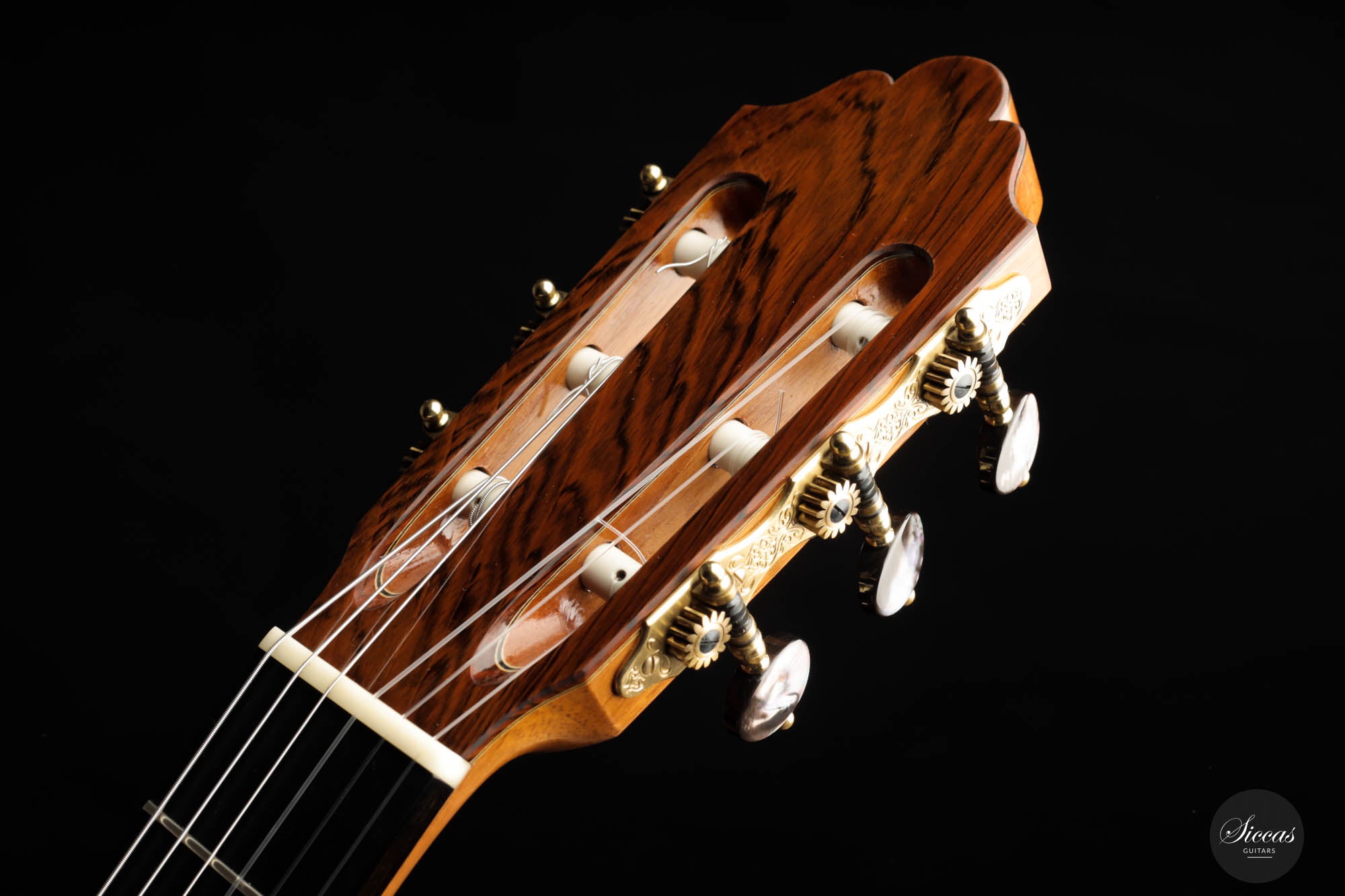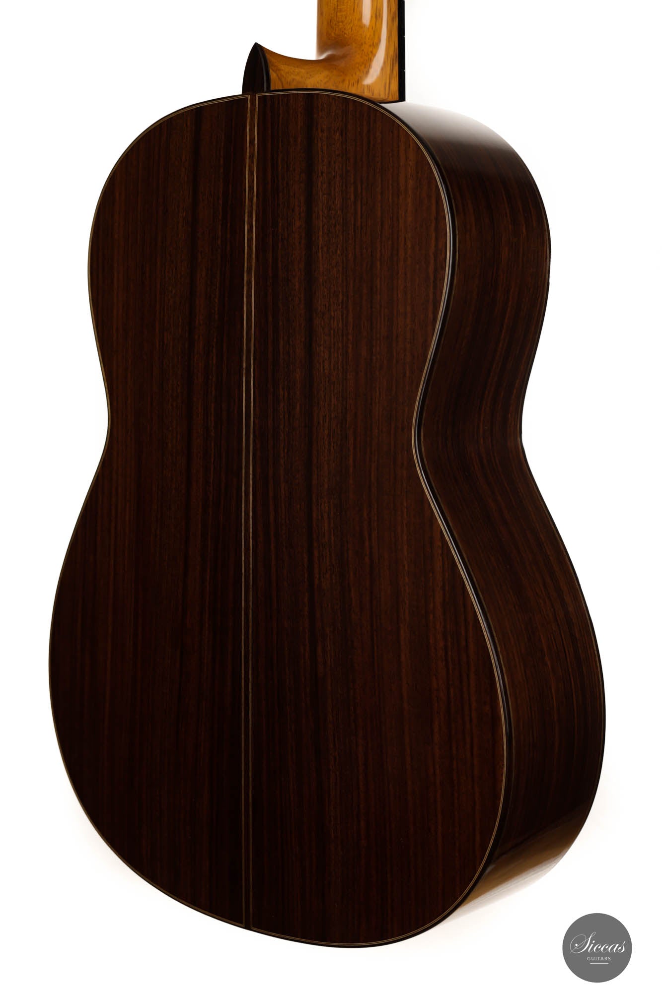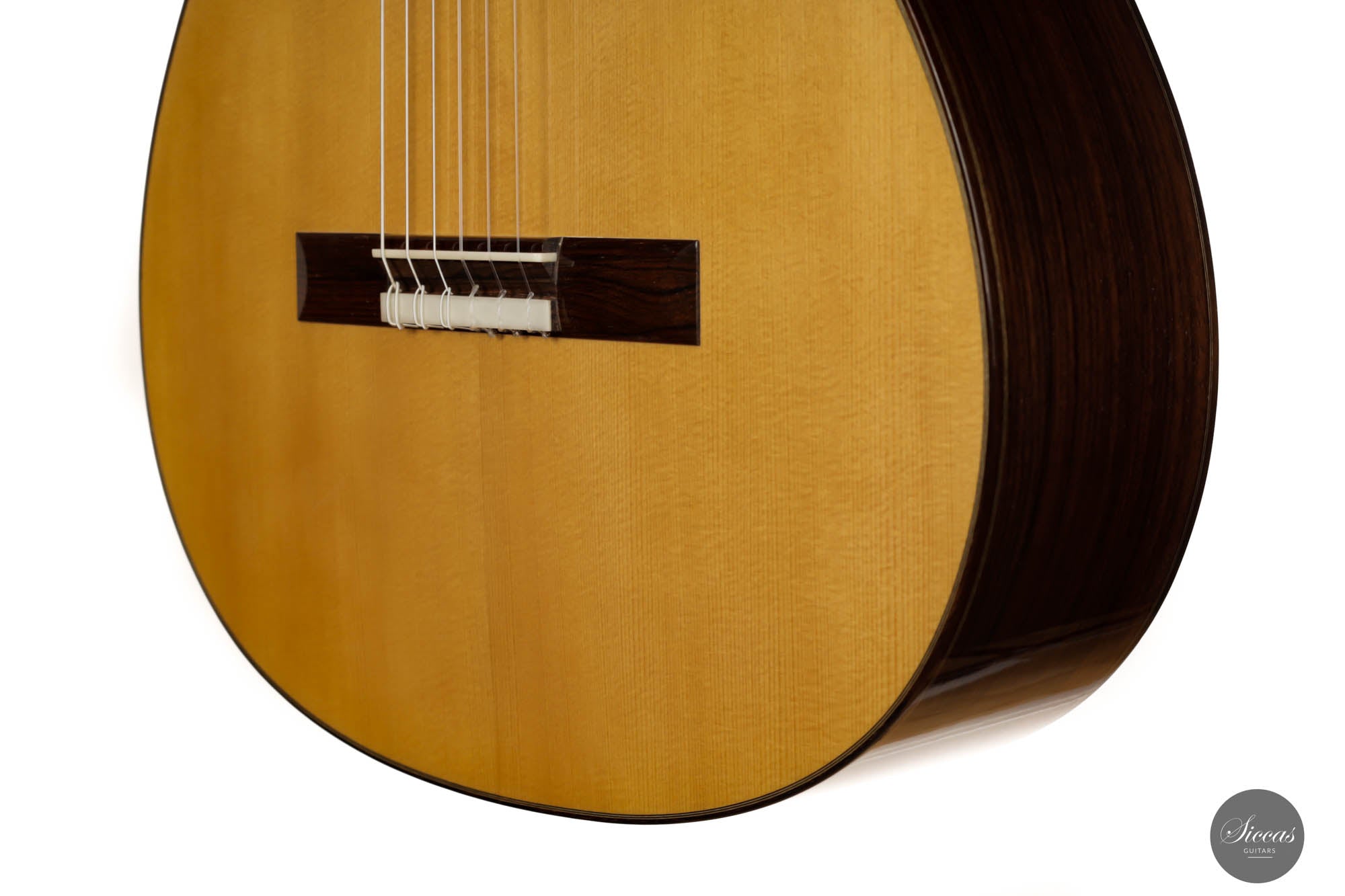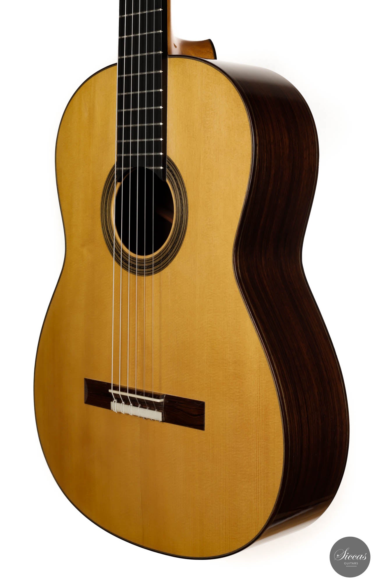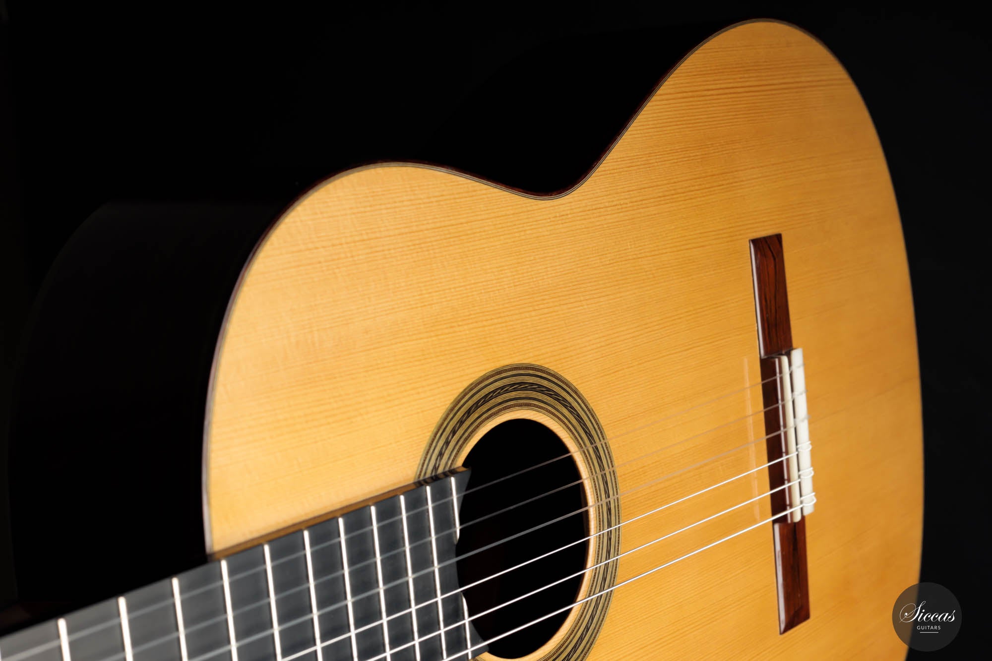 Dieses fantastische Instrument wurde im Jahr 2010 gebaut. An diesem Instrument kann man deutlich erkennen, warum Dominique Field heute als einer der besten Gitarrenbauer gilt. Diese Gitarre wurde mit der höchsten Qualität von Fichte auf dem Resonanzboden und indischem Palisander auf dem Boden und den Zargen gebaut. Alle Details wurden geschmackvoll und perfekt ausgeführt. Klanglich bietet dieses Kunstwerk alles, was man von einer hochwertigen Gitarre erwartet. Sie hat einen ausdrucksstarken Klangcharakter mit satten Bässen und lieblich singenden Höhen. Darüber hinaus ist diese feine Gitarre ein bemerkenswertes Instrument, das jeden Liebhaber begeistert und inspiriert.
