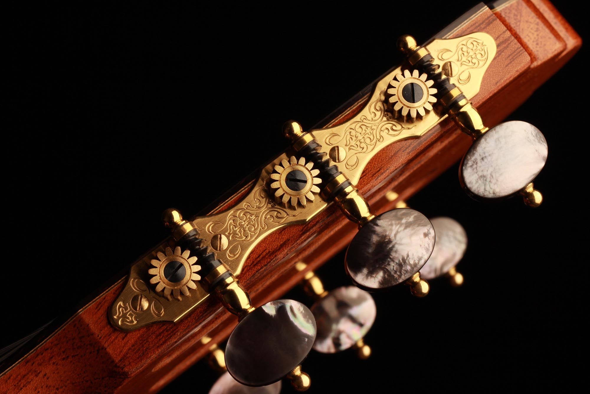 Diese Gitarre wurde im Dezember 2016 fertig gestellt und hat eine rumänische Fichtendecke von 1935, die aus der Werkstatt von Richard Jacob Weissgerber stammt. Boden und Zargen sind aus indischem Palisander von 1955, den Dominique Field 1985 von Robert Bouchet erhielt. Außerdem ist dies die erste Gitarre, die das neue Label von Dominique enthält. Die Nummer des Instruments und das Baujahr stehen auf dem zweiten Balken auf dem Boden der Gitarren. Die wunderschönen Mechaniken sind von Rodgers hergestellt.
