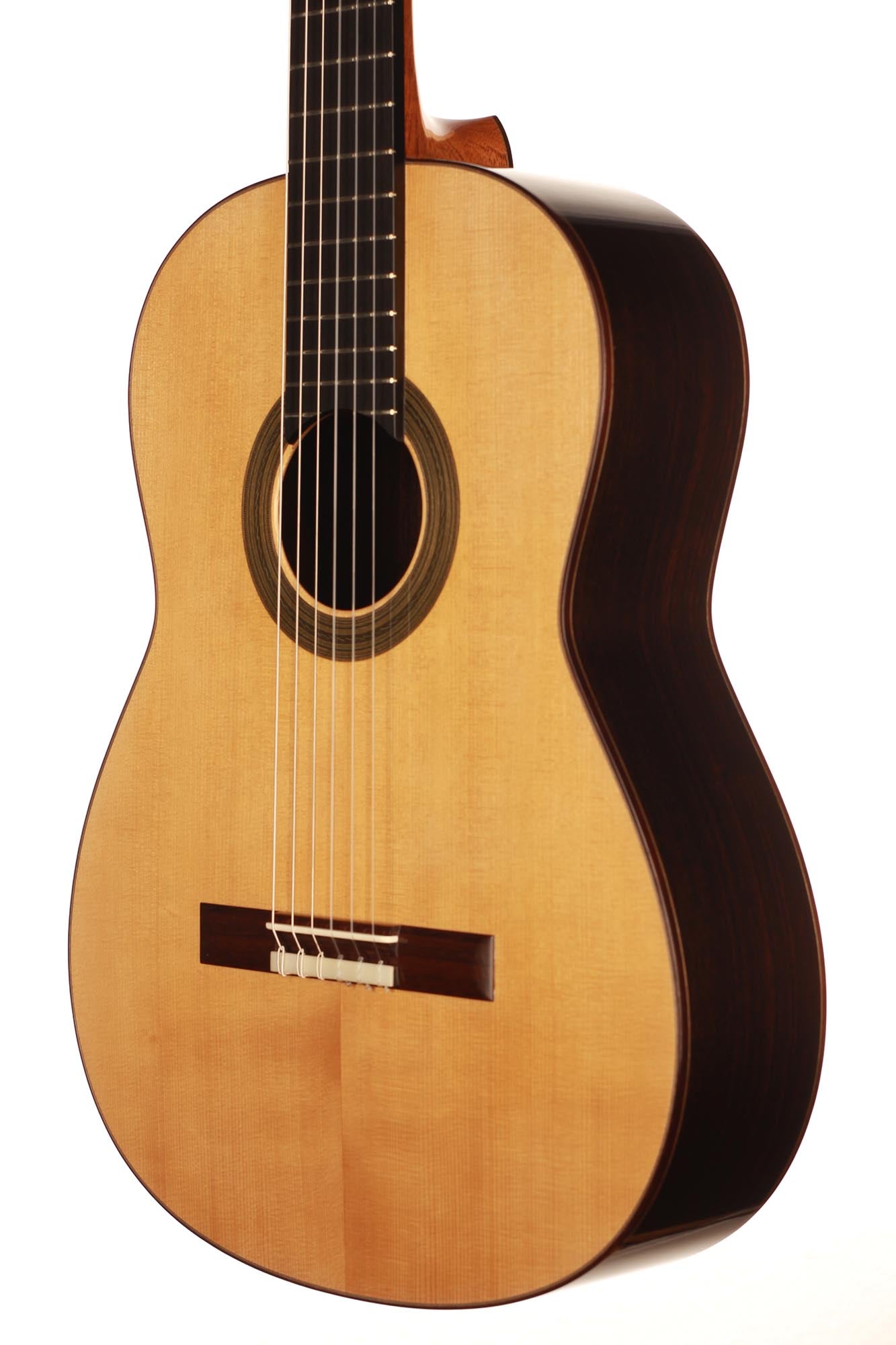 Die klassische Gitarre mit ihren weichen Nylonsaiten und ihrem charakteristischen Timbre ist zum Symbol der Kammermusik, der spanischen Tradition und des Konzertrepertoires geworden. Ihre moderne Form prägte Antonio de Torres im 19. Jahrhundert, indem er den Standard für Korpus, Fächerbeleistung und die 65-Zentimeter-Mensur setzte, die bis heute verwendet werden. Instrumente dieser Kategorie eröffnen eine reiche Palette von den feinen romantischen Miniaturen Tárregas bis zu den majestätischen Konzerten Rodrigos. Hier finden Sie Gitarren, die historische Kontinuität bewahren und zugleich zu neuen Interpretationen anregen.
