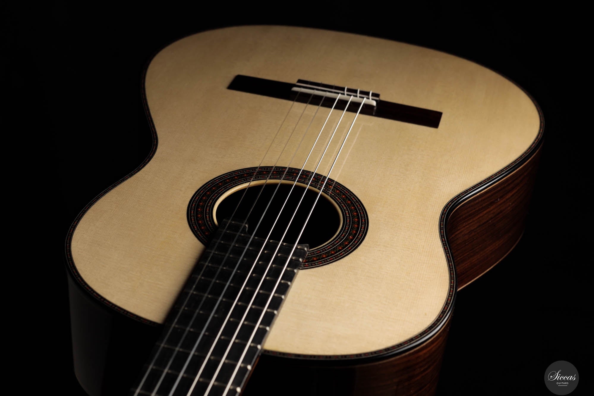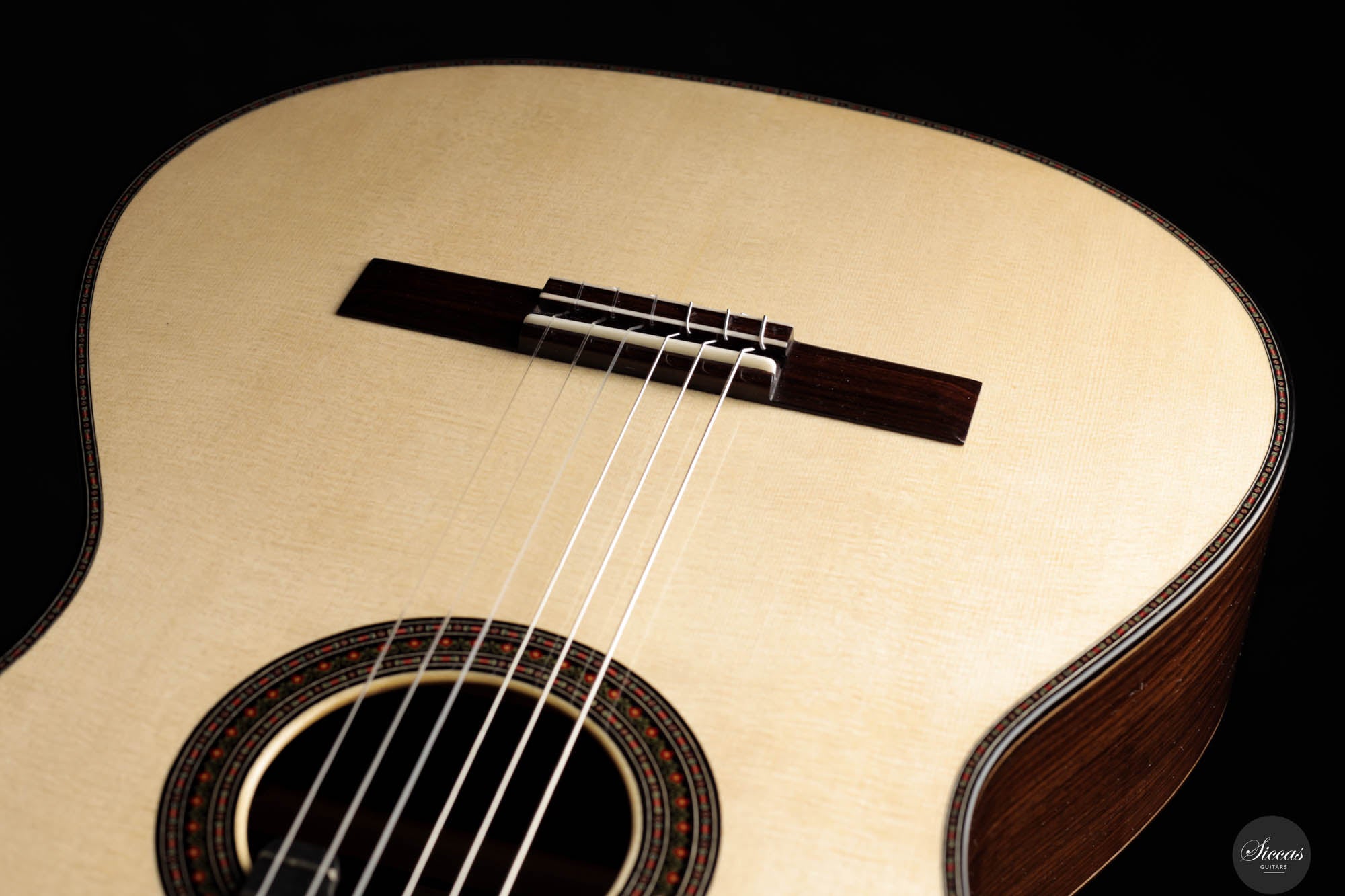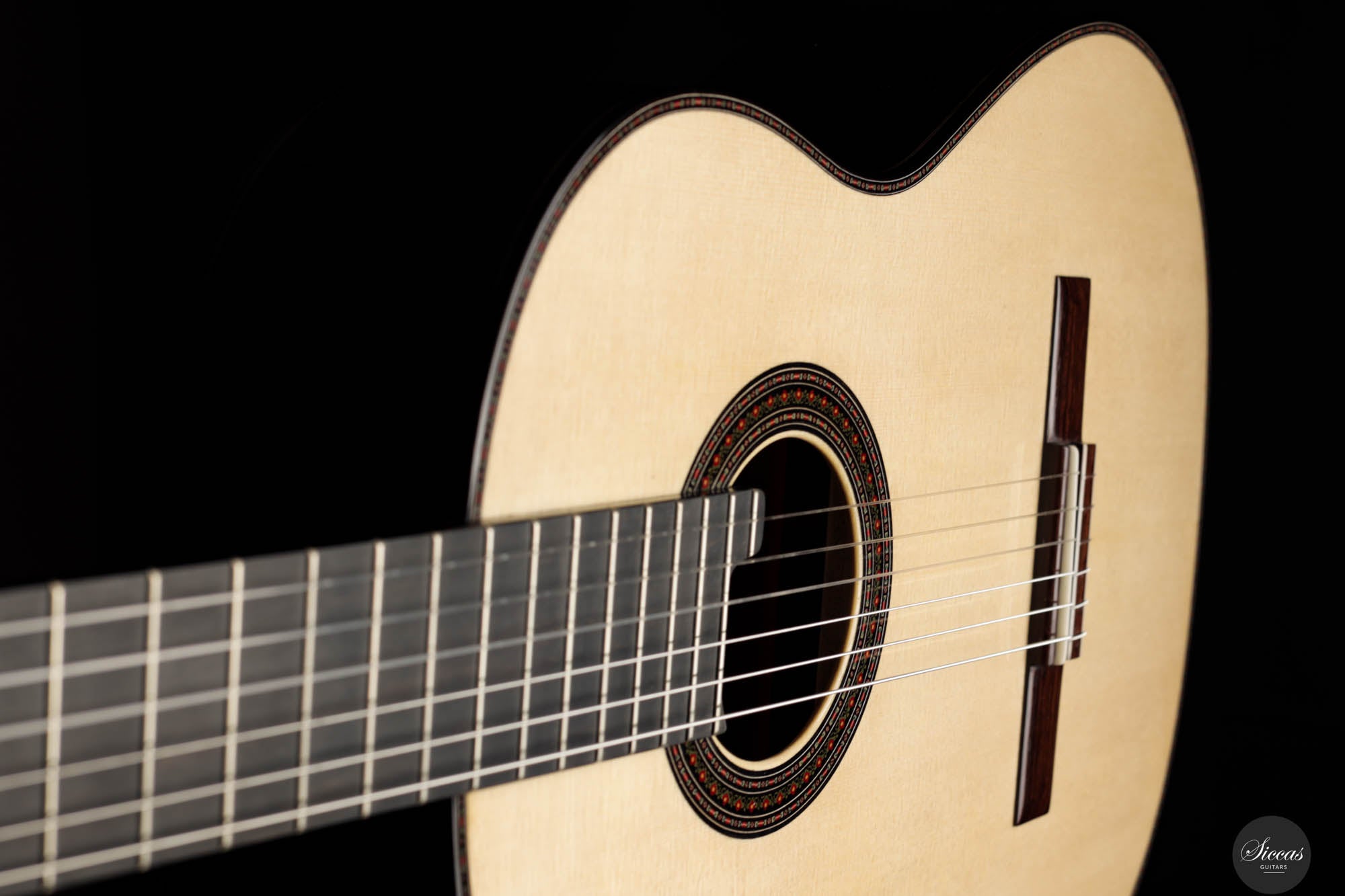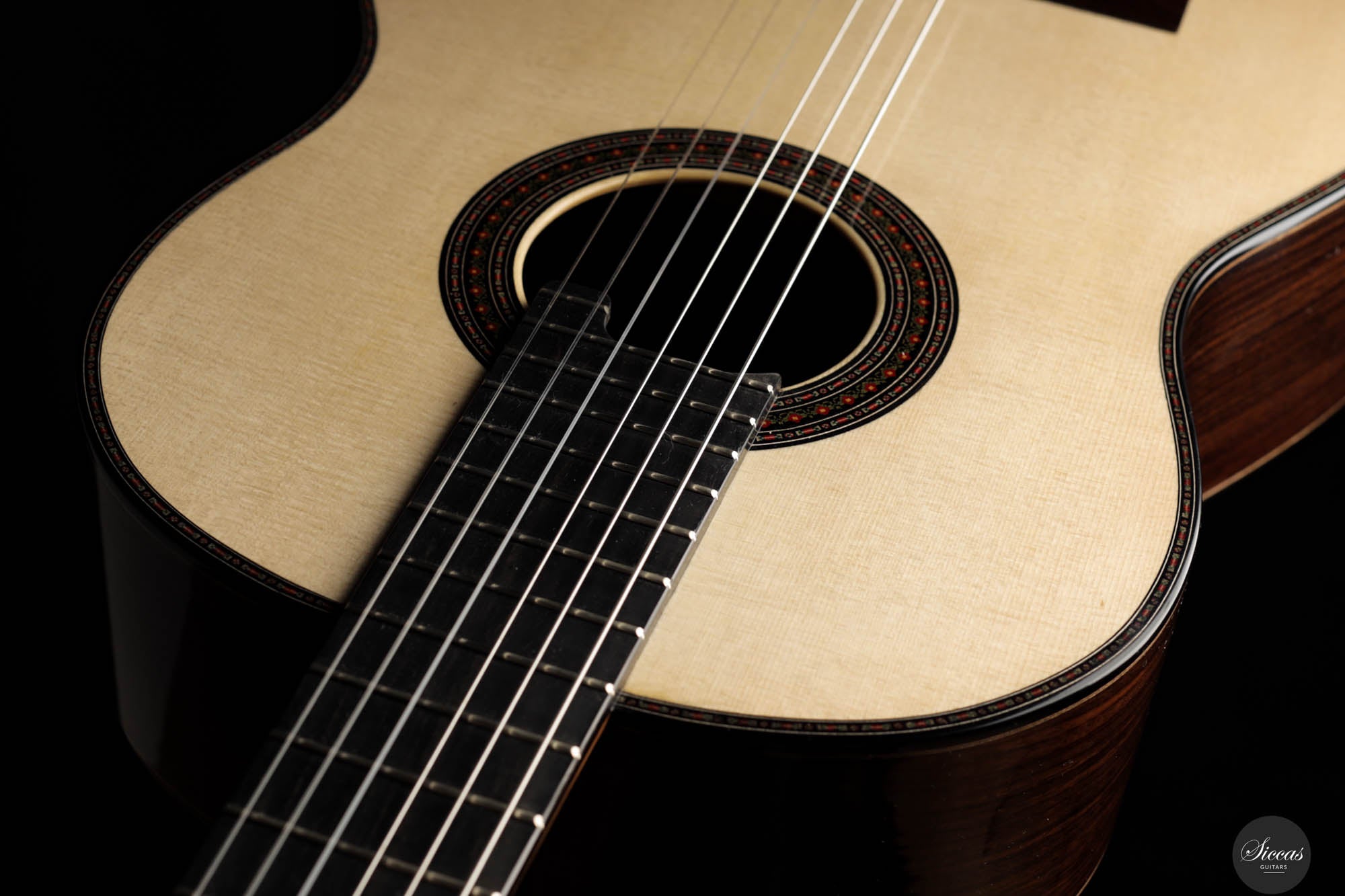 Die Donatella Salvato Limited Special Edition für die Roma Expo Guitars 2024, genannt "Gran Concerto Hommage à Daniel Friederich", repräsentiert ein neues Kapitel im Gitarrenbau, indem sie traditionelle ästhetische und akustische Eigenschaften mit moderner Handwerkskunst verbindet. Dieses exquisite Instrument ist aus italienischer Fichte für die Schalldecke und indischem Rosenholz für Rücken und Seiten gefertigt, eine Kombination, die nicht nur die visuelle Anziehungskraft steigert, sondern auch eine kraftvolle und nachhaltige Klangausgabe über alle Register hinweg bietet. Die tiefen Bässe und brillanten Höhen sind bereichert durch ein Spektrum an Nuancen, die darauf warten, vom Spieler erkundet zu werden. Mit einer 640 mm Mensur, einem Hals aus Cedrela odorata, einem Griffbrett aus afrikanischem Ebenholz und einer 12-Loch-Brücke aus indischem Rosenholz, prahlt diese Gitarre mit erstklassigen Komponenten. Sie ist fein abgestimmt mit Alessi-Muschelperl-Stimmmechaniken und geschmückt mit einer eleganten, exklusiven Rosette und Verzierungen, alles fertiggestellt mit einer sorgfältigen Schellackpolitur, die ihrer Pracht hinzufügt. Dieses Instrument besitzt eine erstaunliche Spielbarkeit durch seine 640mm Mensur und 50,5mm Sattelbreite.